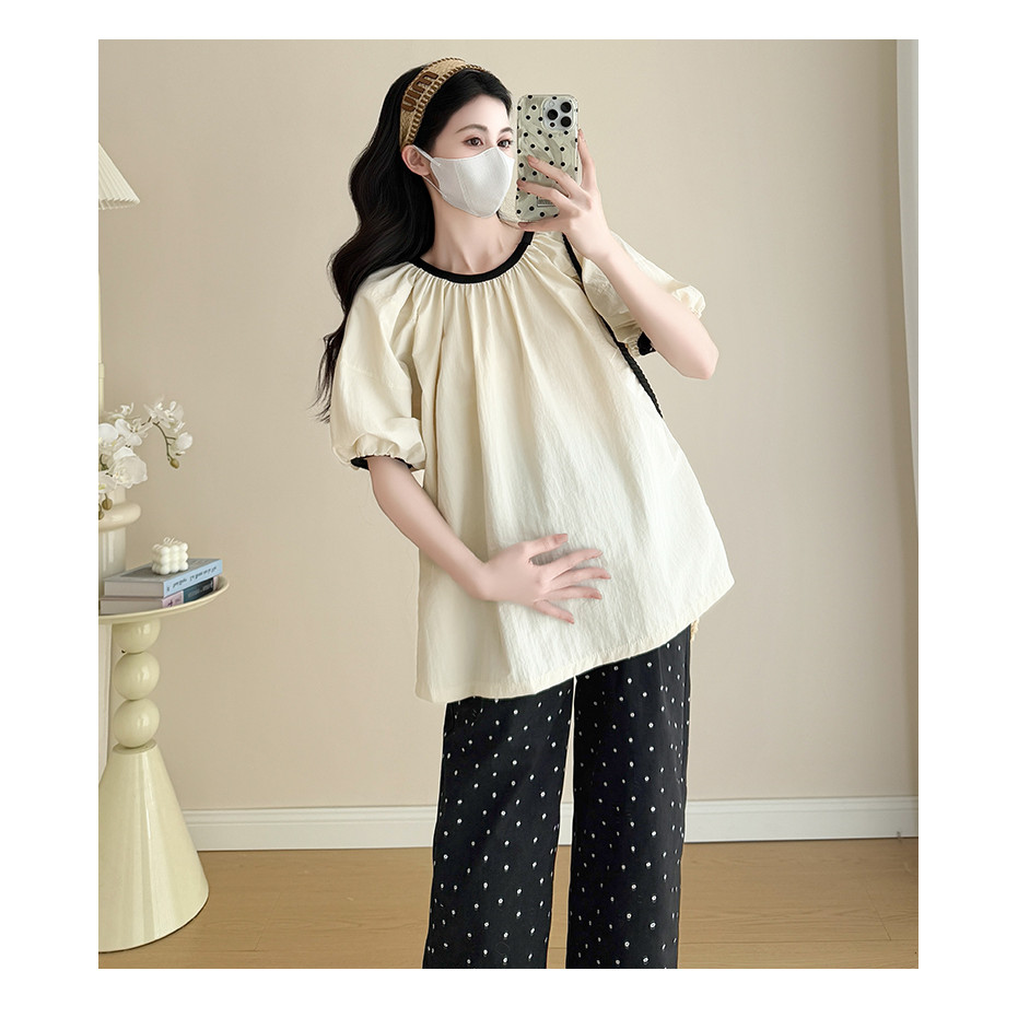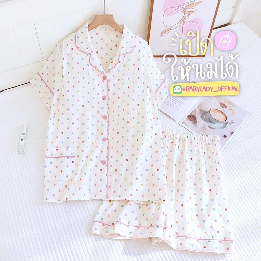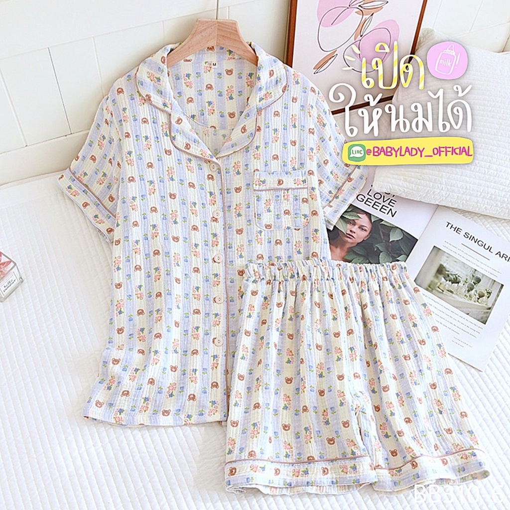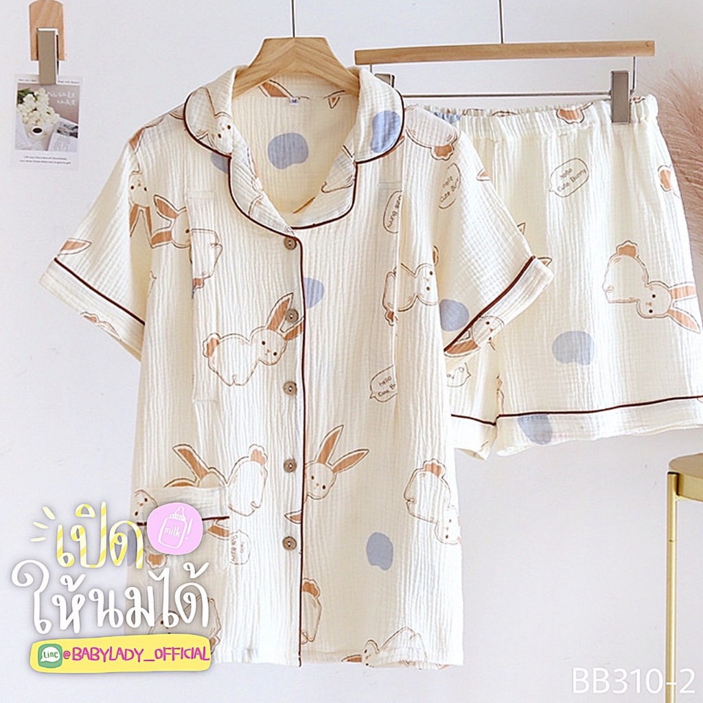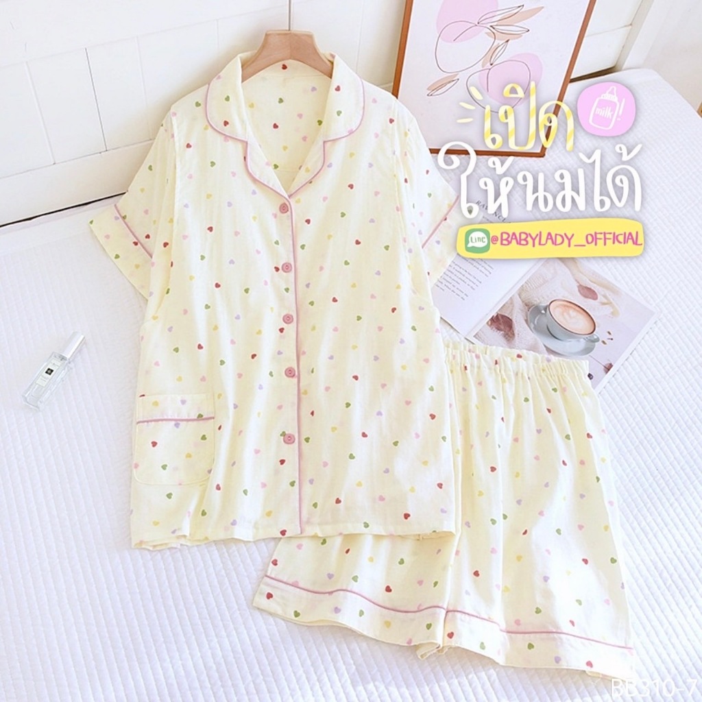 BB 310 Series ชุดนอนคลุมท้อง เปิดให้นม เป็นงาน 2 ชิ้น เนื้อผ้ามัสลิน คอปกแขนสั้น