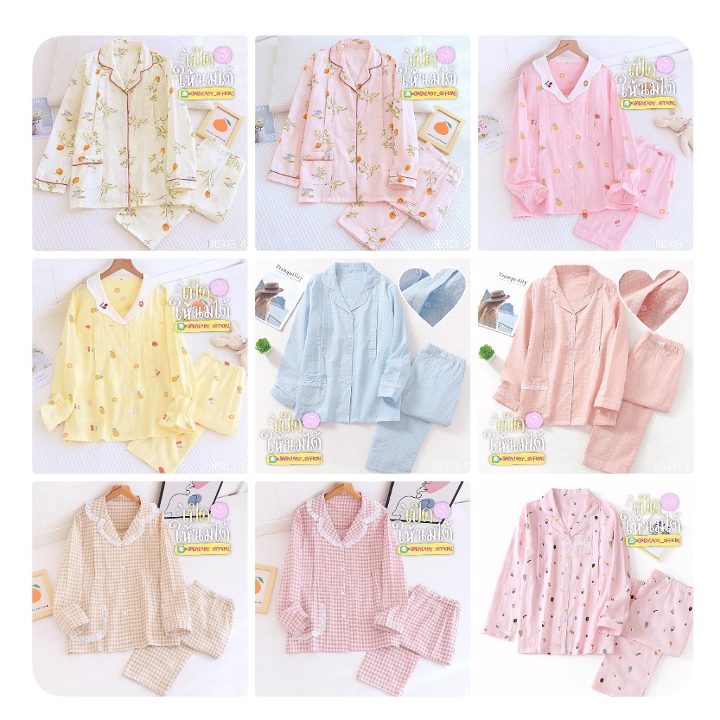 BB 313 Series ชุดนอนคลุมท้อง เปิดให้นมได้ เป็นงาน 2 ชิ้น เนื้อคอตตอนผสมผ้าคอตตอน คอปก แขนยาว-ขายาว