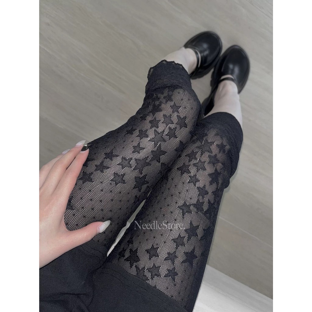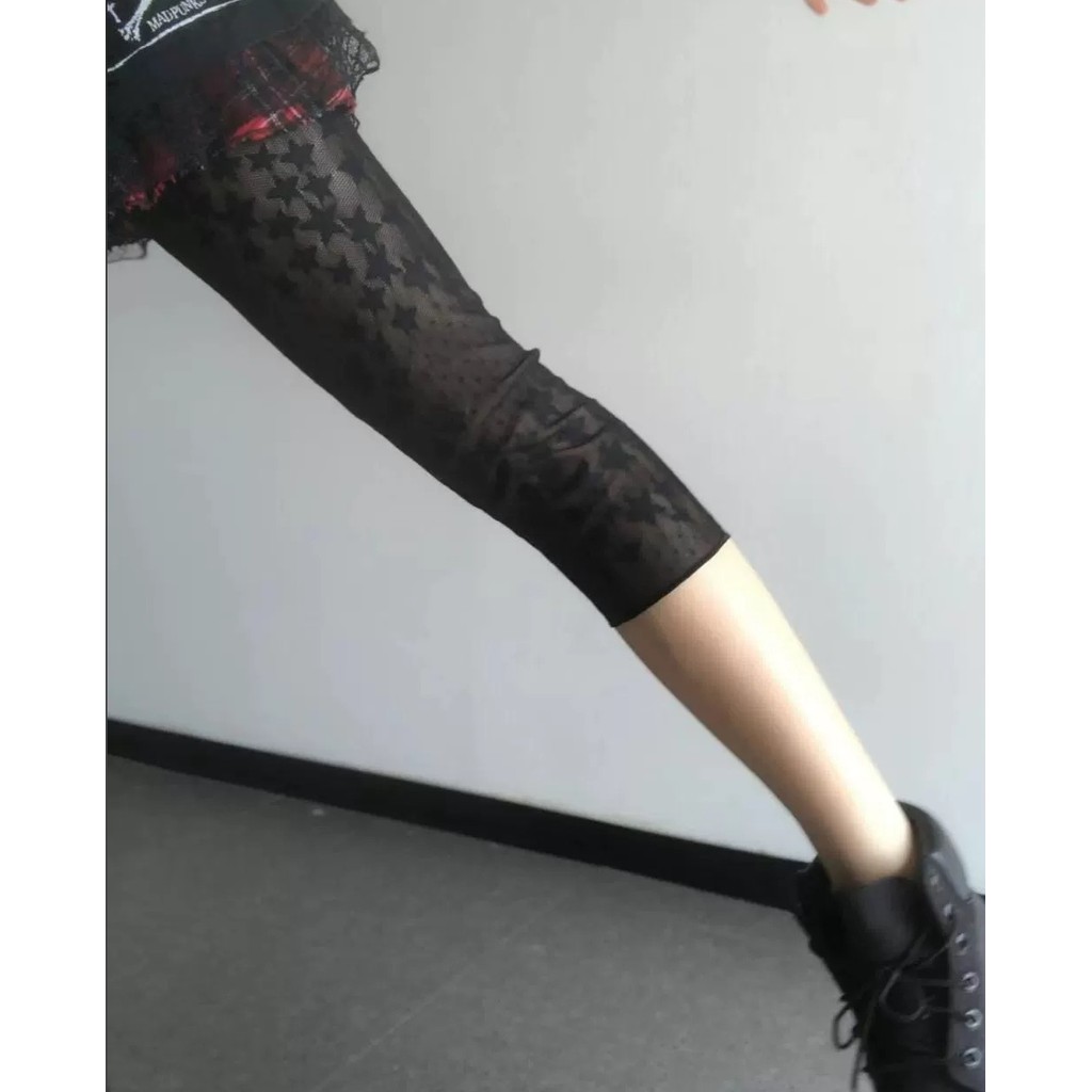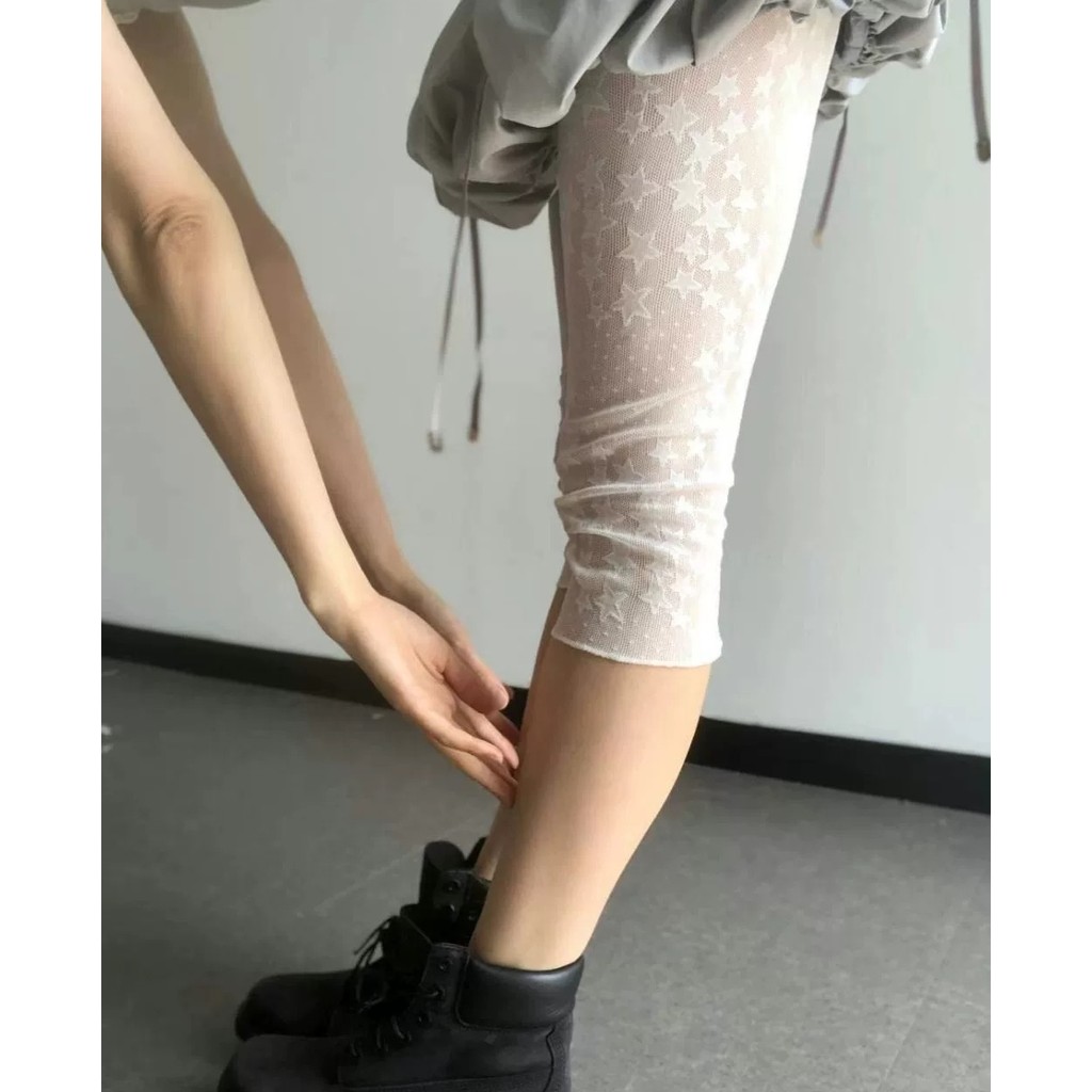 วันเดย์เกิร์ล | Retro Millennium Super Beautiful~เกาหลี ins Japanese Five-pointed Star Jacquard Lace Stretch Leggings กางเกงฤดูร้อน