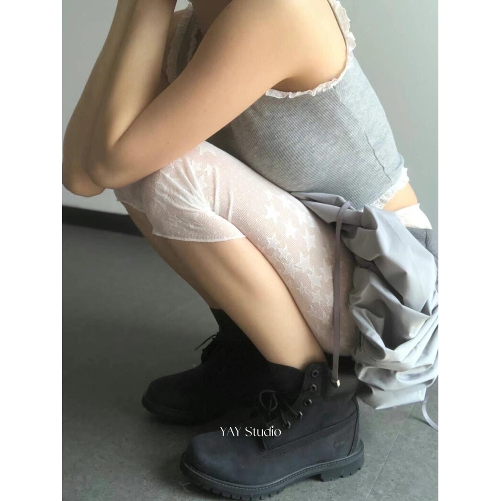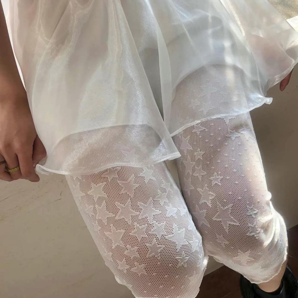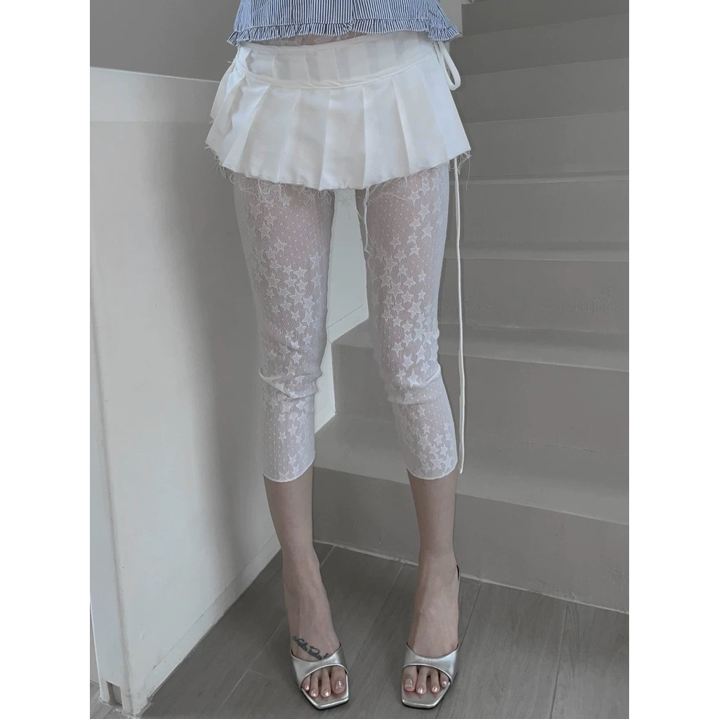 วันเดย์เกิร์ล | Retro Millennium Super Beautiful~เกาหลี ins Japanese Five-pointed Star Jacquard Lace Stretch Leggings กางเกงฤดูร้อน