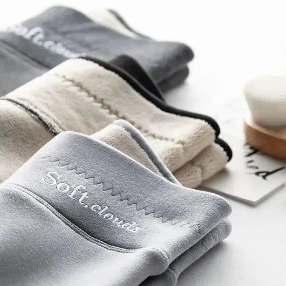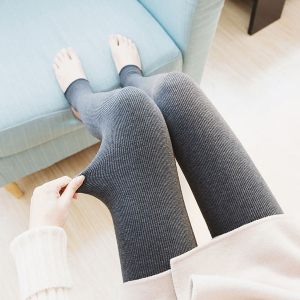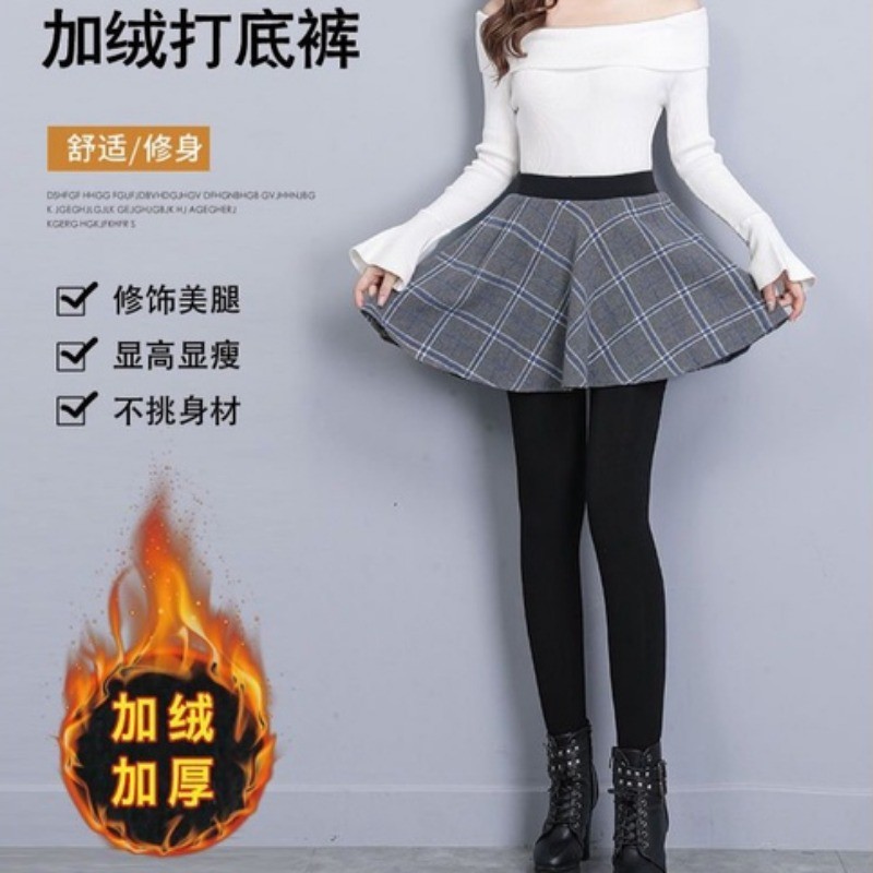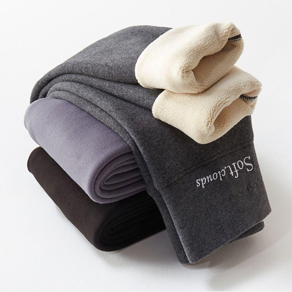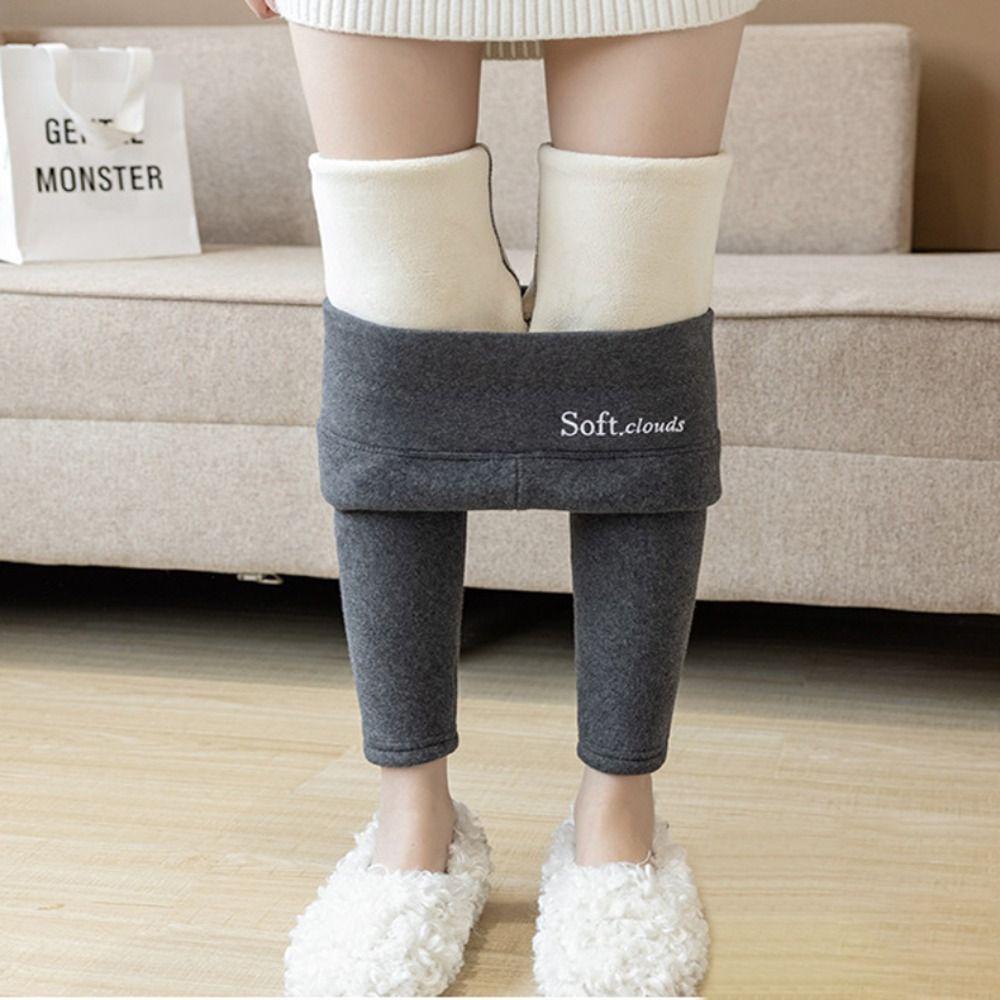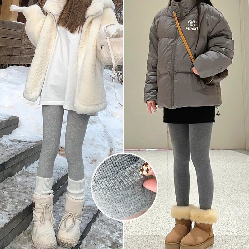 เลกกิ้ng ฤดูหนาว ข้นเอวสูงขนแกะ สีดำและเทา ยืดหยุ่นนุ่ม สำหรับผู้หญิง