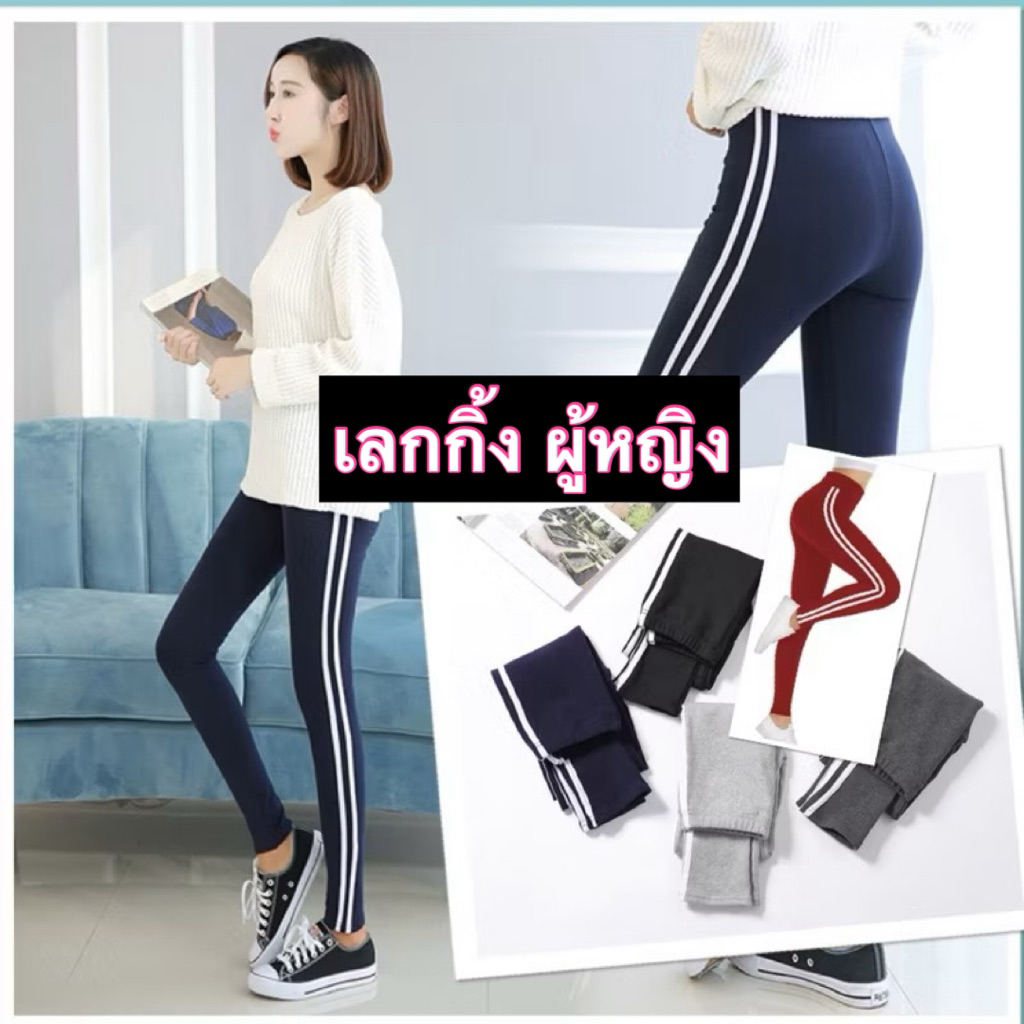 เลกกิ้งขายาว 8939 ยืดได้เยอะจริง ใส่สบาย อ้วนใส่ได้ มีแถบ 2 แถบ ผ้านิ่ม แต่งแถบสองข้าง ใส่สบาย
