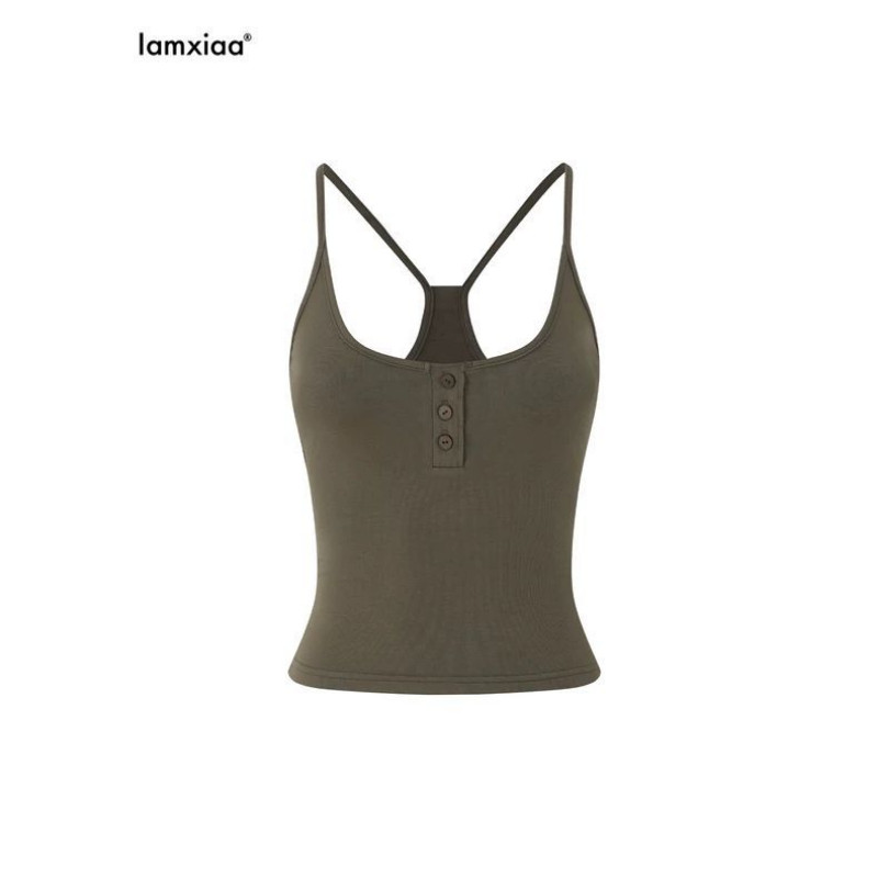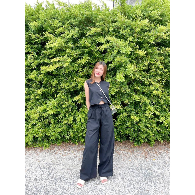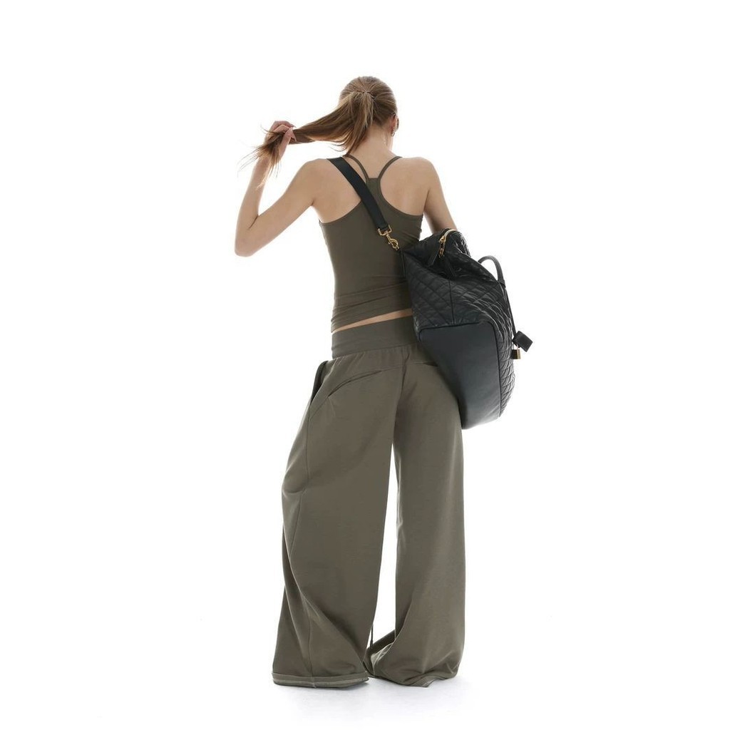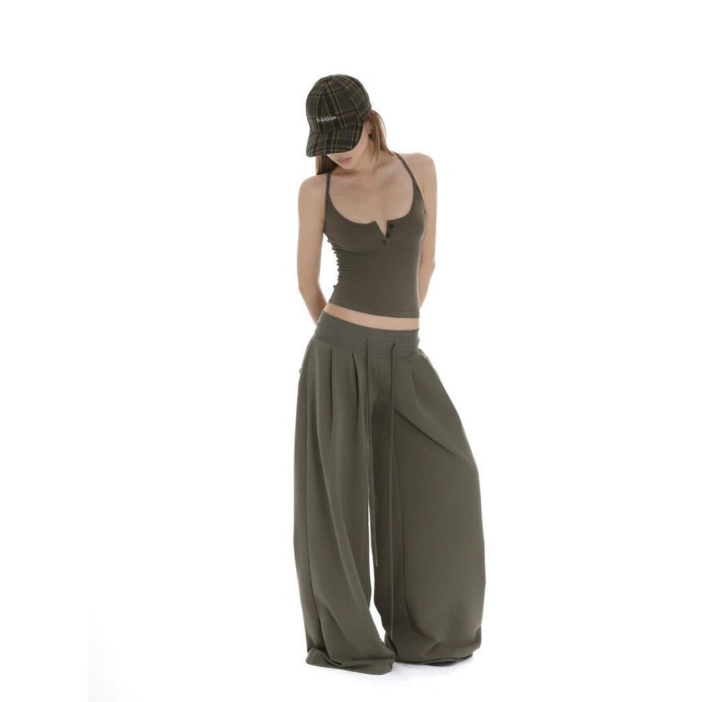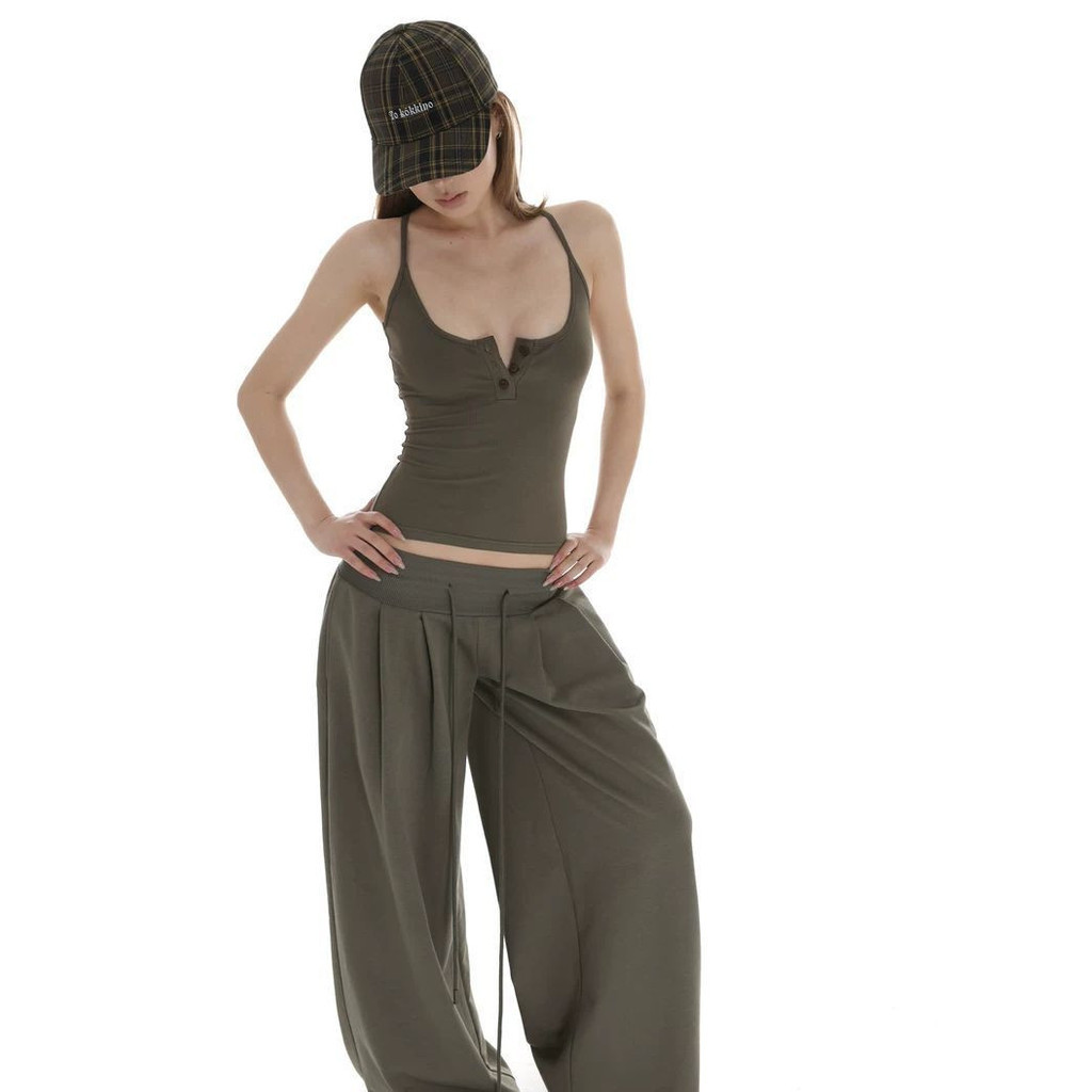 U-neck Beef Bone Buckle I-Shaped Vest Sling & Low-Waist Wide-Threaded Wide-Leg Mopping กางเกงกีฬา Sweatpants