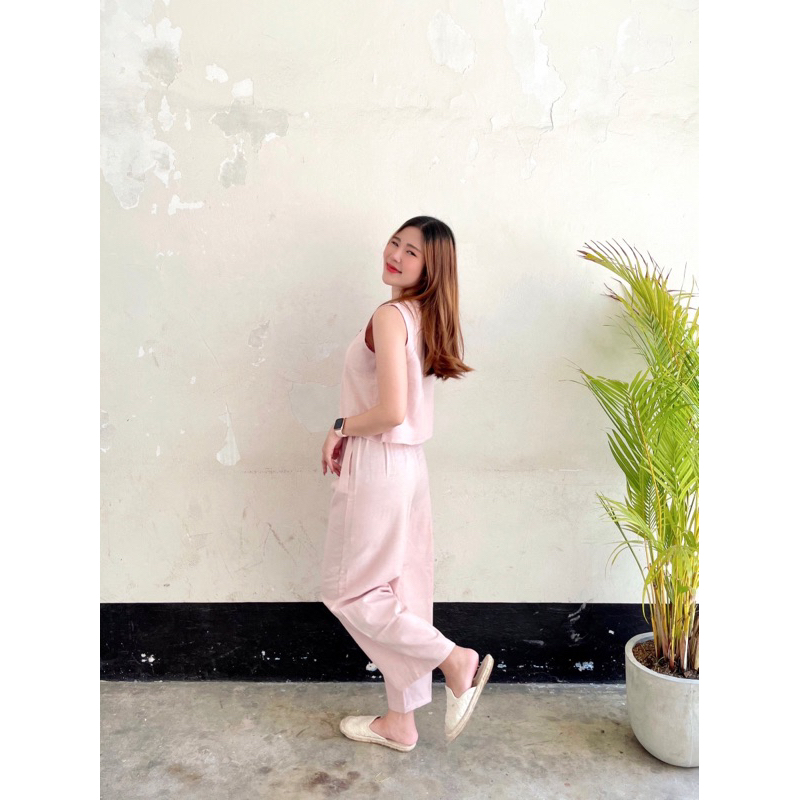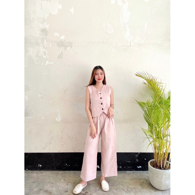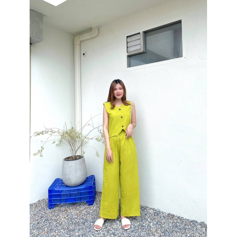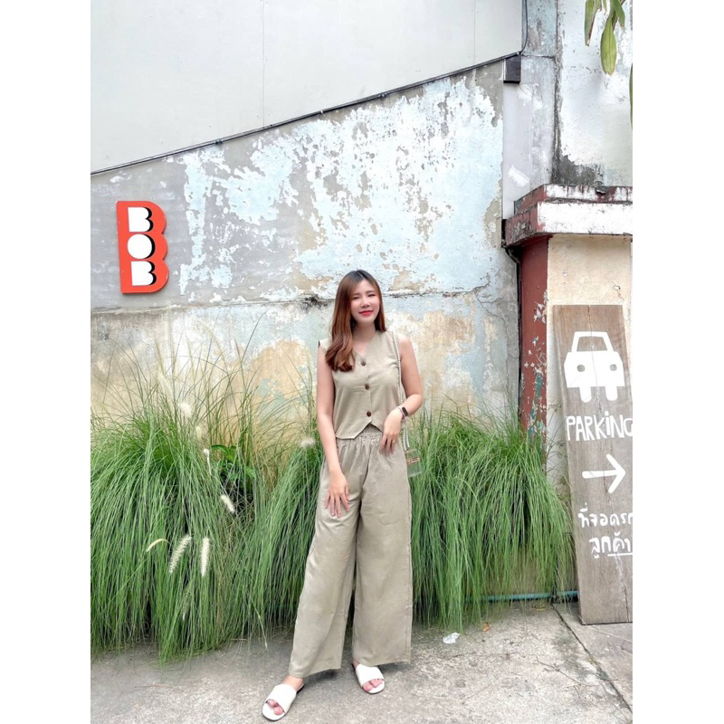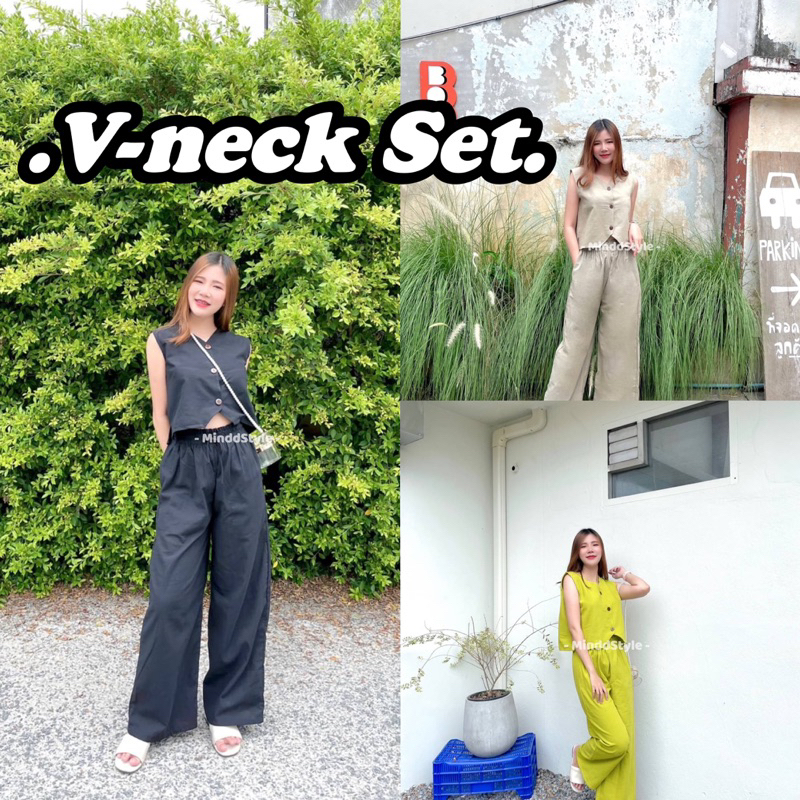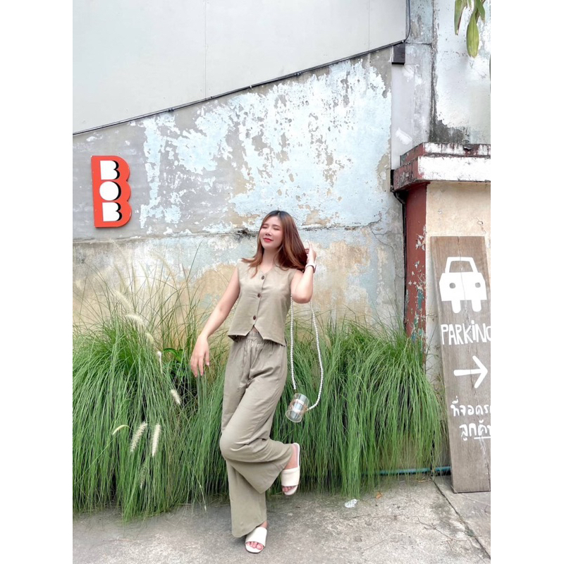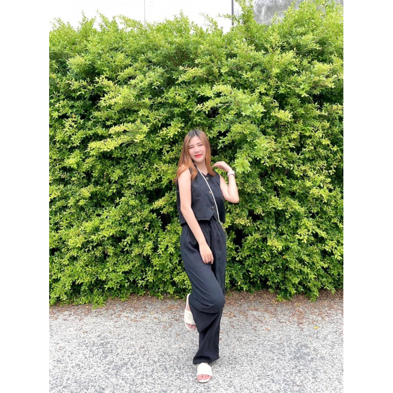U-neck Beef Bone Buckle I-Shaped Vest Sling & Low-Waist Wide-Threaded Wide-Leg Mopping กางเกงกีฬา Sweatpants