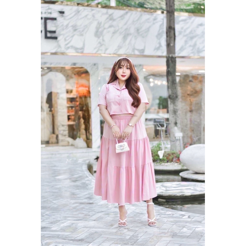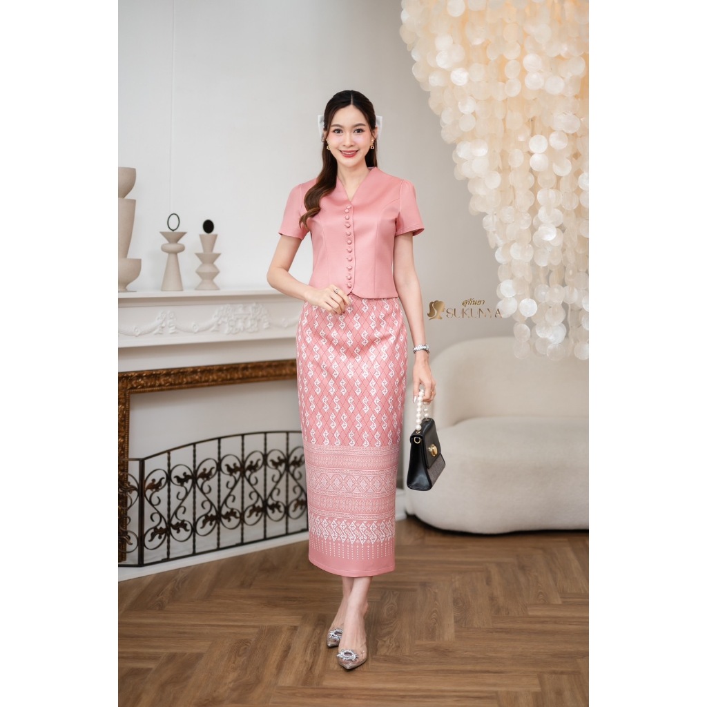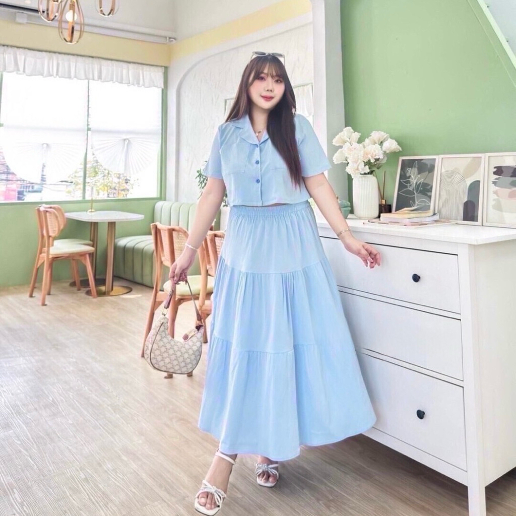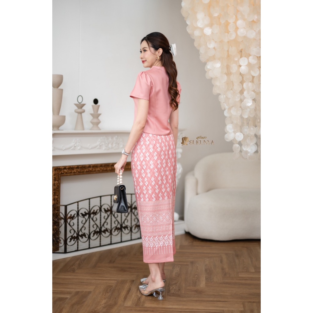 Sukunya : 6797-2 งานSet 2 ชิ้น (เสื้อ+กระโปรงยาว)งานผ้าโพลีเอสเตอร์งานพิมพ์ลาย เนื้อผ้าอัดกาว ไม่บาง