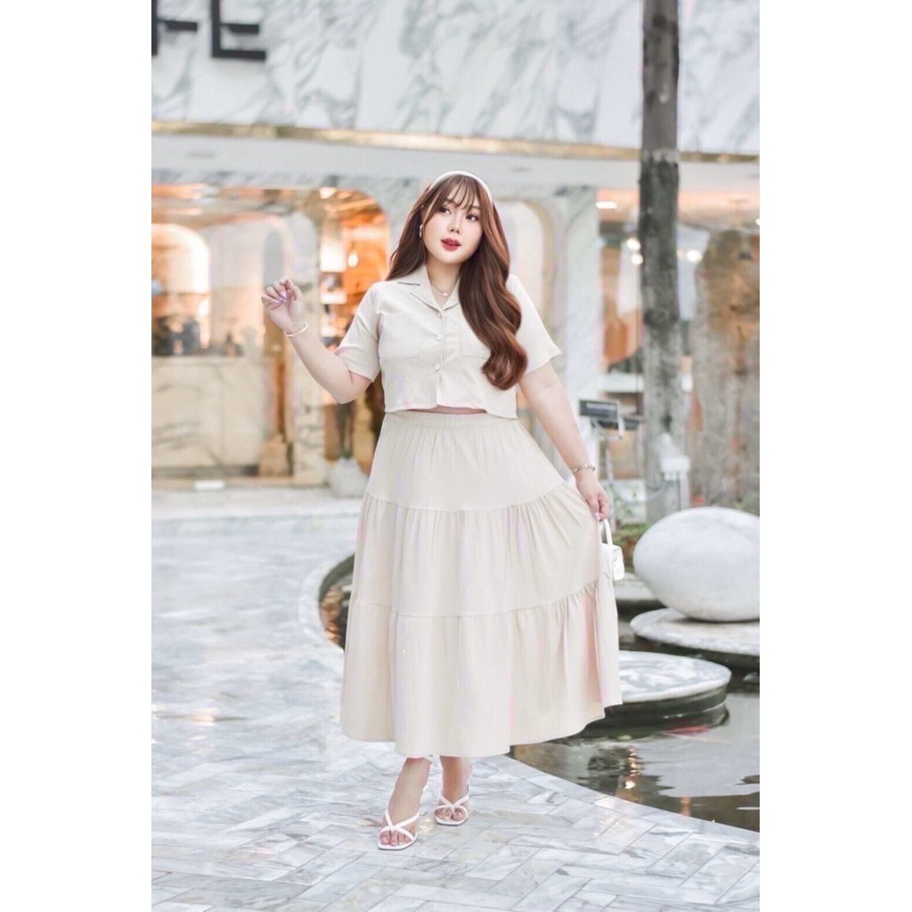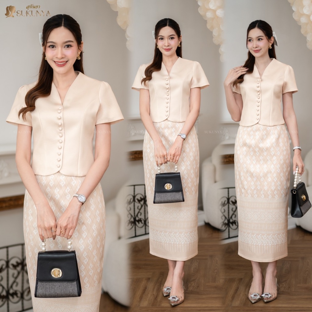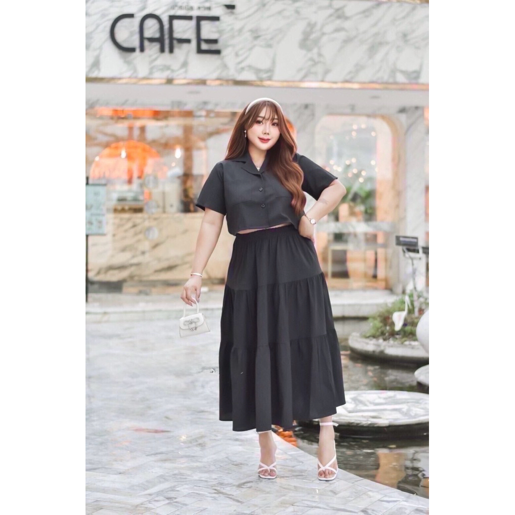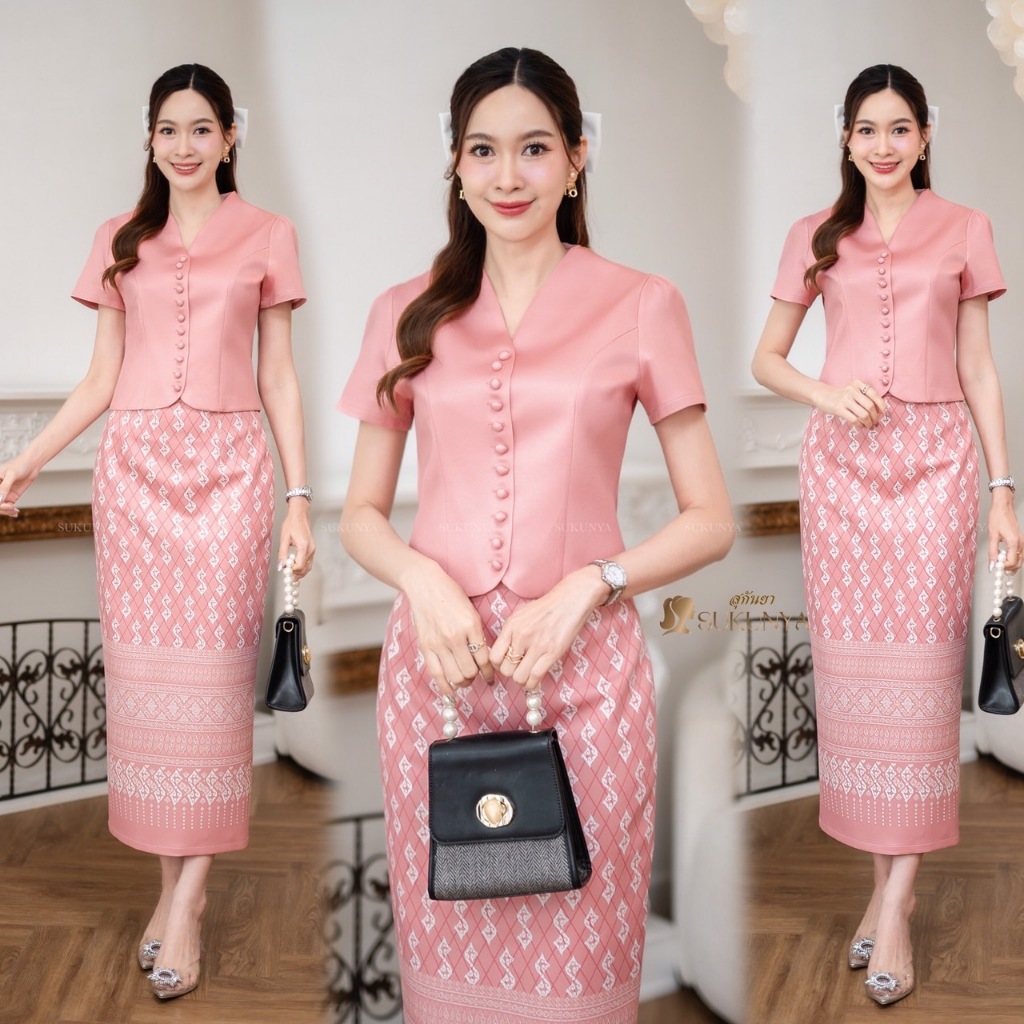 Sukunya : 6797-2 งานSet 2 ชิ้น (เสื้อ+กระโปรงยาว)งานผ้าโพลีเอสเตอร์งานพิมพ์ลาย เนื้อผ้าอัดกาว ไม่บาง