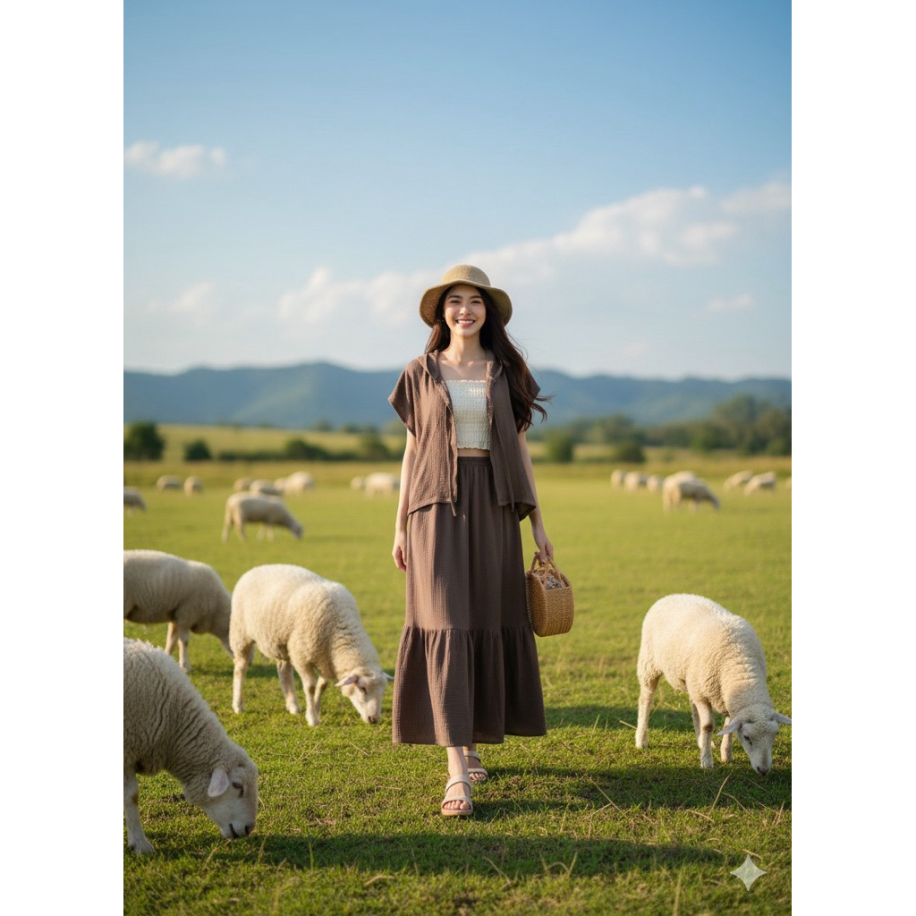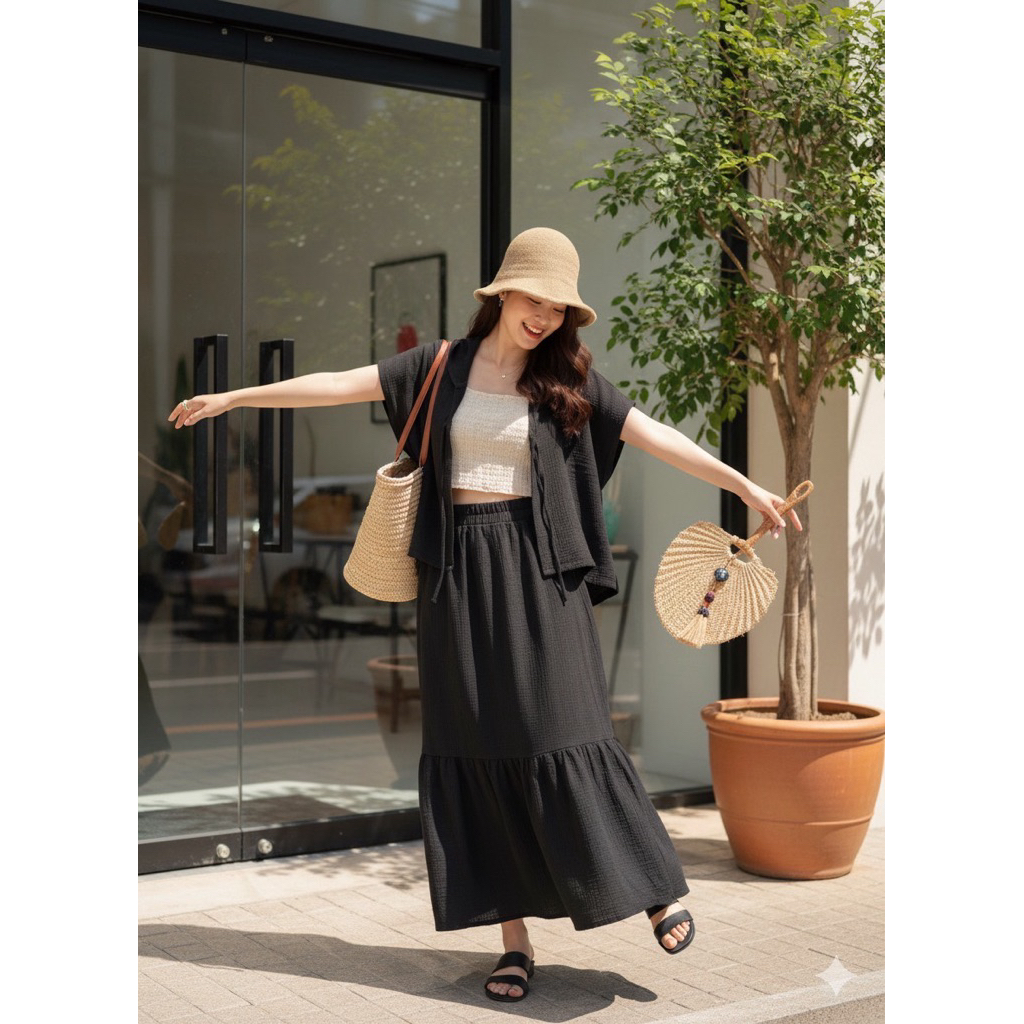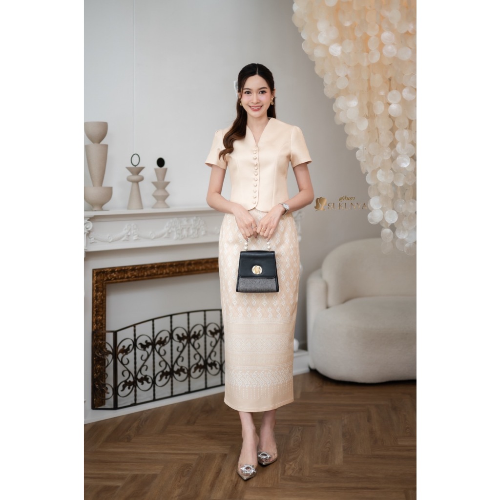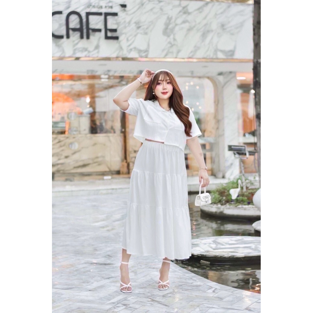 Sukunya : 6797-2 งานSet 2 ชิ้น (เสื้อ+กระโปรงยาว)งานผ้าโพลีเอสเตอร์งานพิมพ์ลาย เนื้อผ้าอัดกาว ไม่บาง