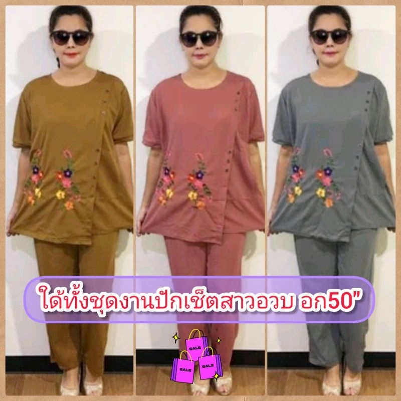 ได้ทั้งชุดเซตสาวอวบงานปักสวยมากผ้ายืดนิ่มอก50กางเกงยืดใด้ถึง45ยืนนั่งสบายใส่ออกงานหรืออยู่บ้านก็สวยหรูดูดีมีหลายสีจ้า