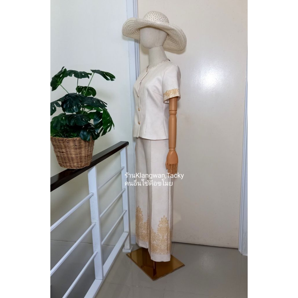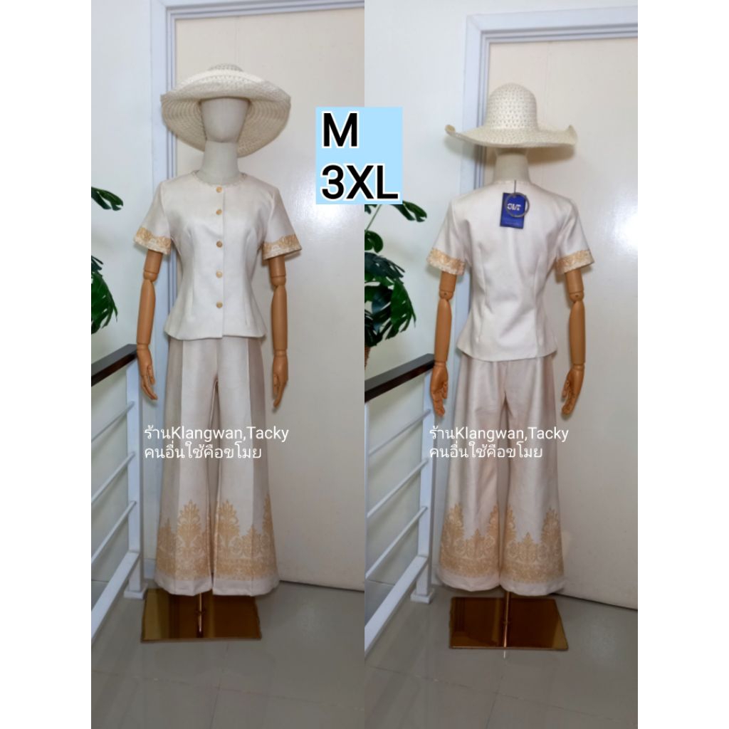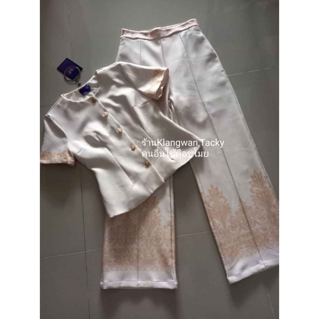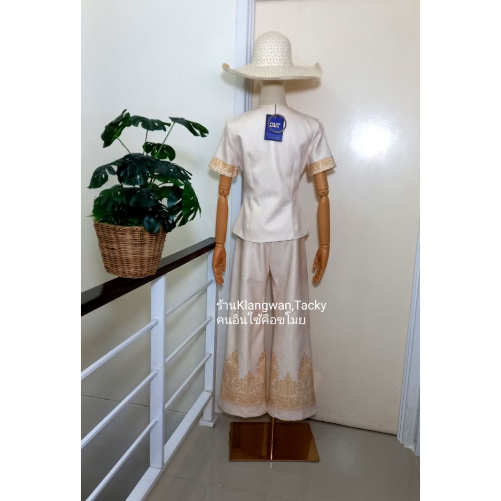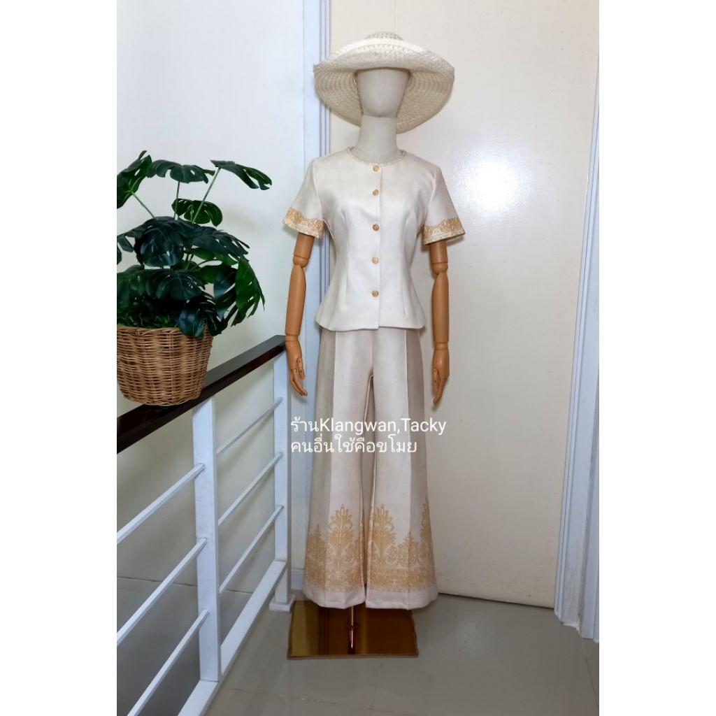 เซทเสื้อกางเกงขายาวสีครีมลายไทย ป้ายCLTชลิตา (มือ1ทุกแบบ) ชุดเข้าเซท ชุดเข้าวัดทำบุญ เสื้อผ้างานป้าย