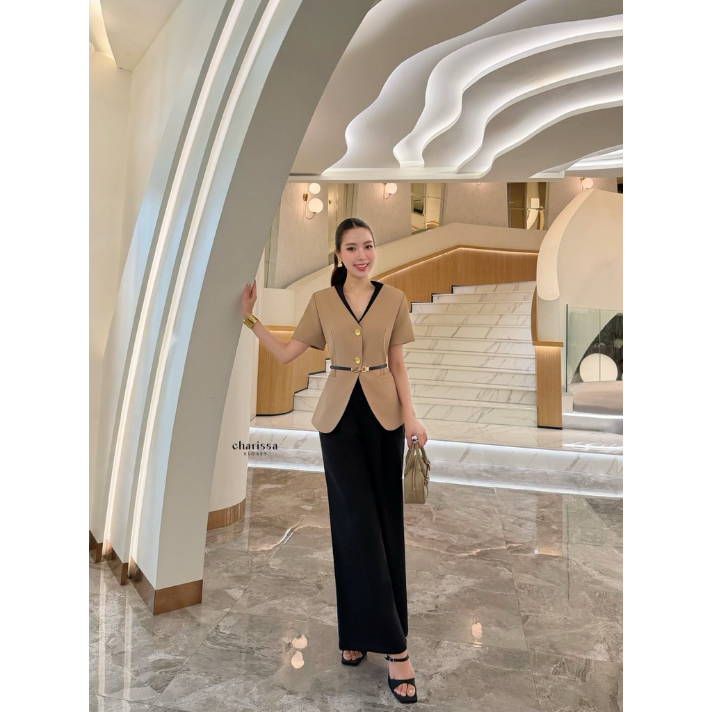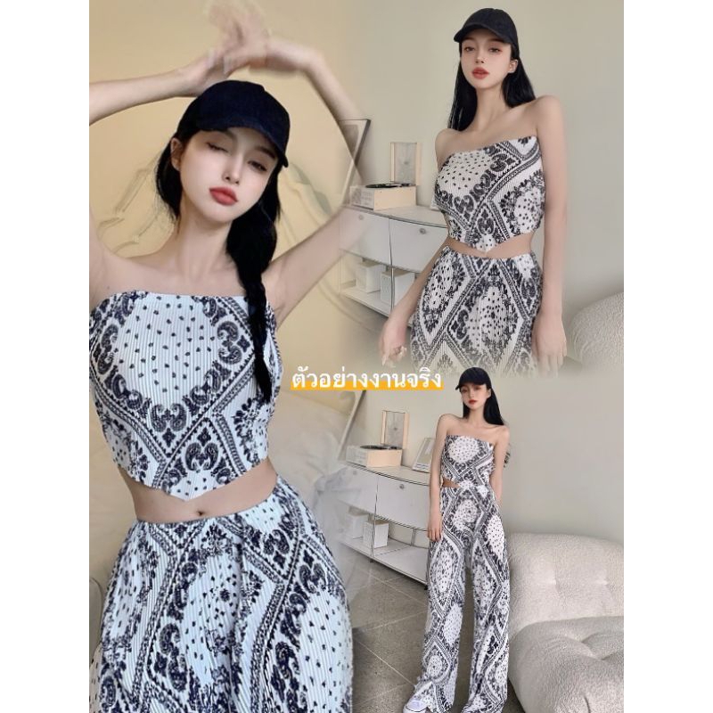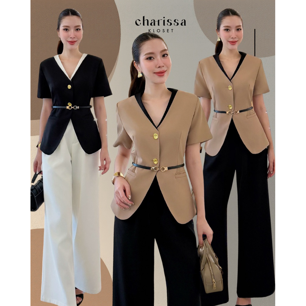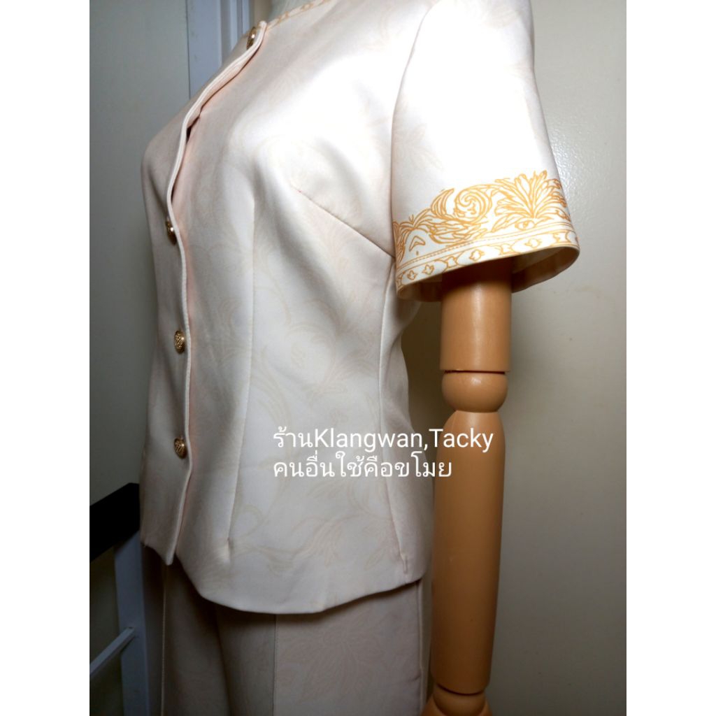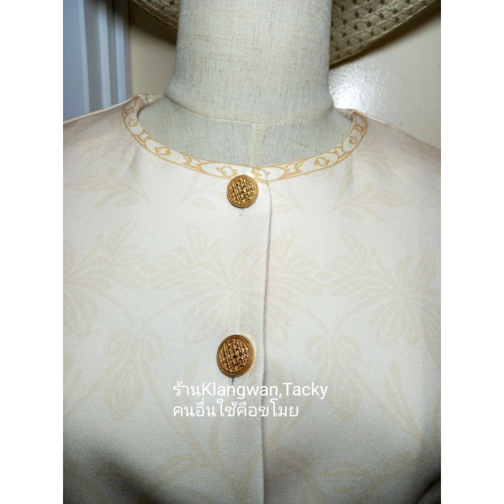 เซทเสื้อกางเกงขายาวสีครีมลายไทย ป้ายCLTชลิตา (มือ1ทุกแบบ) ชุดเข้าเซท ชุดเข้าวัดทำบุญ เสื้อผ้างานป้าย