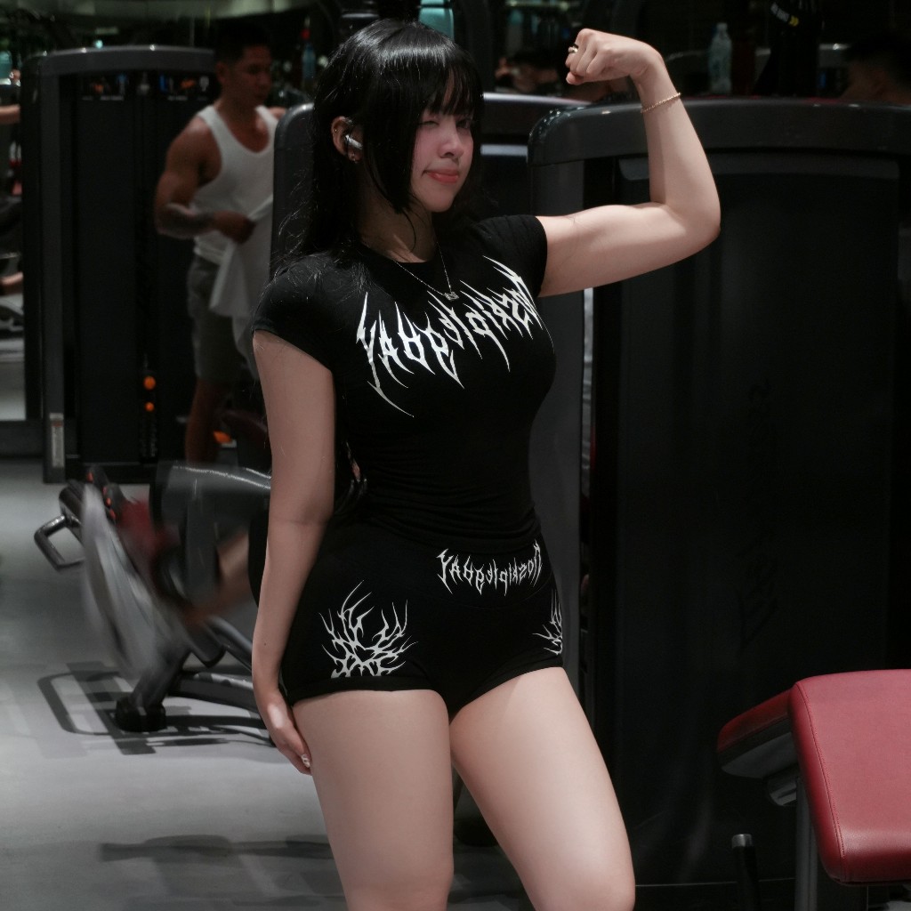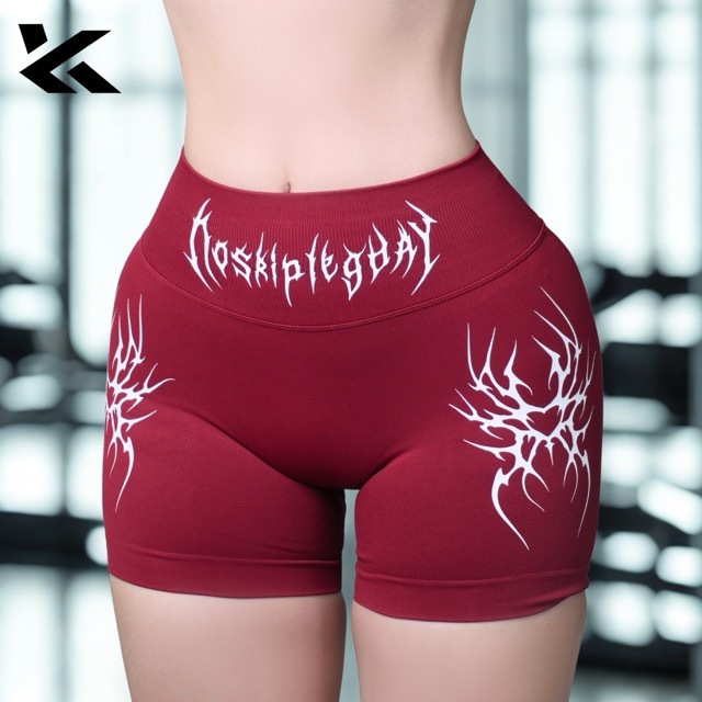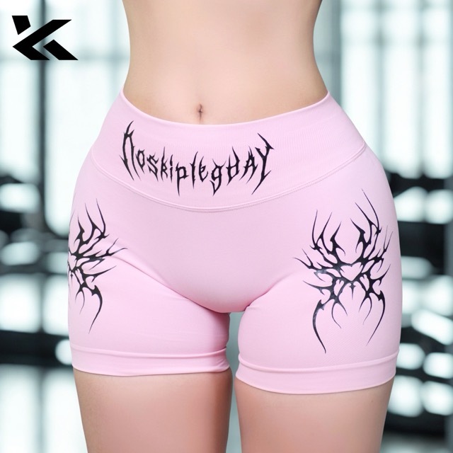 กางเกงยิมขาสั้นผู้หญิงลายเท่ๆ yoga zumba ยกก้นเอวสูงแบบถัก พองหุ่น KUHESS GN1/GN2