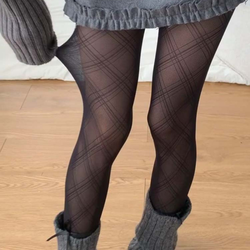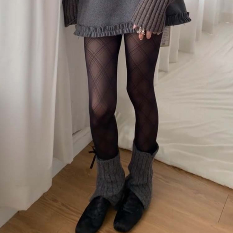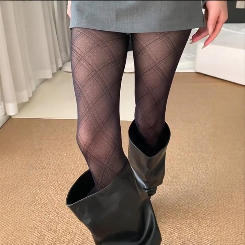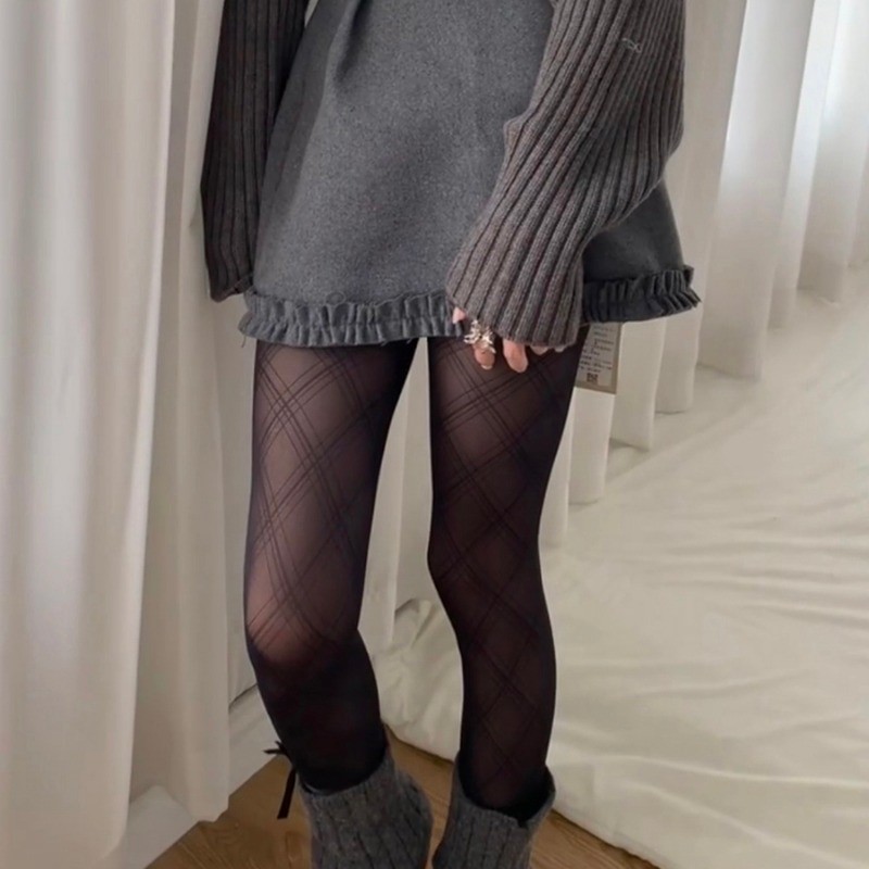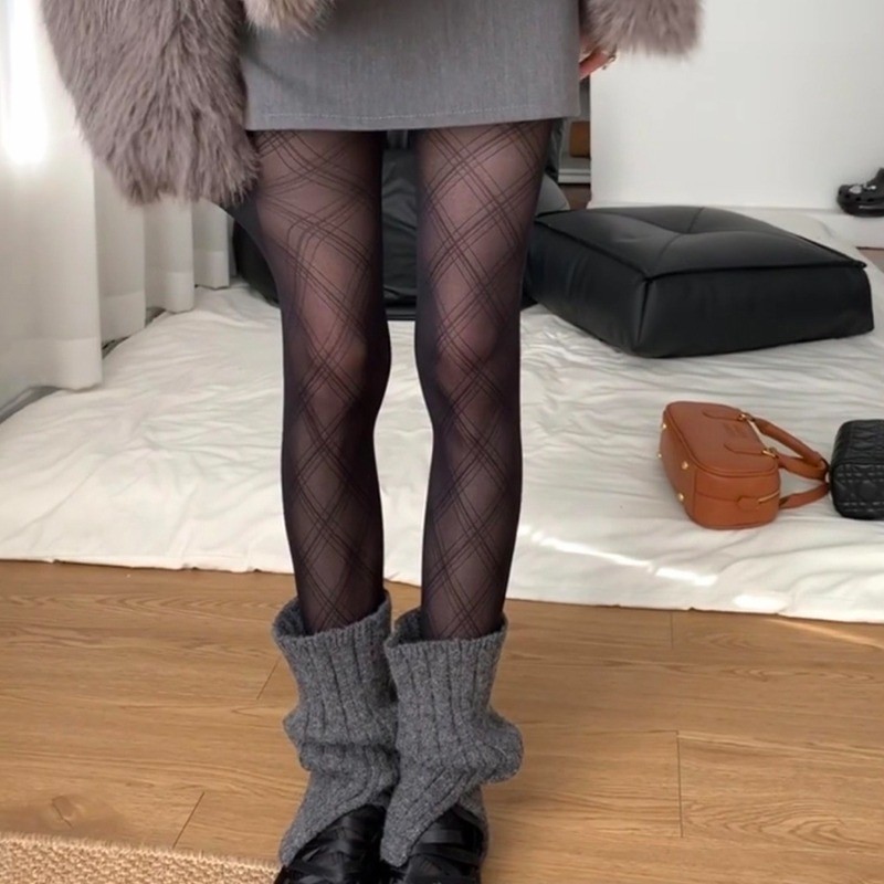 แฟชั่น Semi Sheer Tights -fit slimming เซ็กซี่ คลาสสิก เพชรรูปแบบ ถุงน่องสตรี Hosiery