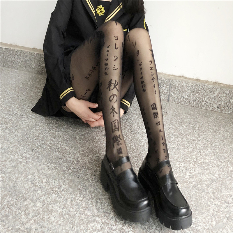 แฟชั่นญี่ปุ่นพิมพ์ถุงน่องถุงน่องขนาดบวกฤดูร้อนบางถุงน่องตาข่ายสักลายถุงเท้าผู้หญิงสาว