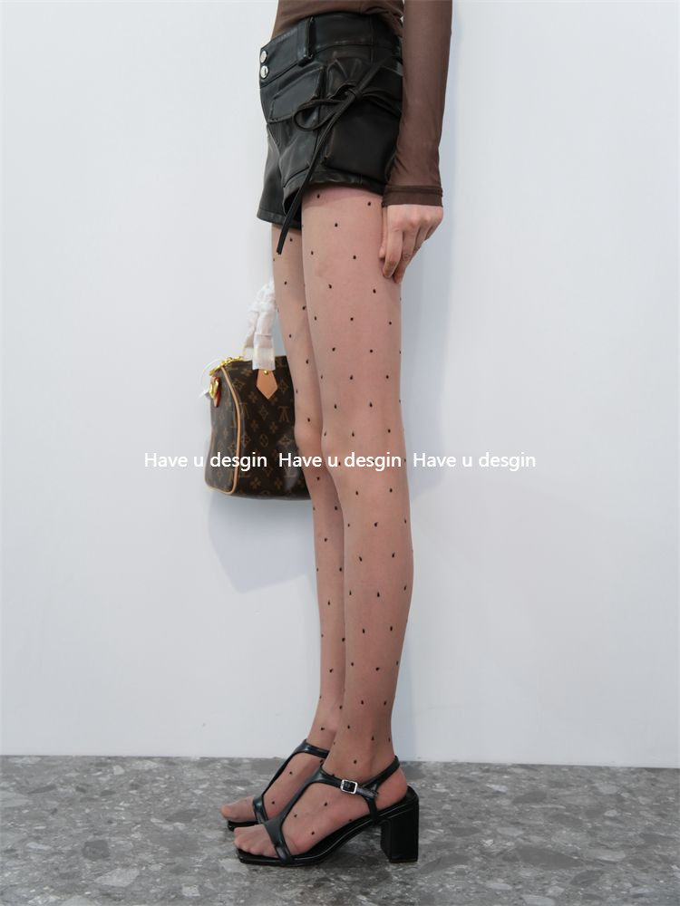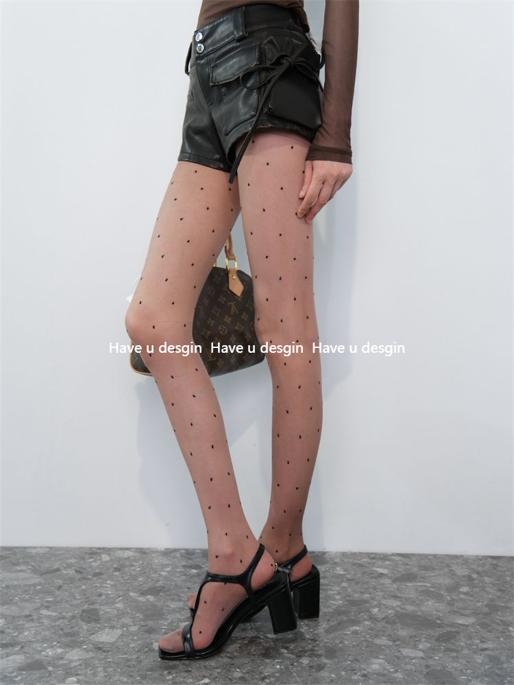 มี u desgin Retro Classic Coffee Bottom Polka Dot Gao Zhi Workplace สไตล์ถุงน่องถุงเท้า Bottoming