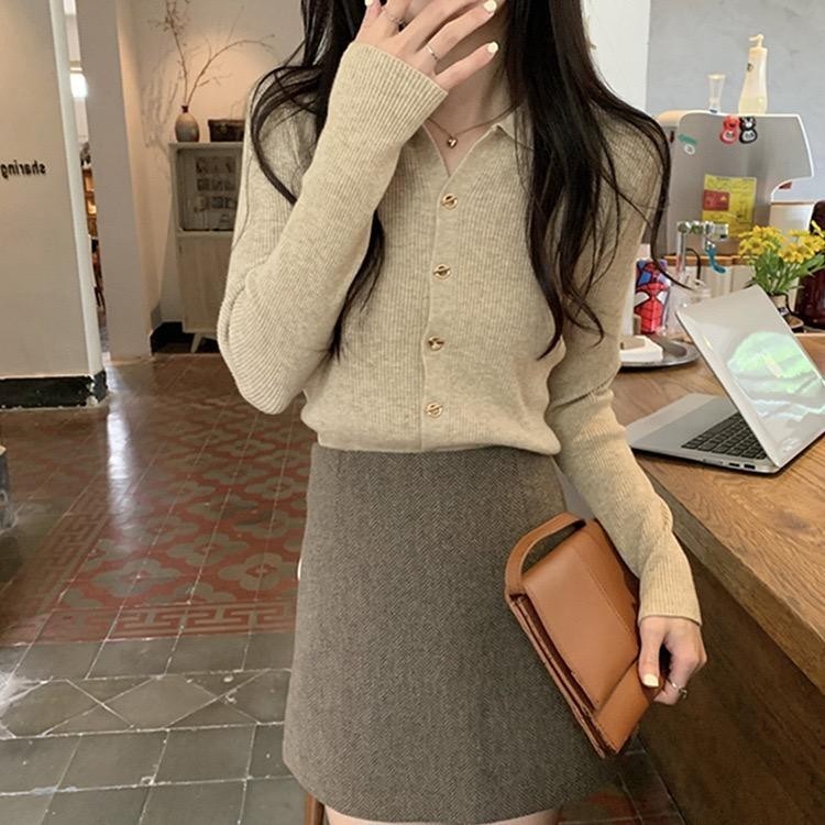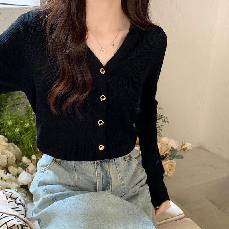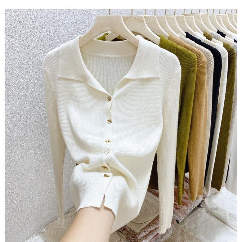 Chemise#เสื้อไหมพรมกระดุมหน้า แขนยาว คอปก ปกโปโลสไตล์เกาหลี แฟชั่น ผ้านิ่ม#รุ่นA116