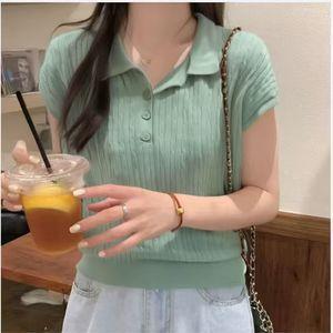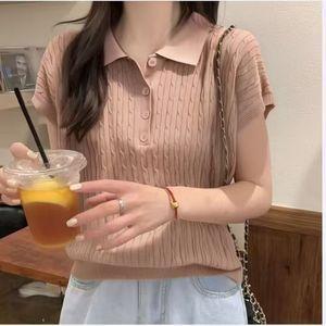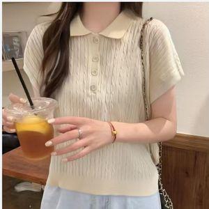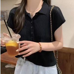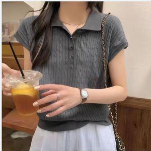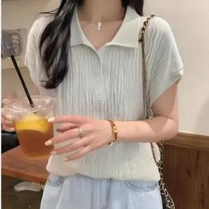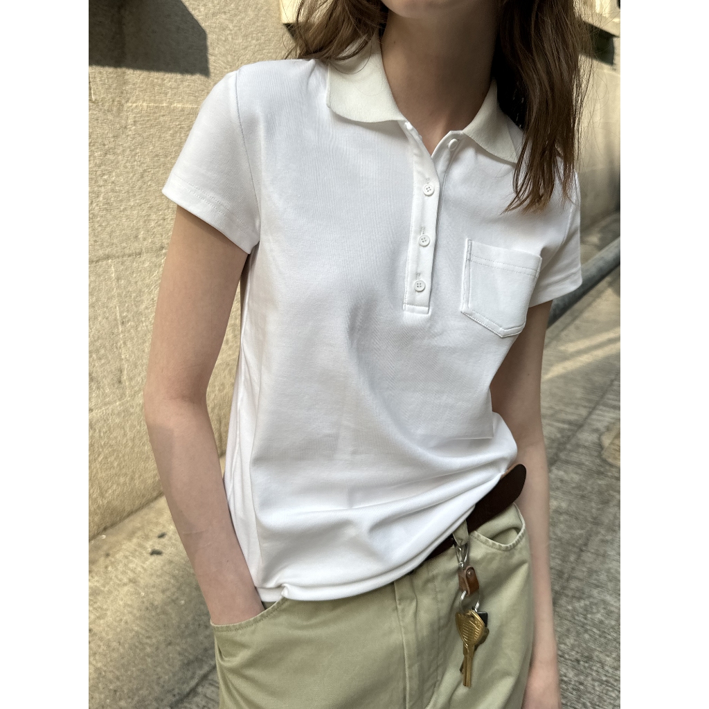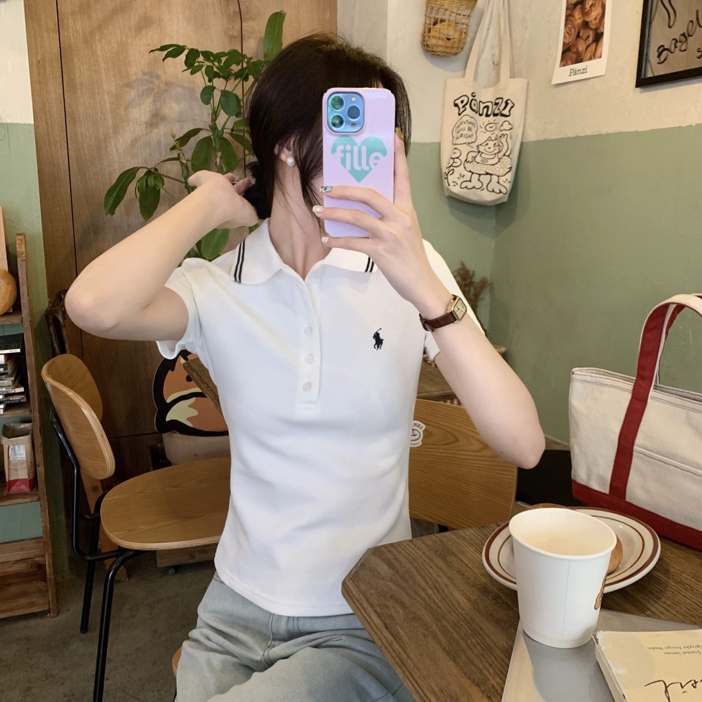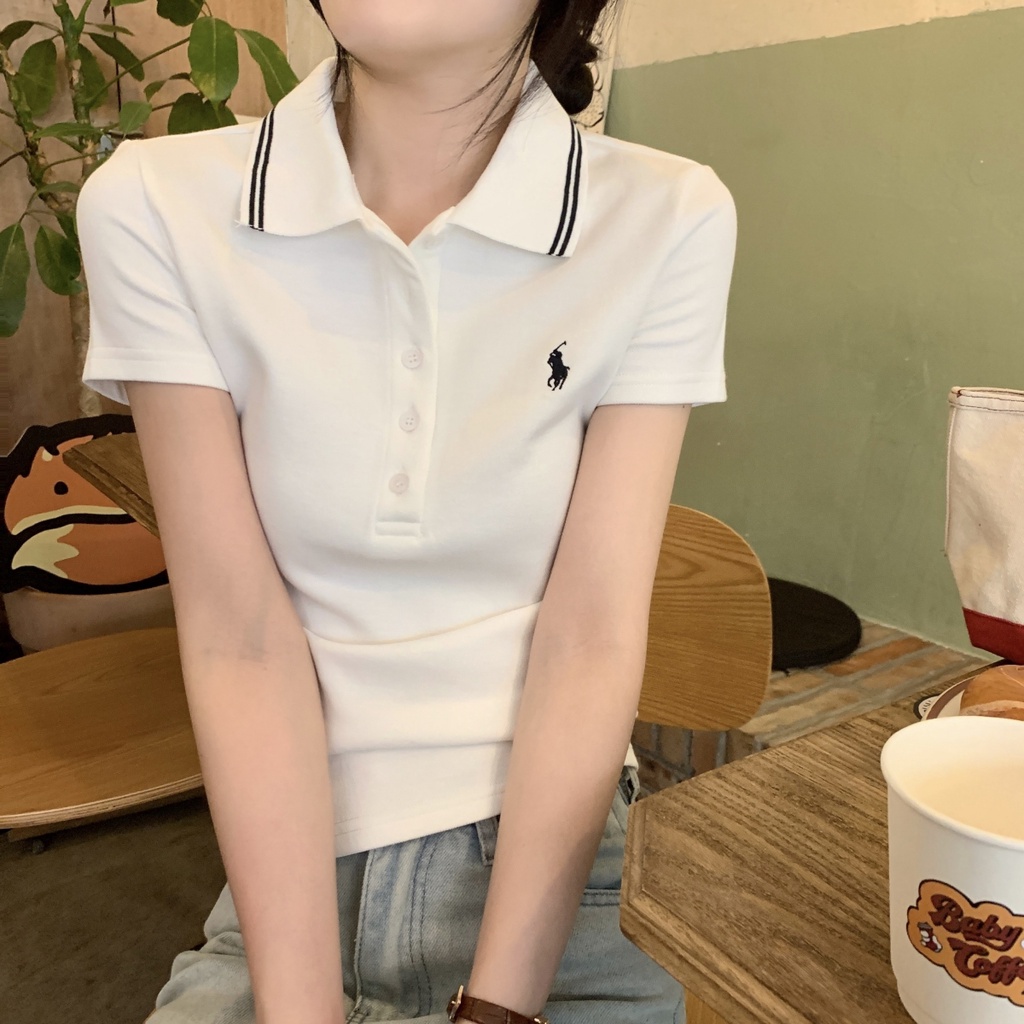 2025 ใหม่ฮาราจูกุผ้าฝ้ายบริสุทธิ์เสื้อโปโลสลิมฟิตสุภาพสตรีวินเทจ ย2เค ปักจดหมายฤดูร้อนแขนสั้น
