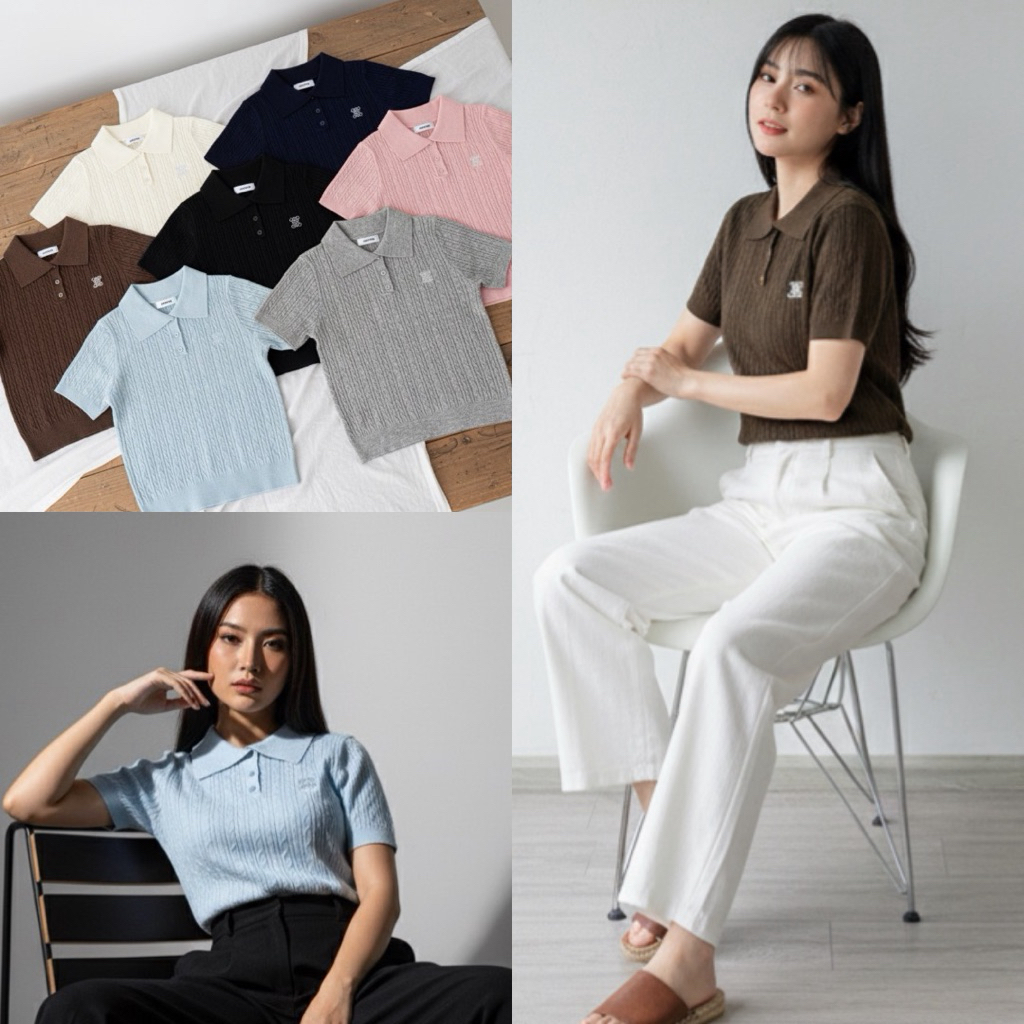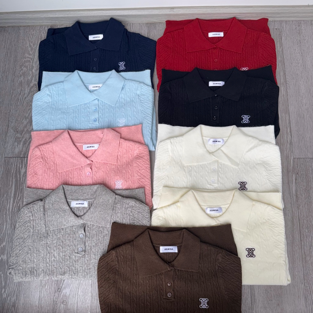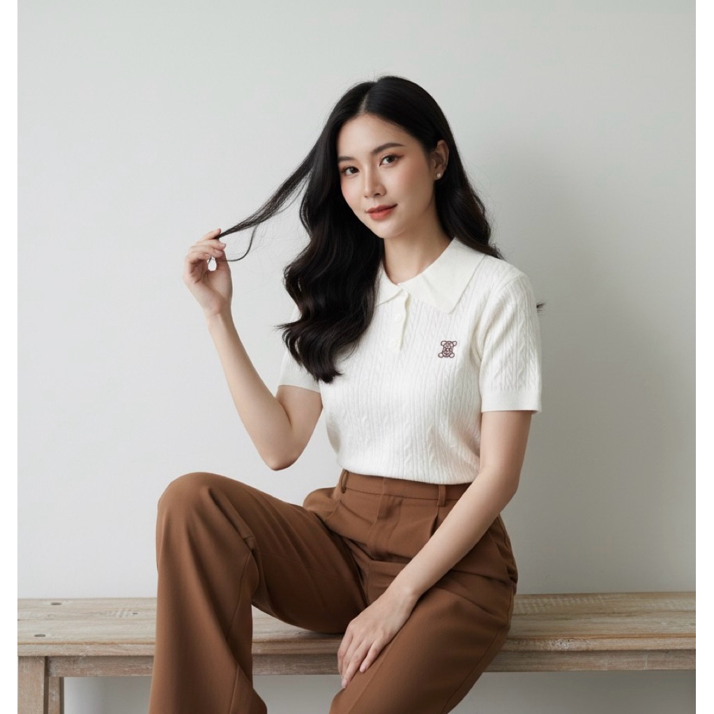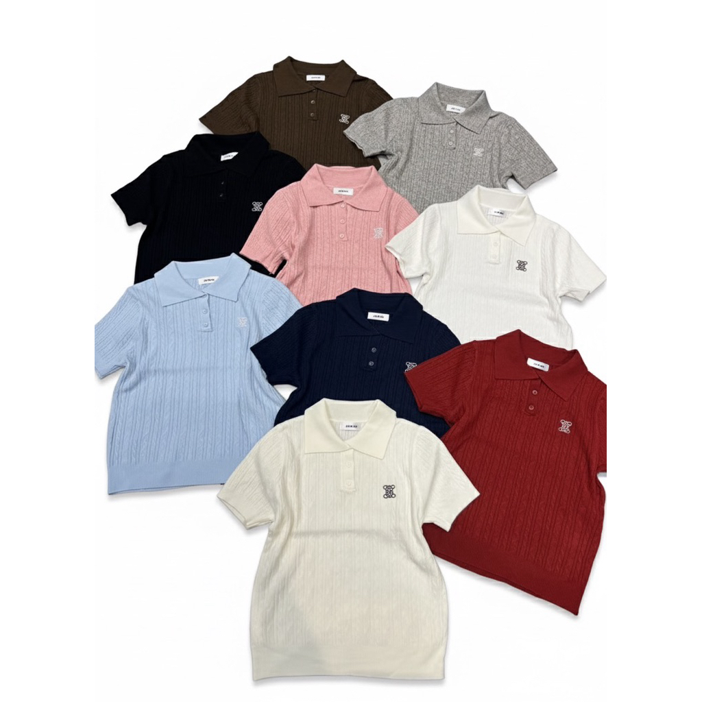BEARRY POP เสื้อโปโล ไหมพรหมสีพื้นปักลายตรงหน้าอก ?พร้อมส่ง