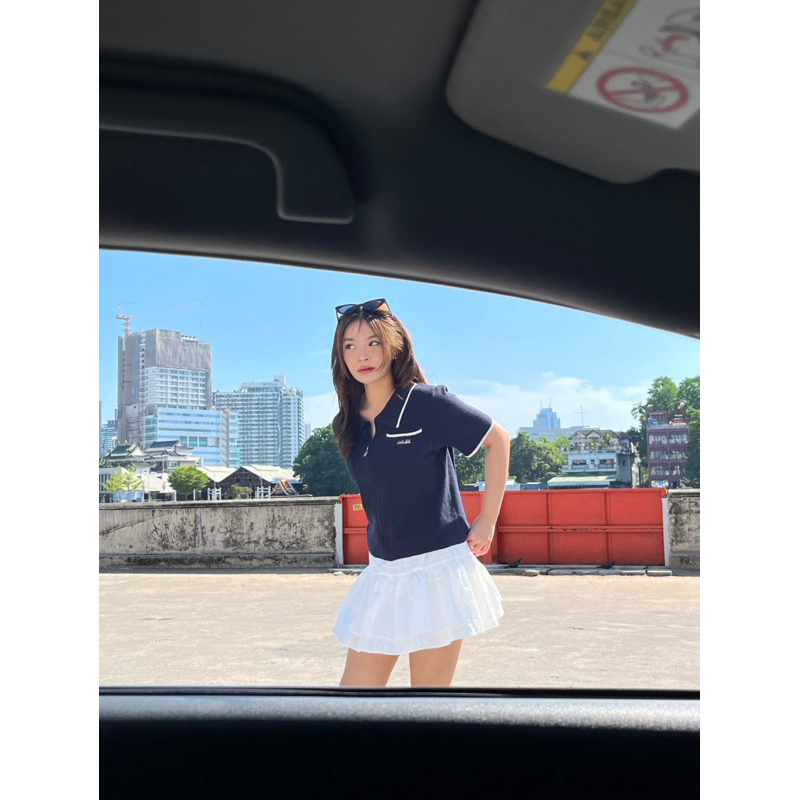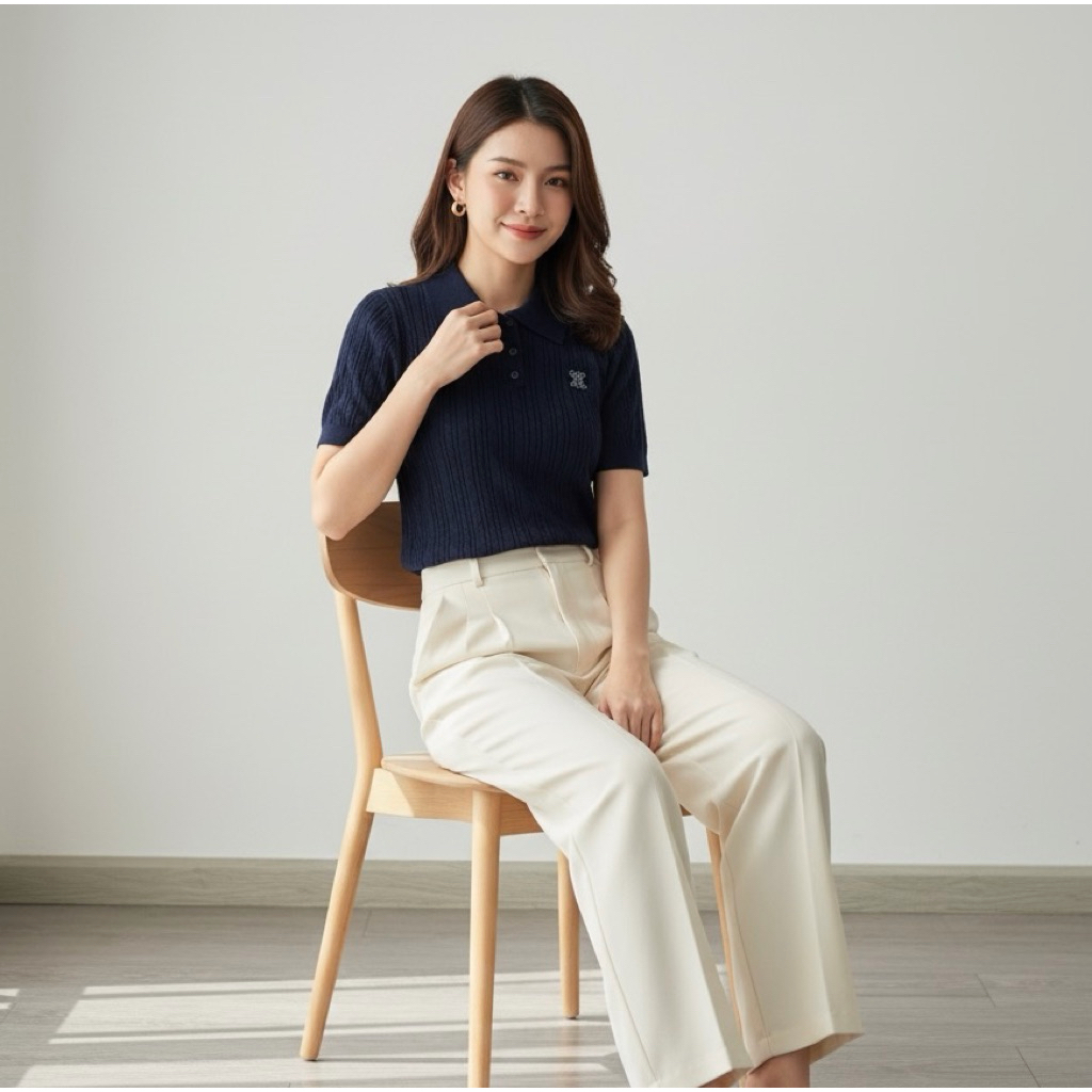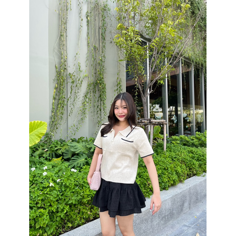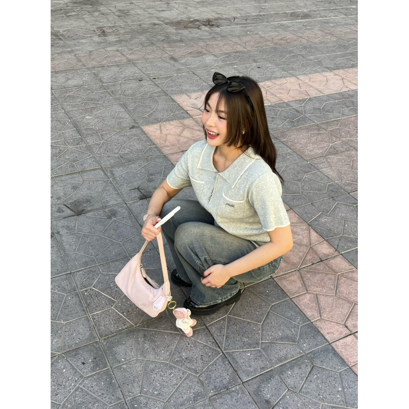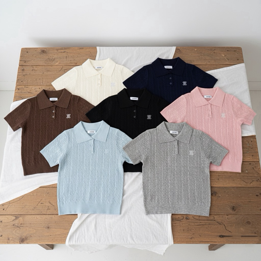 BEARRY POP เสื้อโปโล ไหมพรหมสีพื้นปักลายตรงหน้าอก ?พร้อมส่ง