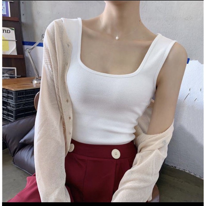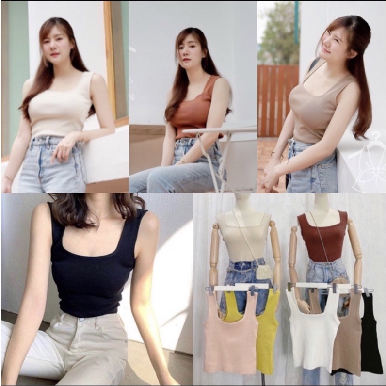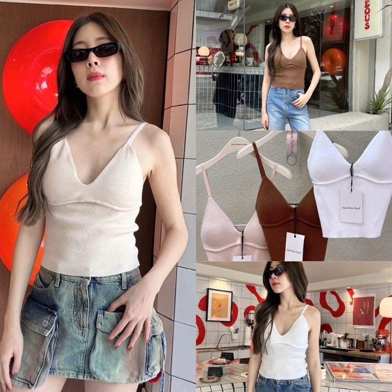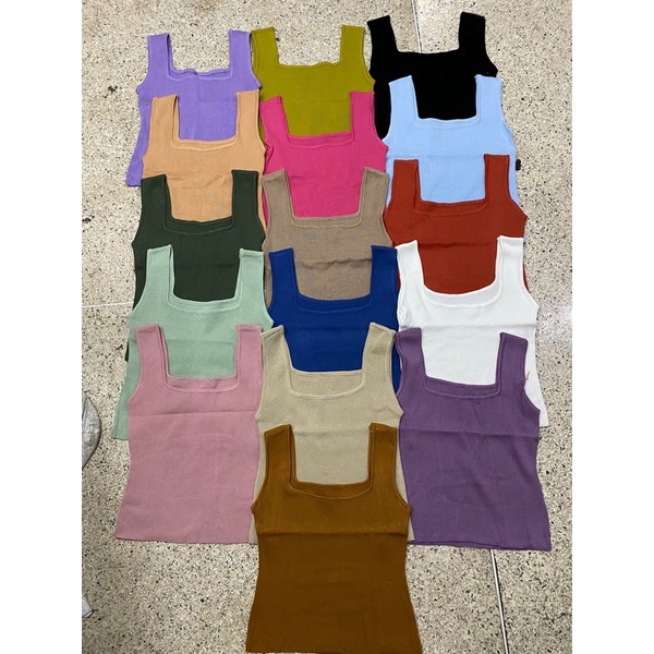 ? VL knit top เสื้อสายเดี่ยวผ้านิต โทนละมุน มีฟองน้ำในตัว ผ้าเนื้อนุ่ม ยืดหยุ่นได้เยอะ งานดี โทนสีคือละมุนมากก