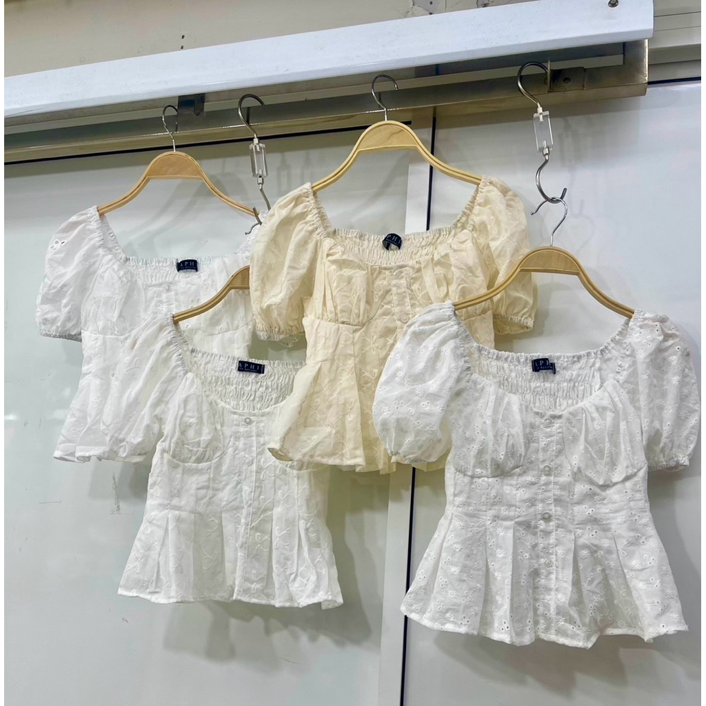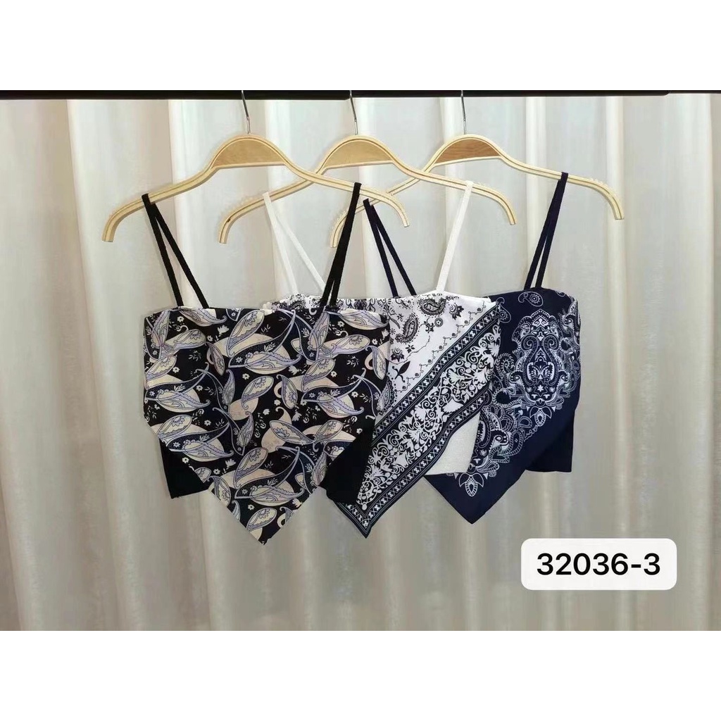 ??พร้อมส่ง*วินเทจเสื้อสายเดี่ยวเอวลอยแต่งทรงสามเหลี่ยมเก๋ๆ32036-3