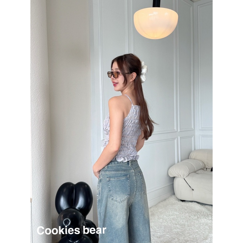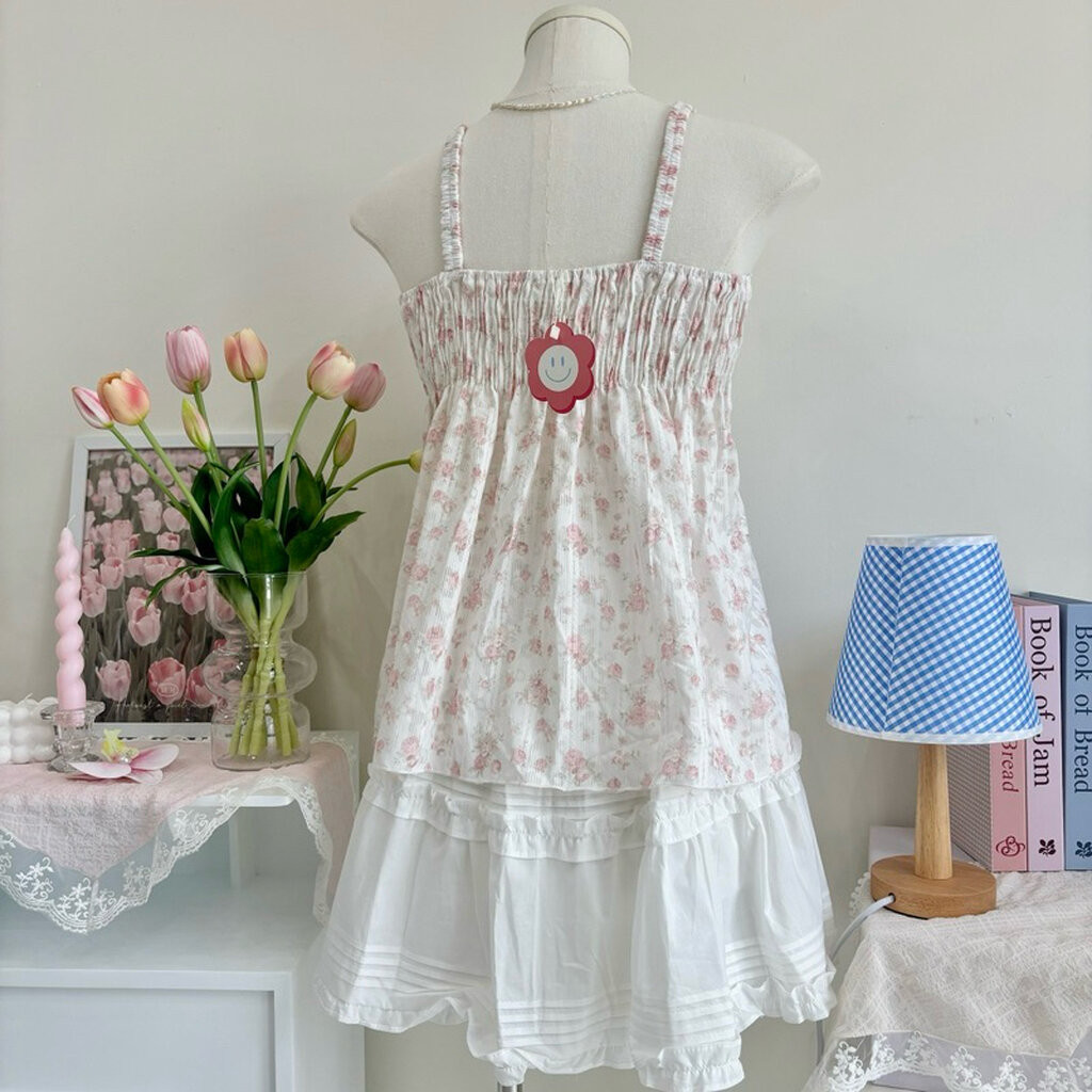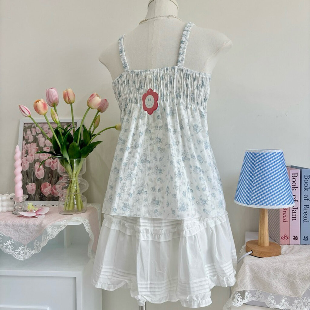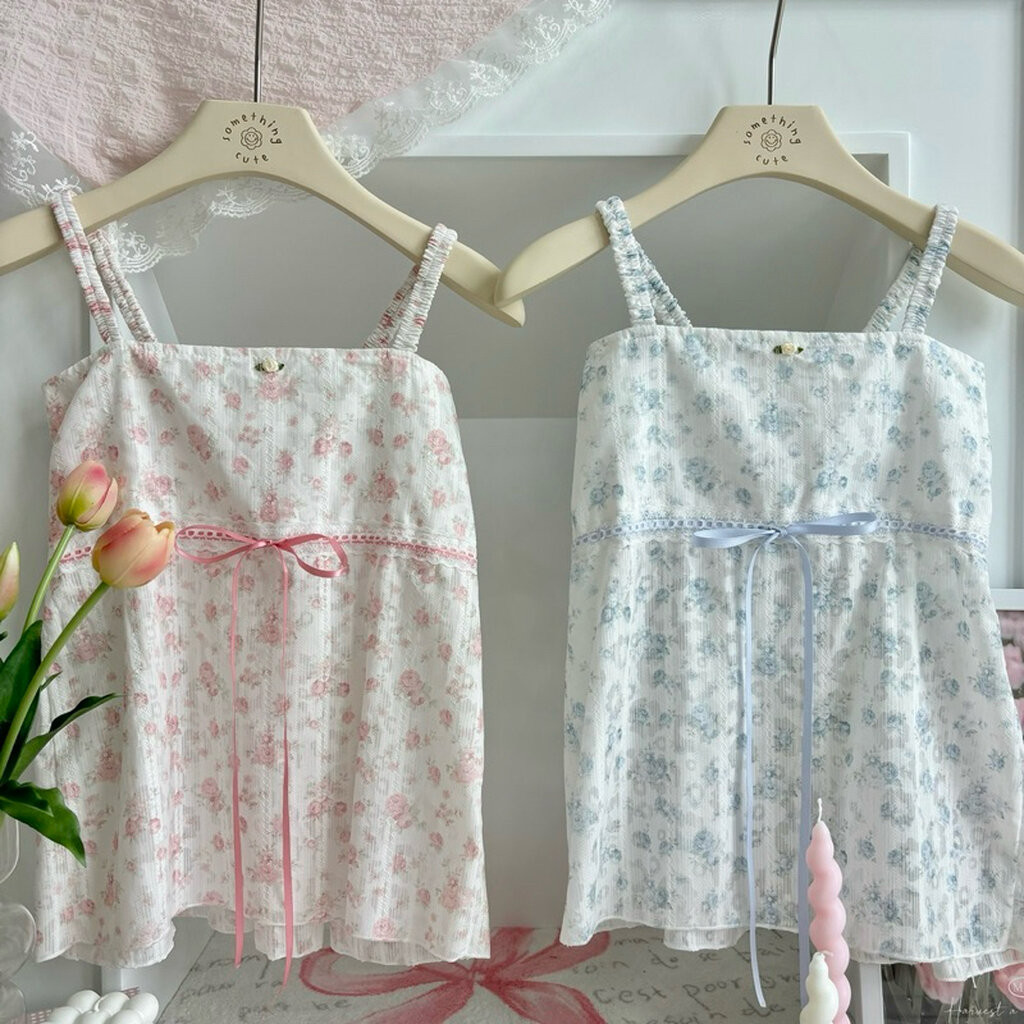 ? SweetHouse #589 ? เสื้อสายเดี่ยวลายดอกไม้แน่งด้วยริบบิ้นหวานน่านักละมุนสุด
