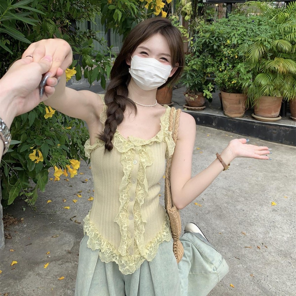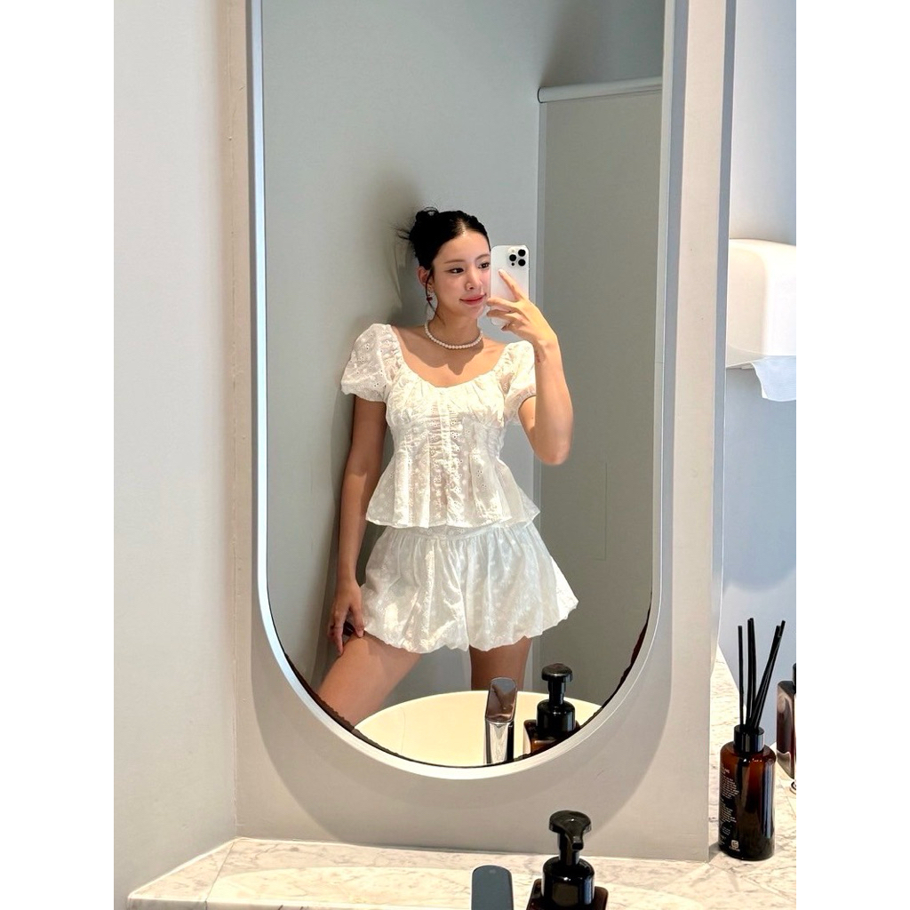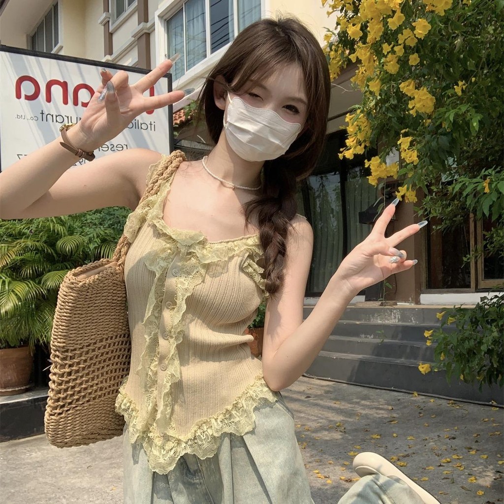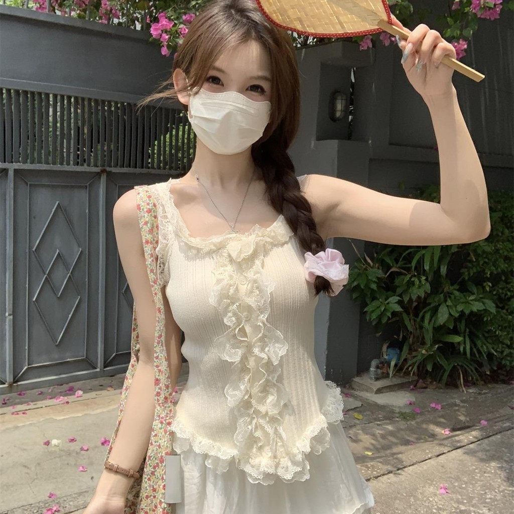 ?Anna? เสื้อไหมพรมแขนกุดลูกไม้ตัวสั้นหวานๆ ดีไซน์สวย ผ้ามีความยืดหยุ่น สวมใส่สบาย เสื้อผ้าแฟชั่นสวยๆ #D625