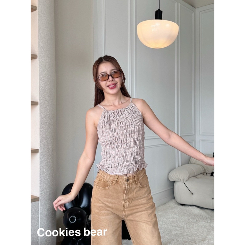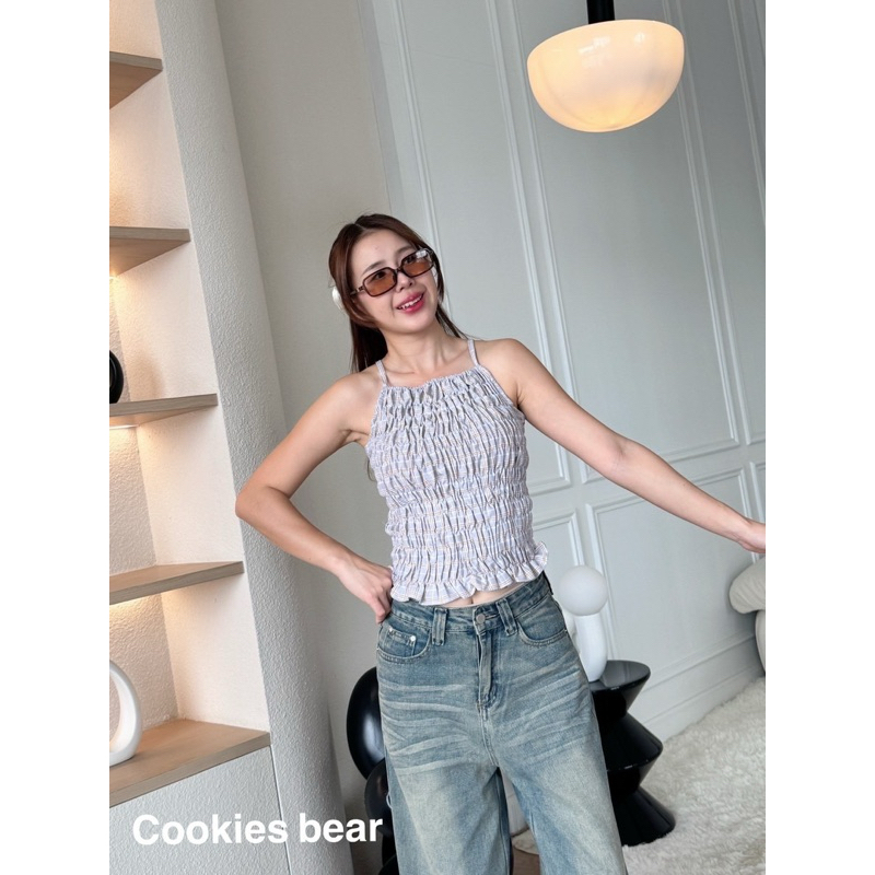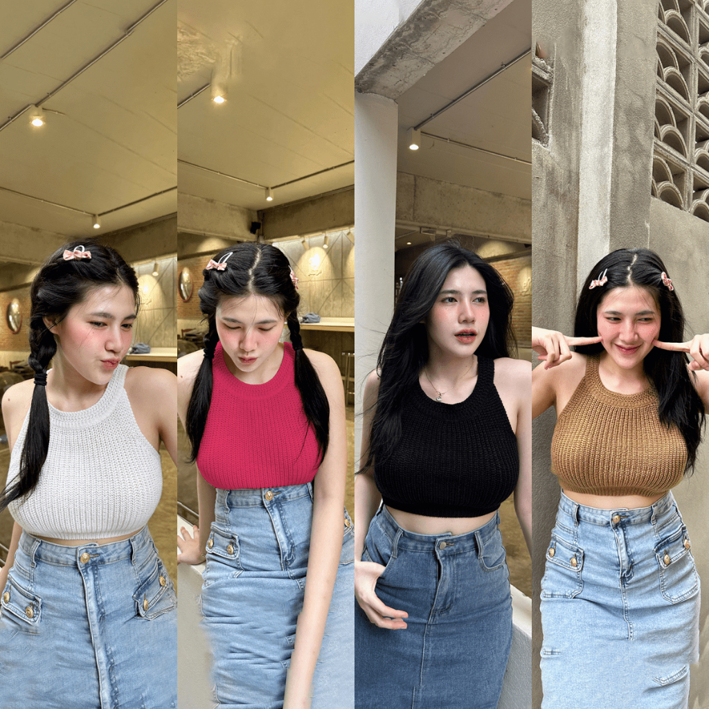 ? SpinnyHouse ? เสื้อกล้าม ครอปไหมพรม เสื้อไปทะเล? ครอปท็อปน่ารัก สาวอวบใส่ได้ สายฝอ แมตซ์ได้ทุกลุค รุ่น popcorn