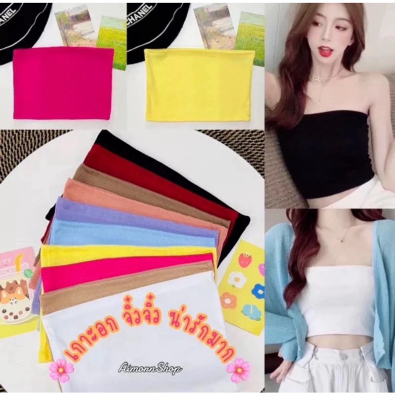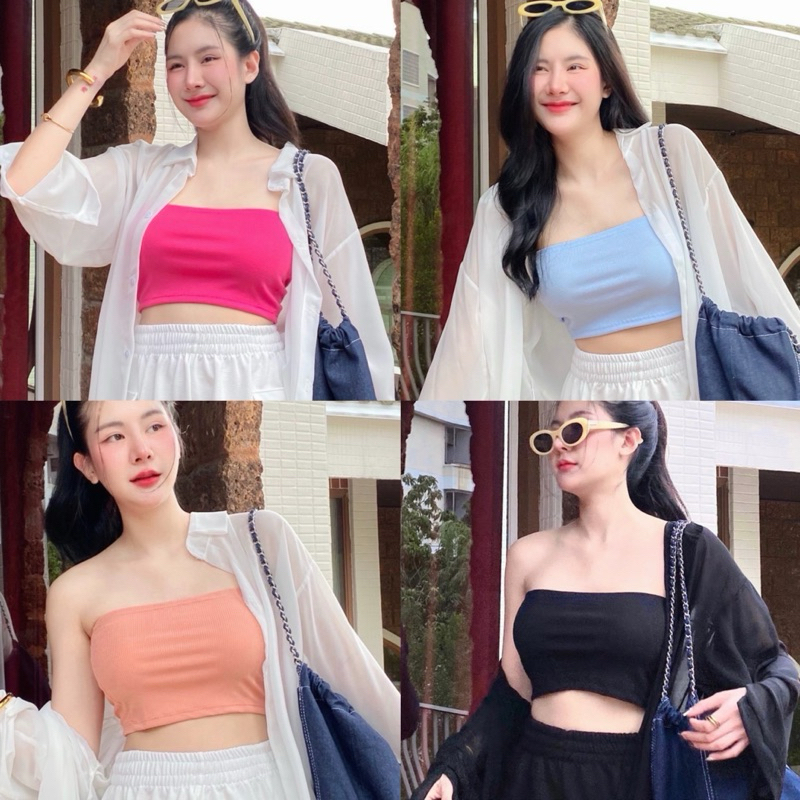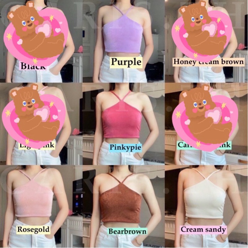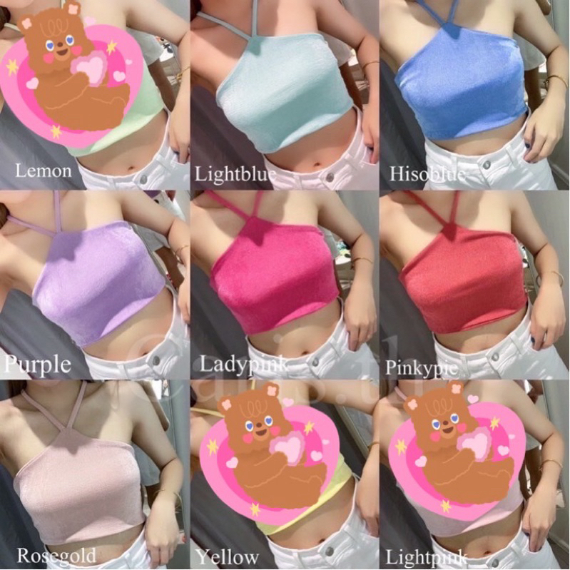 ????? ??? ครอปผ้าวิ้ง? พร้อมส่ง 30 สี?(เสื้อครอป ไม่ต้องผูกสาย)⚡️ผ้าวิ้ง⚡️อก29-36″?ผ้าหนา2ชั้น