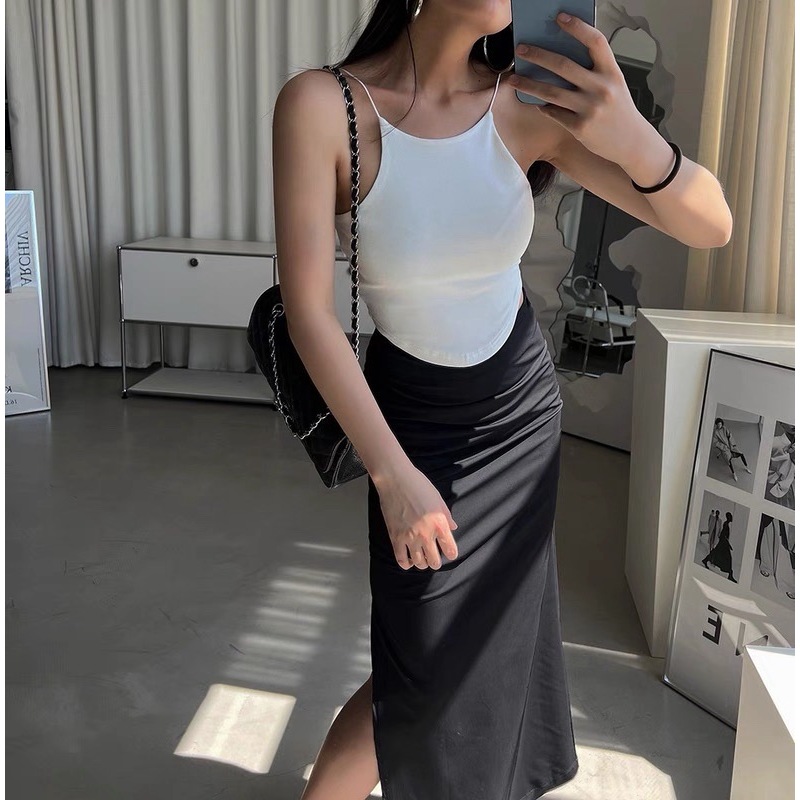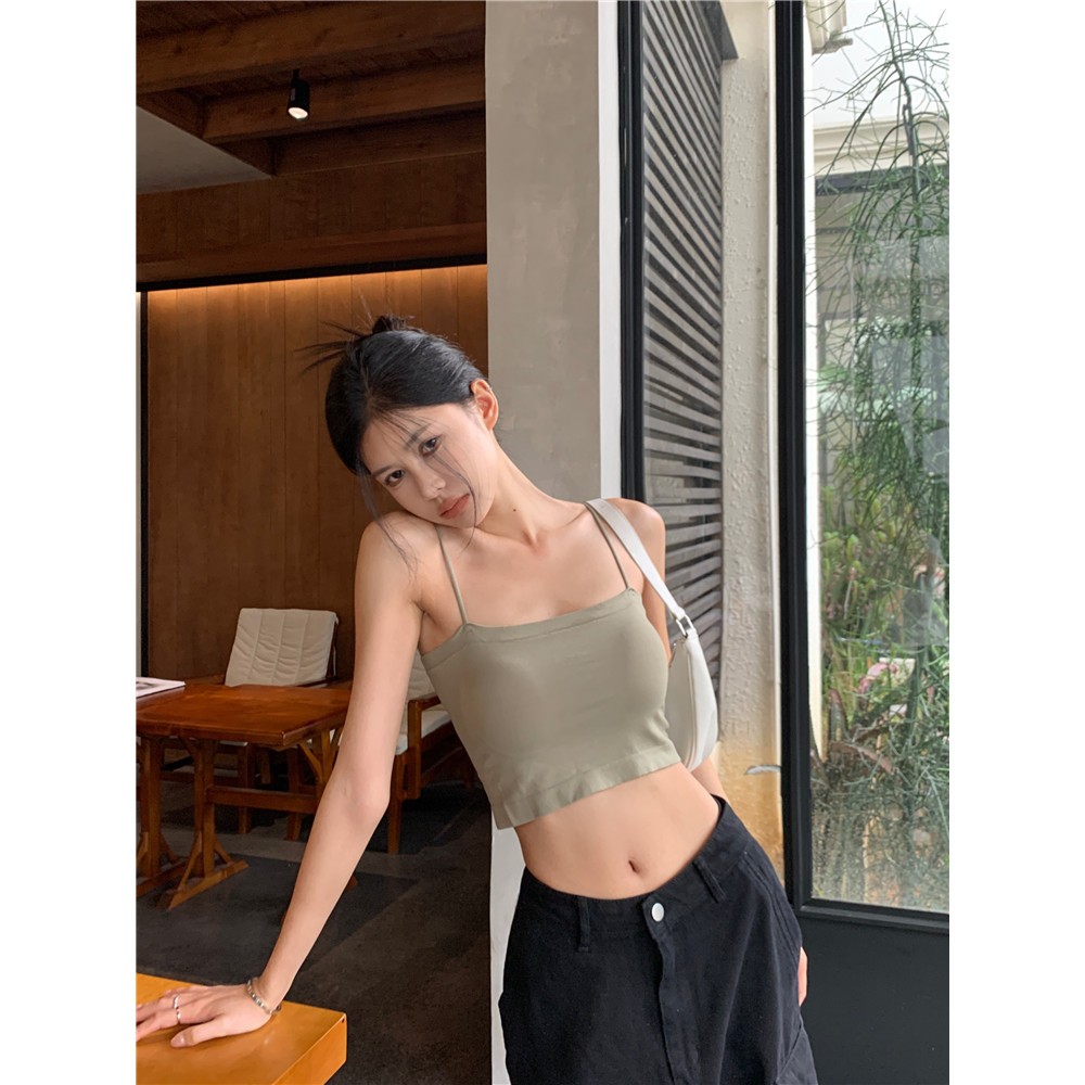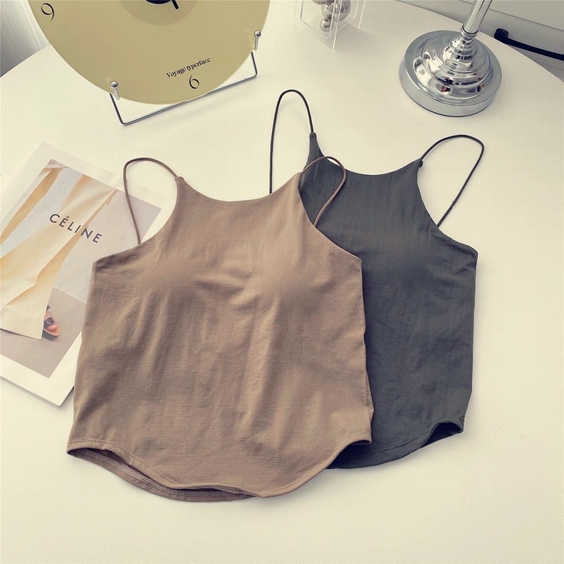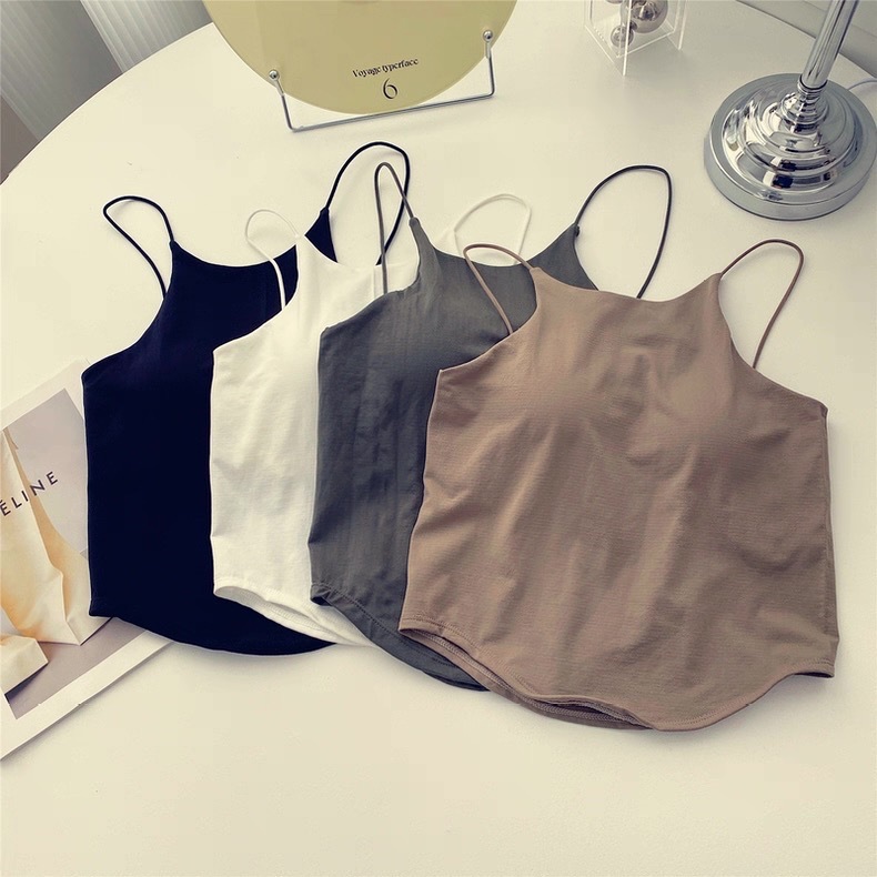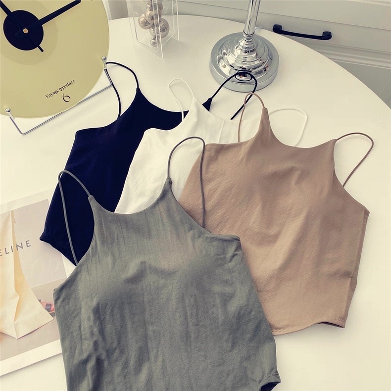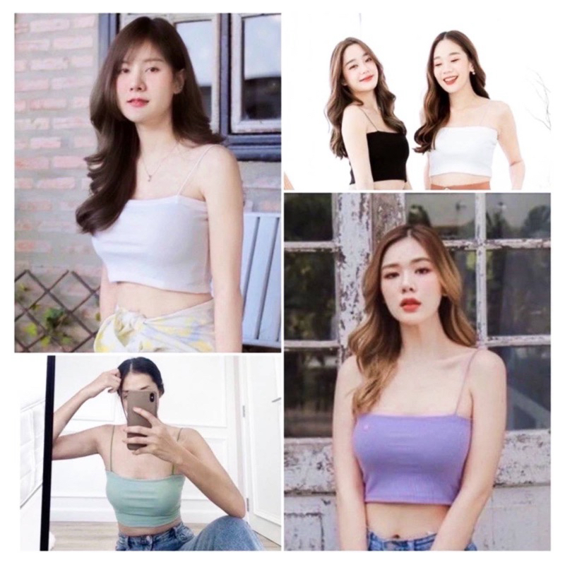 ?#เสื้อสายเดี่ยว ผ้านิ่ม สีพื้น มีฟองน้ำ เข้ารูป บาง เสื้อครอป แฟนชั่น สไตล์ลำลอง ใส่สบาย จัดส่งทันที