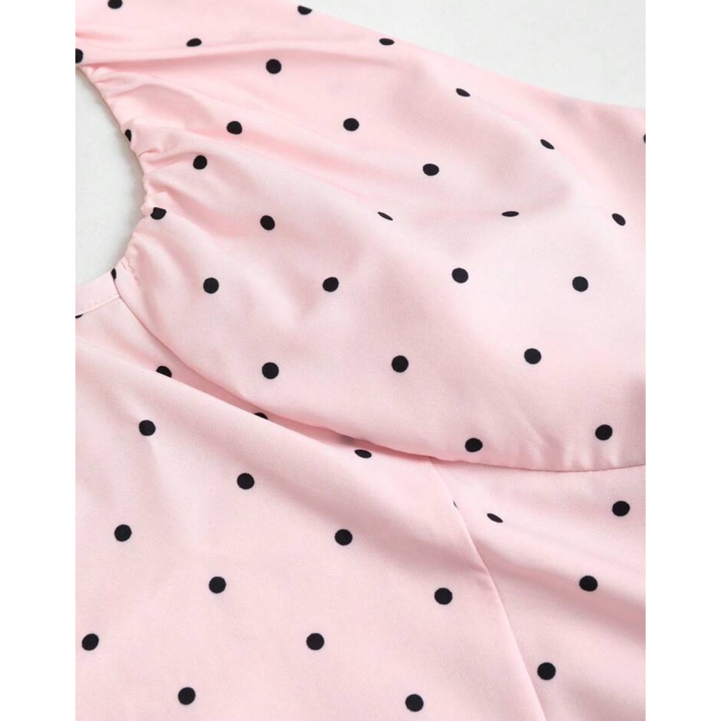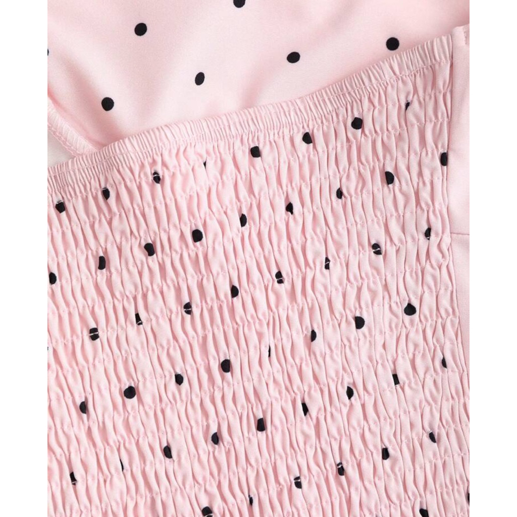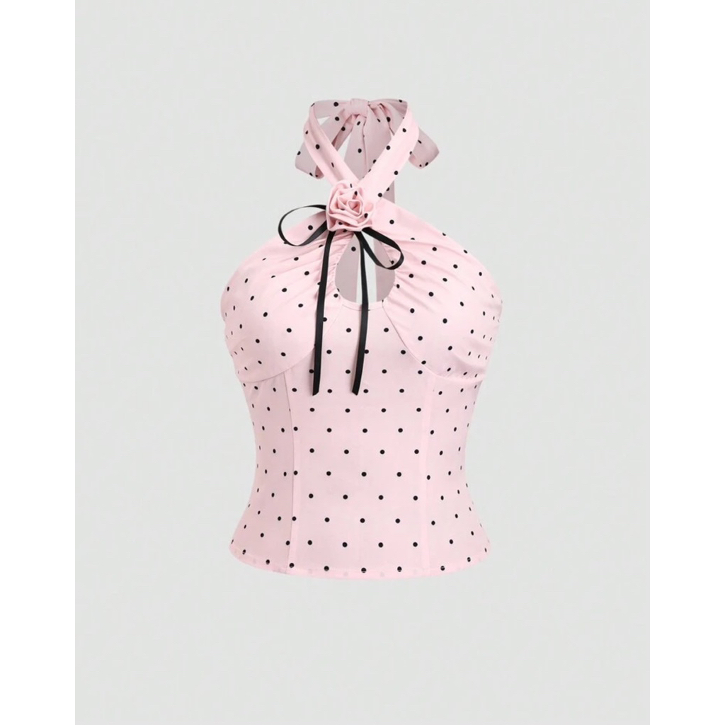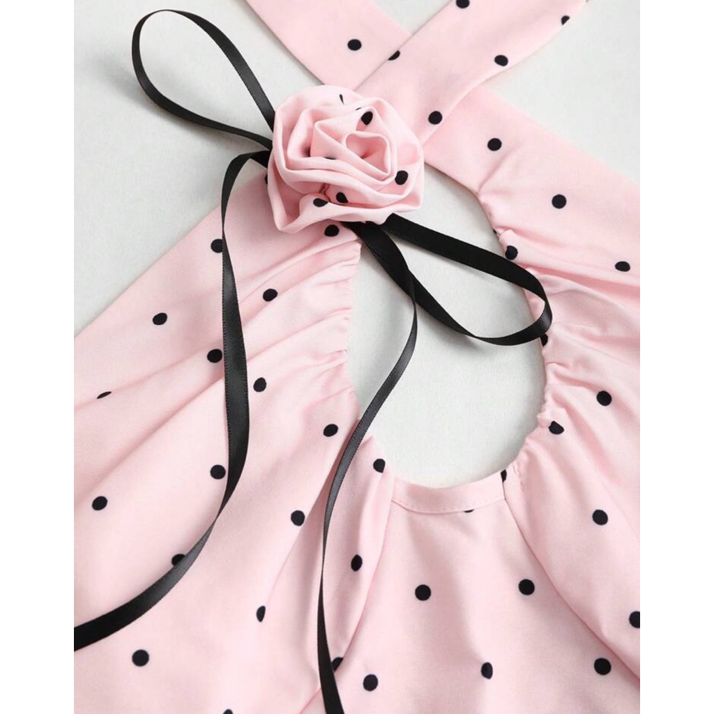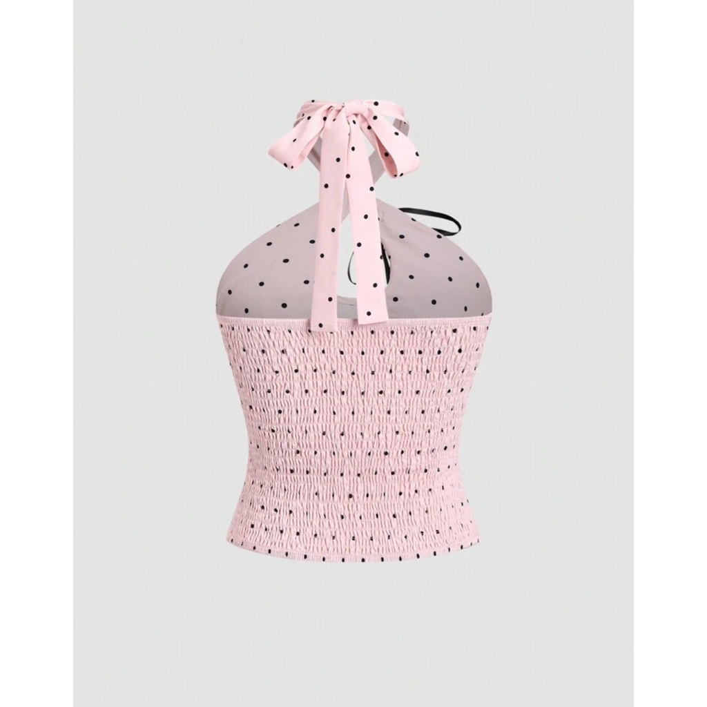 ?♀️พร้อมส่ง!! ? ??????| เสื้อสายเดี่ยวผูกโบว์ลายจุดสีชมพู polka dot (สม็อคหลัง)