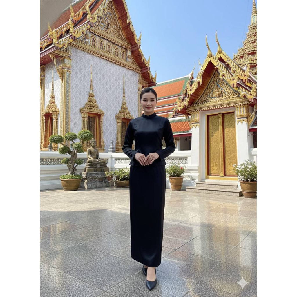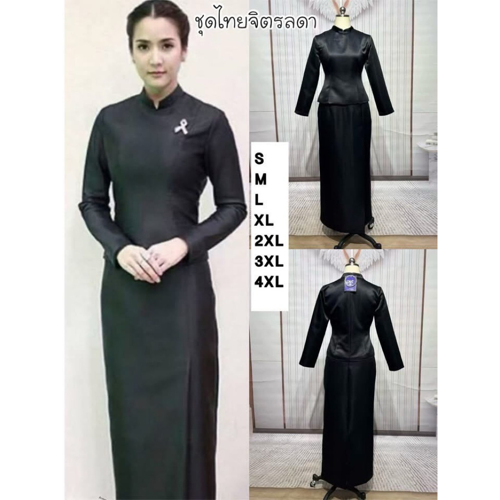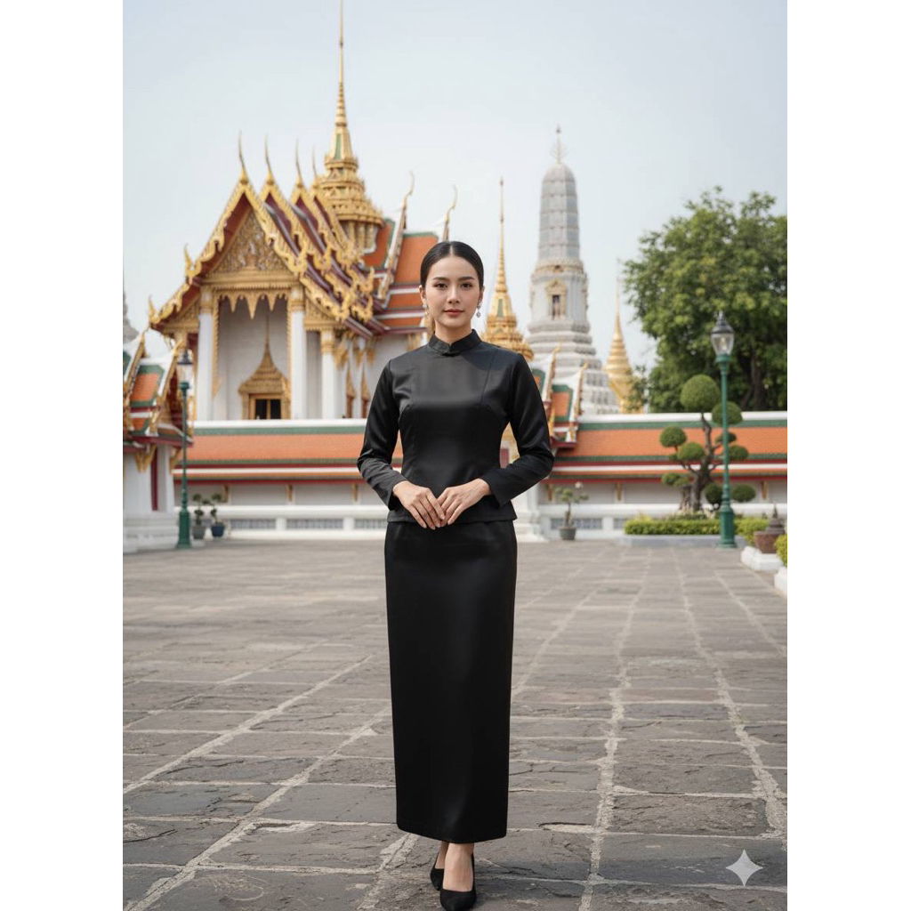 ❌พร้อมส่งM-4XL❌ป้าย ANANYA ชุดไทยบรมพิมานสีดำ งานตามหา ใส่ไว้อาลัย เสื้อคอตั้ง แขนยาว+ผ้าถุงสำเร็จรูป ทรงป้ายหน้าผ่าหลัง