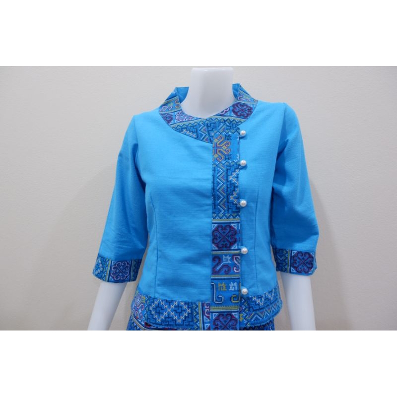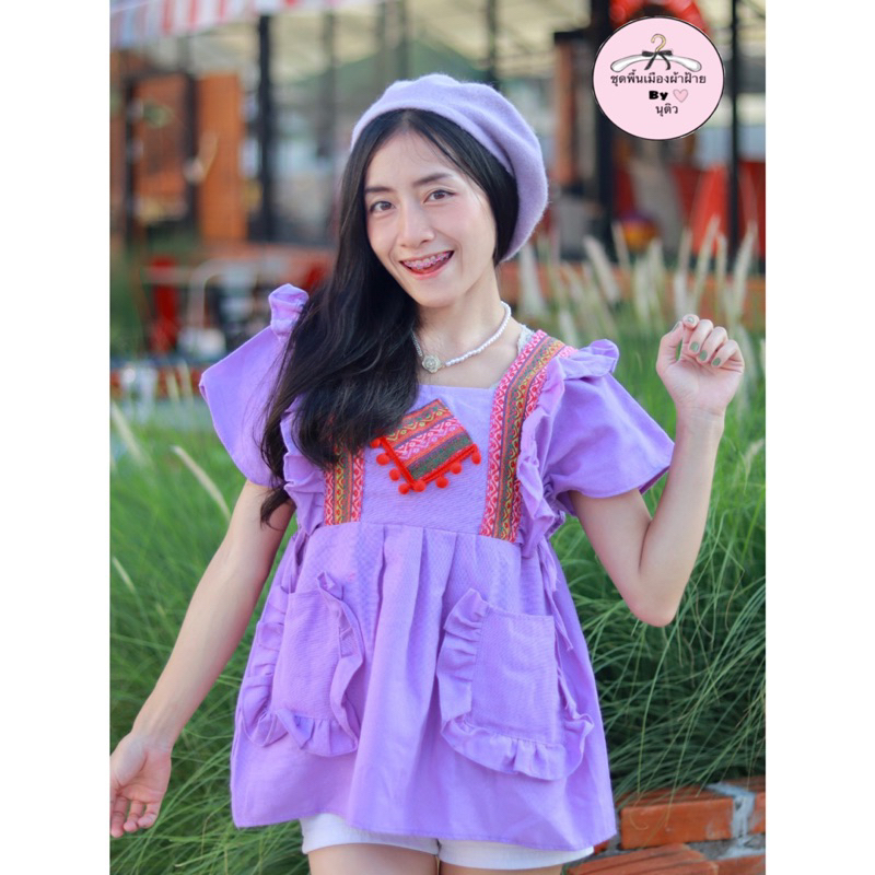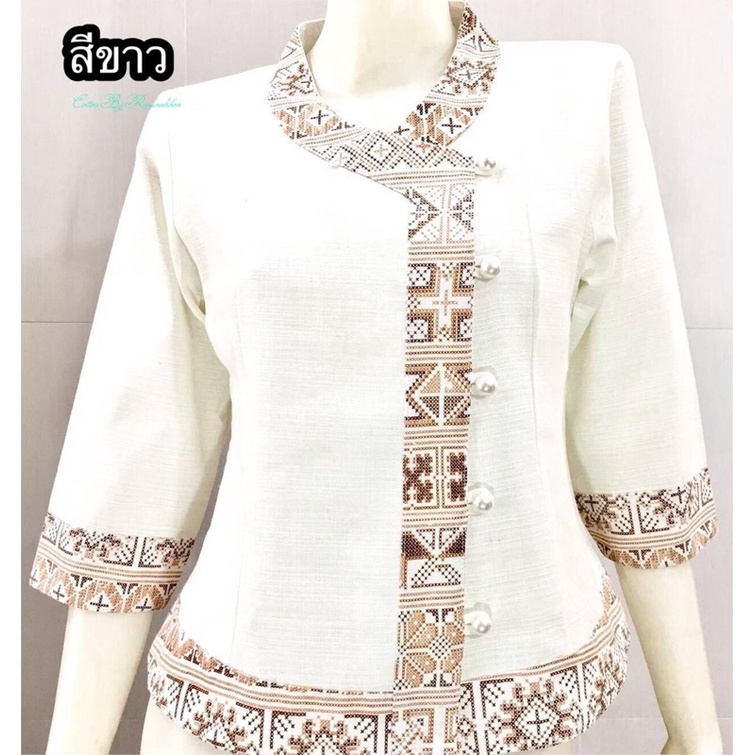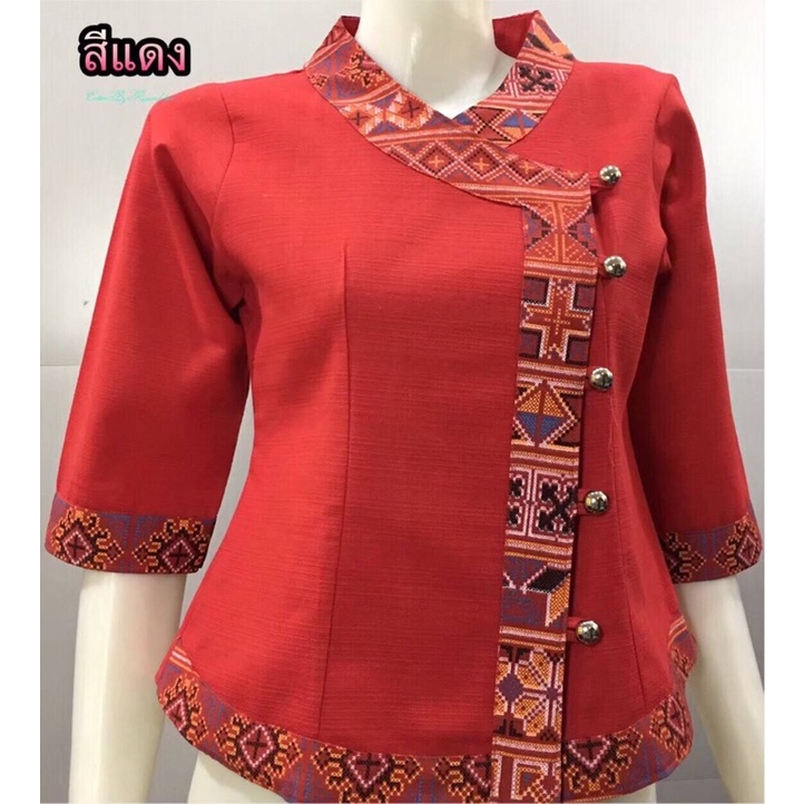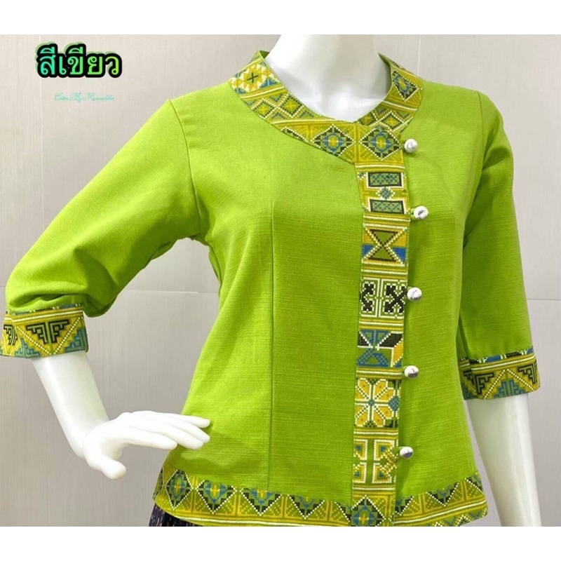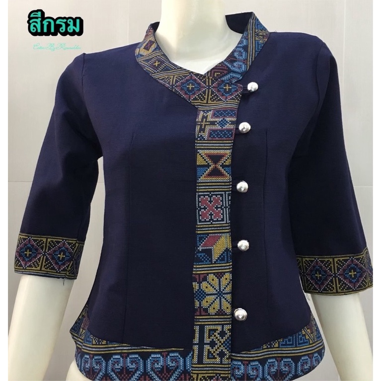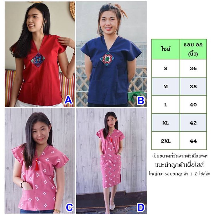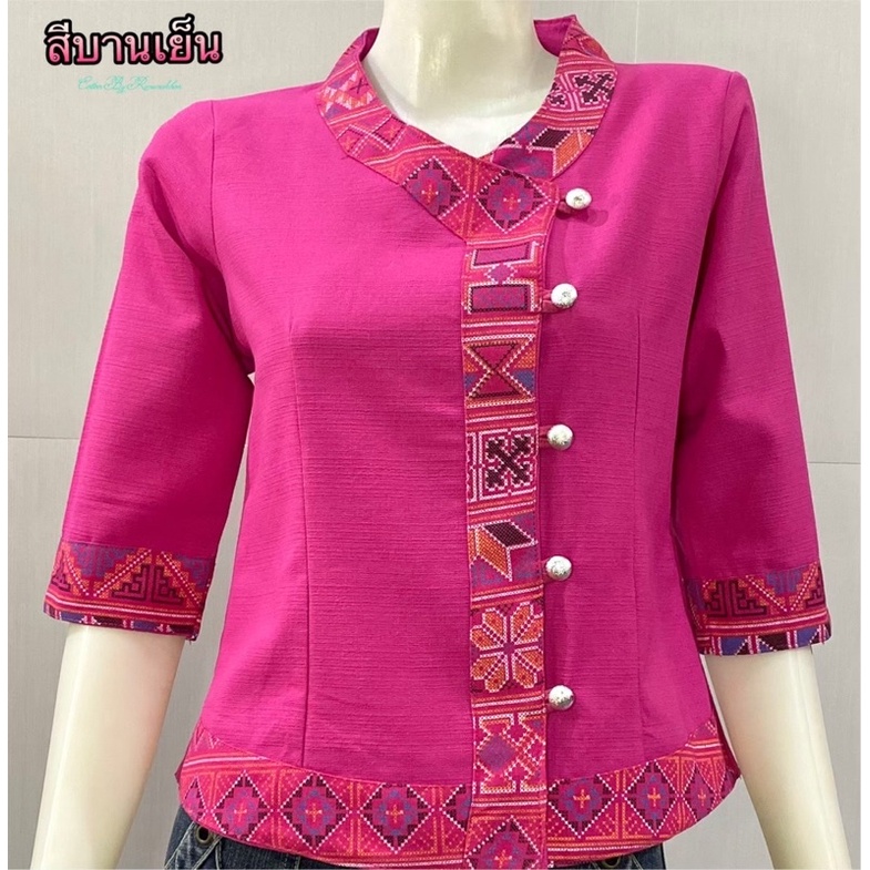 เสื้อผ้าฝ้าย เสื้อพื้นเมืองผู้หญิง ชุดพื้นเมือง เสื้อผ้าเมือง ผ้าไทย ผ้าฝ้าย ทรงกะเหรี่ยง
