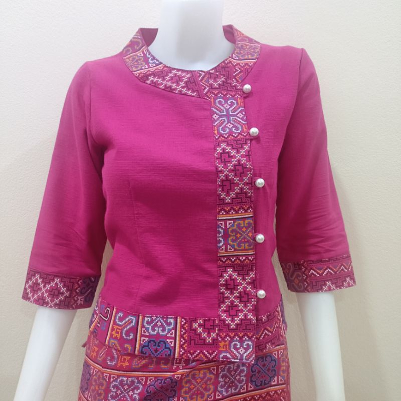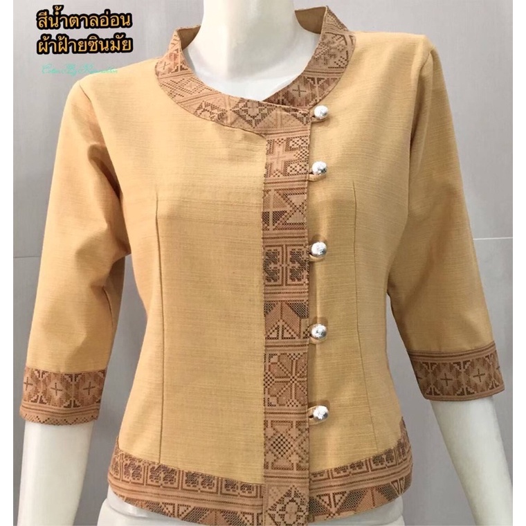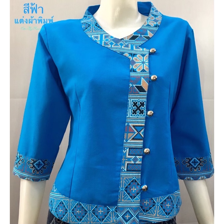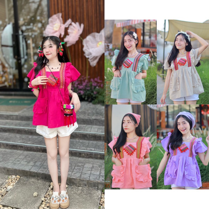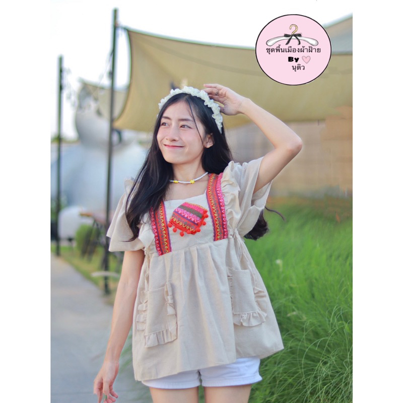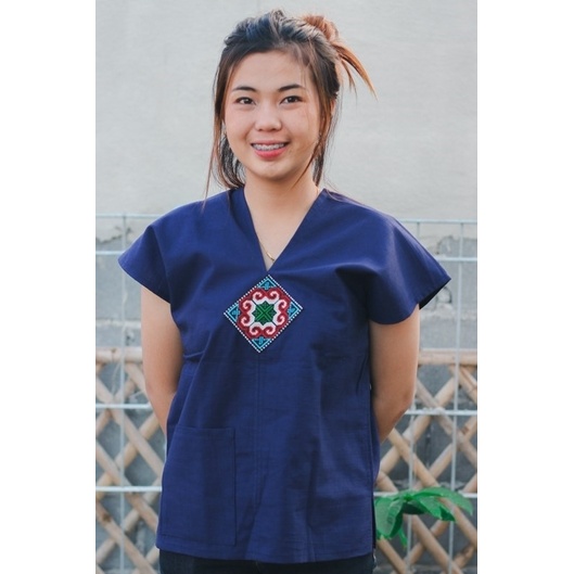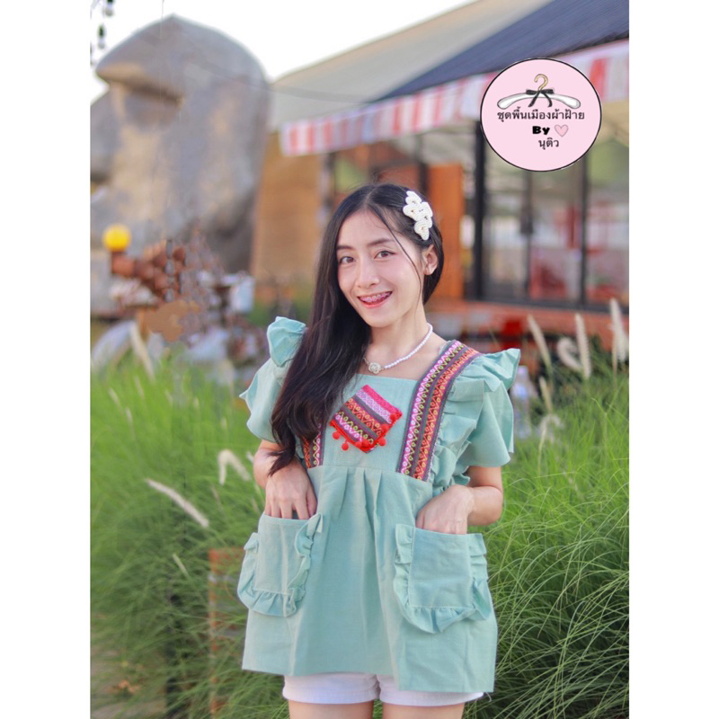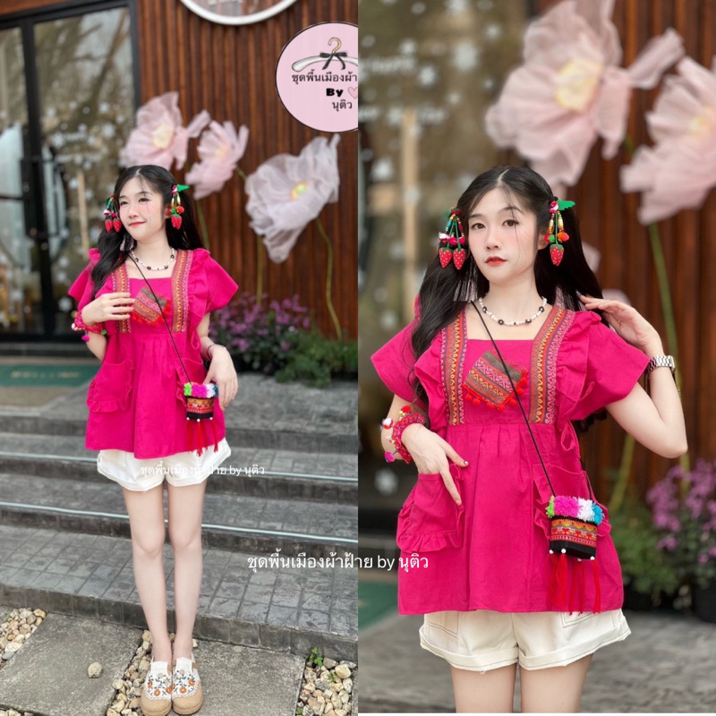 เสื้อผ้าฝ้าย เสื้อพื้นเมืองผู้หญิง ชุดพื้นเมือง เสื้อผ้าเมือง ผ้าไทย ผ้าฝ้าย ทรงกะเหรี่ยง