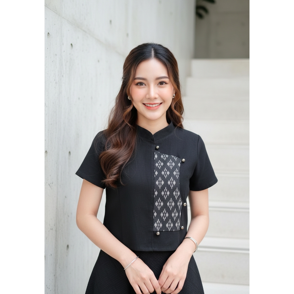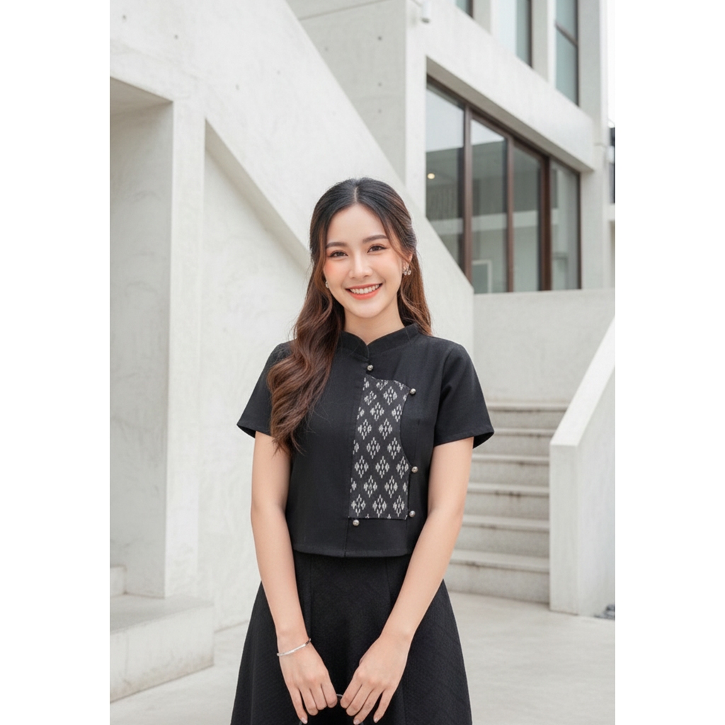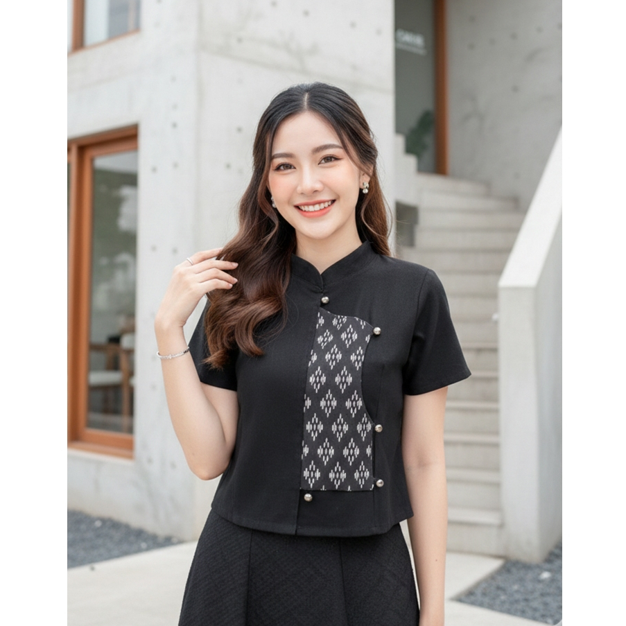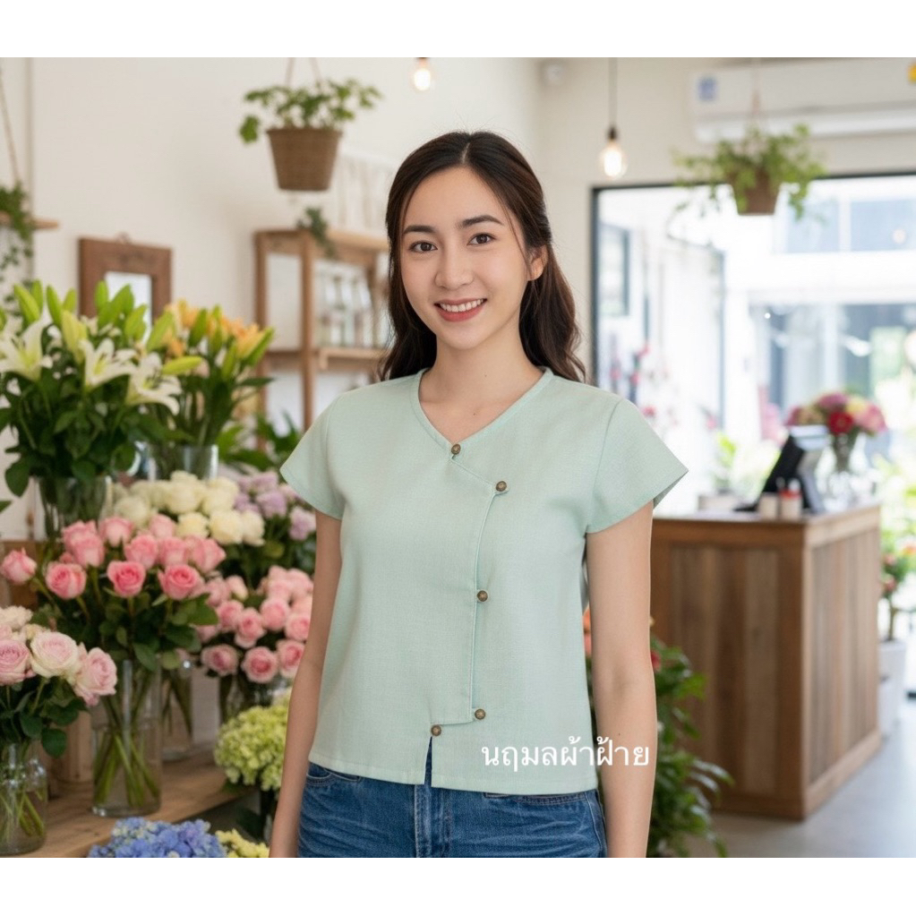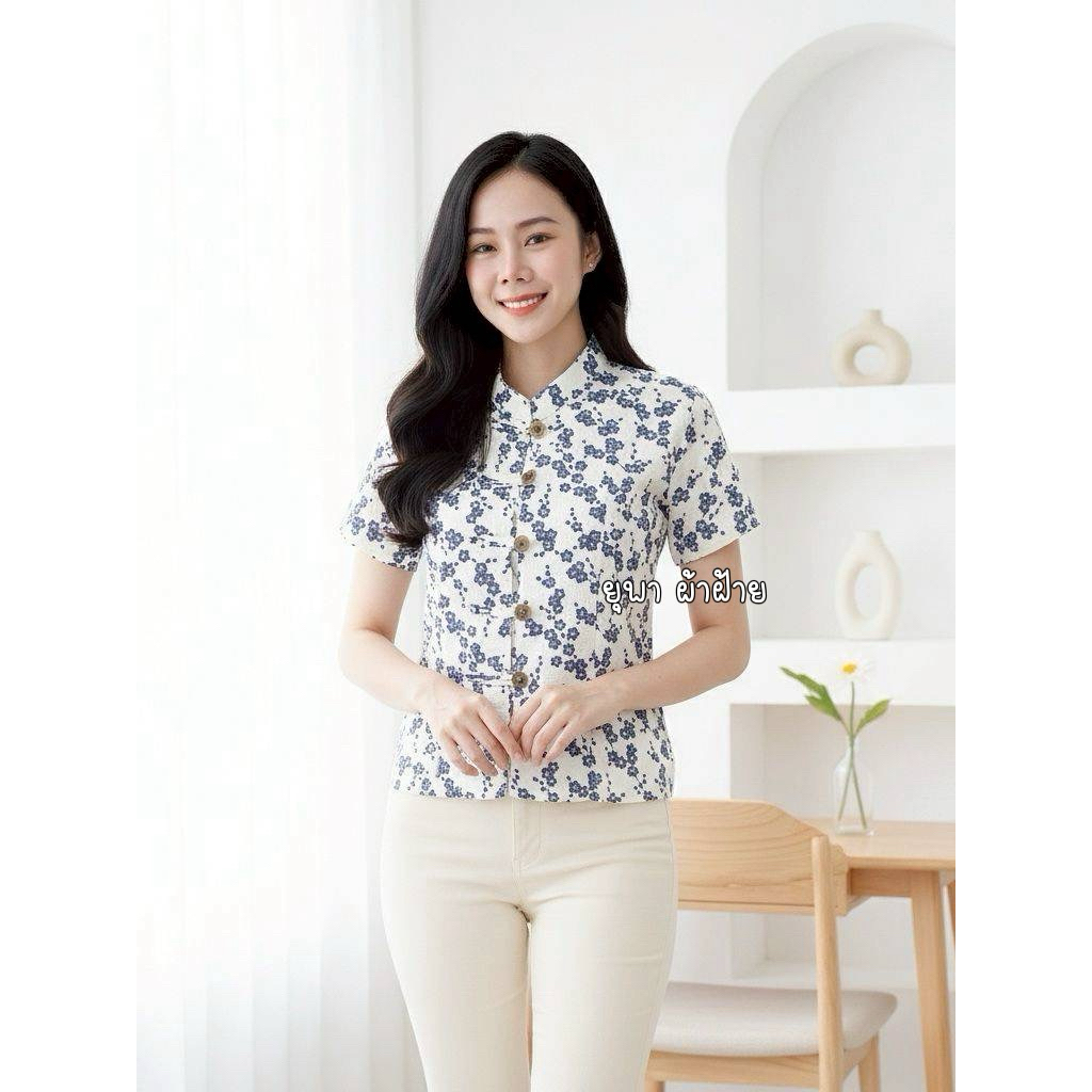 เสื้อผ้าฝ้าย เสื้อพื้นเมืองผู้หญิง ชุดพื้นเมือง เสื้อผ้าเมือง ผ้าไทย ผ้าฝ้าย ทรงกะเหรี่ยง