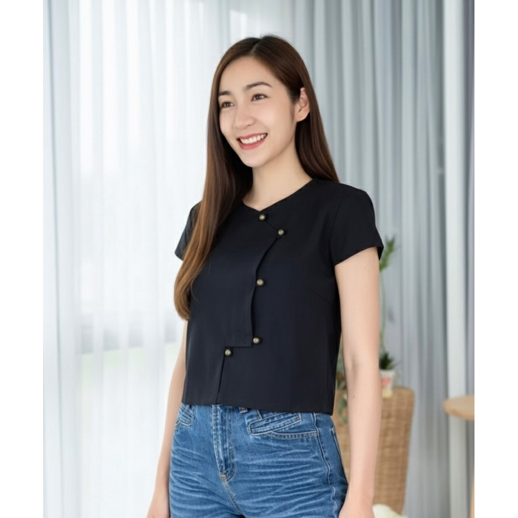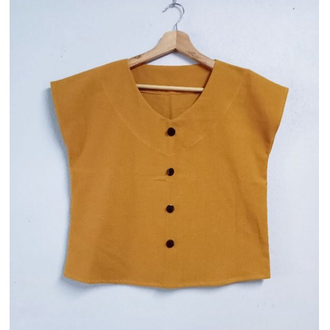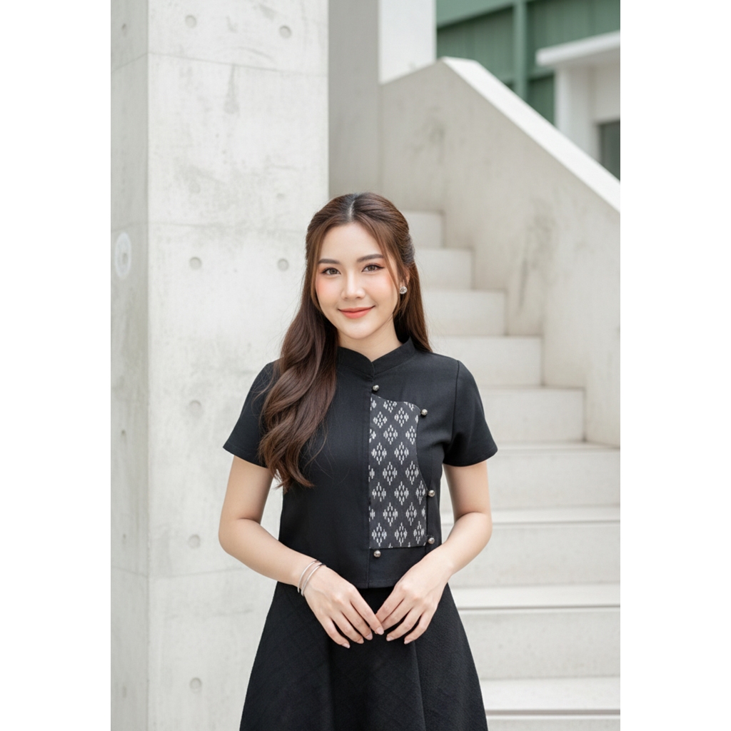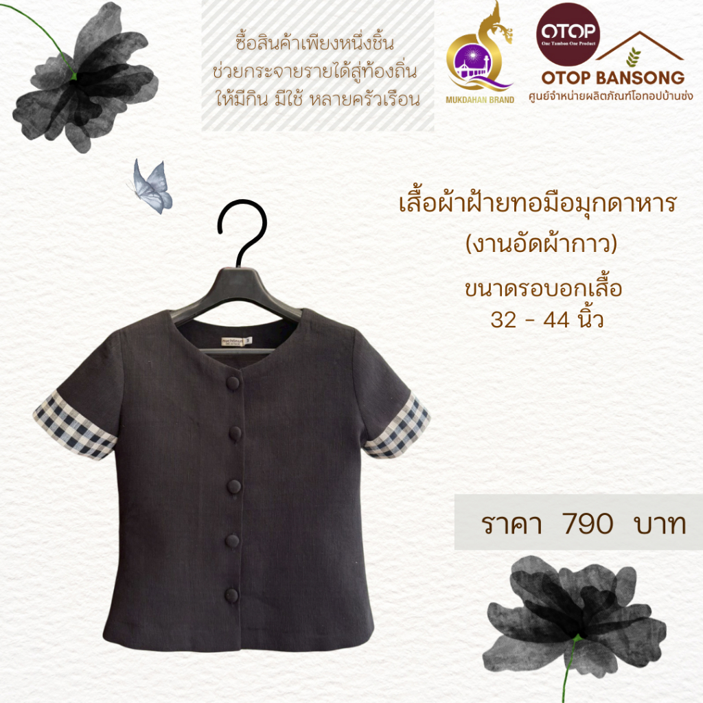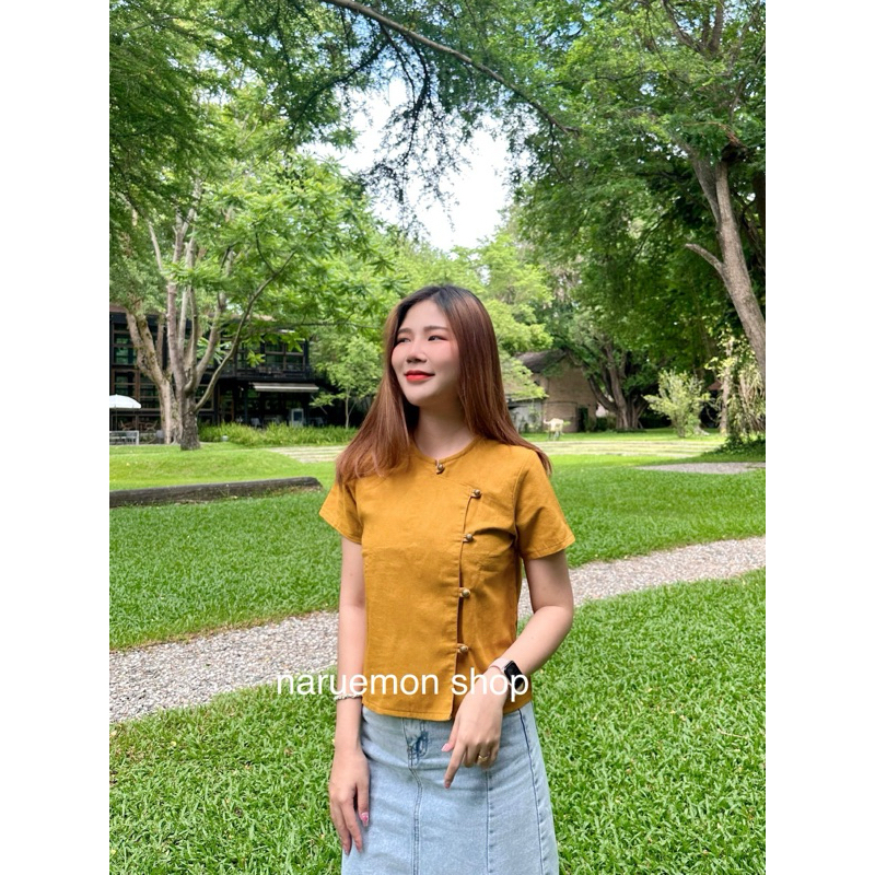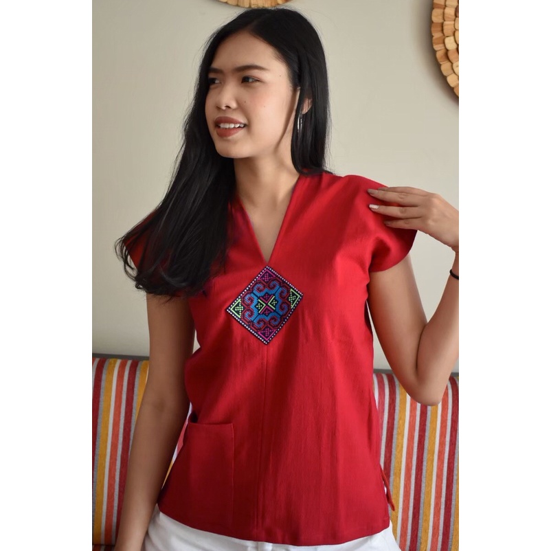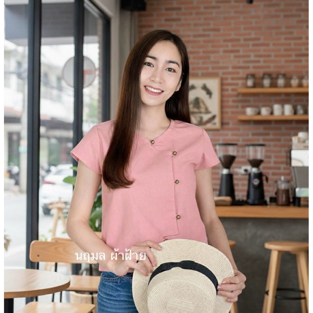 เสื้อผ้าฝ้ายพื้นเมืองผู้หญืงแบบคอกลมป้าย