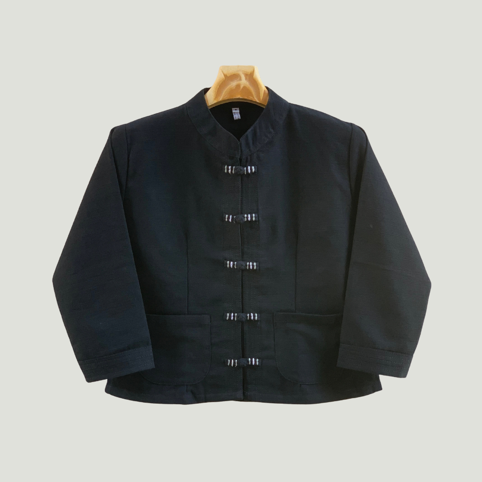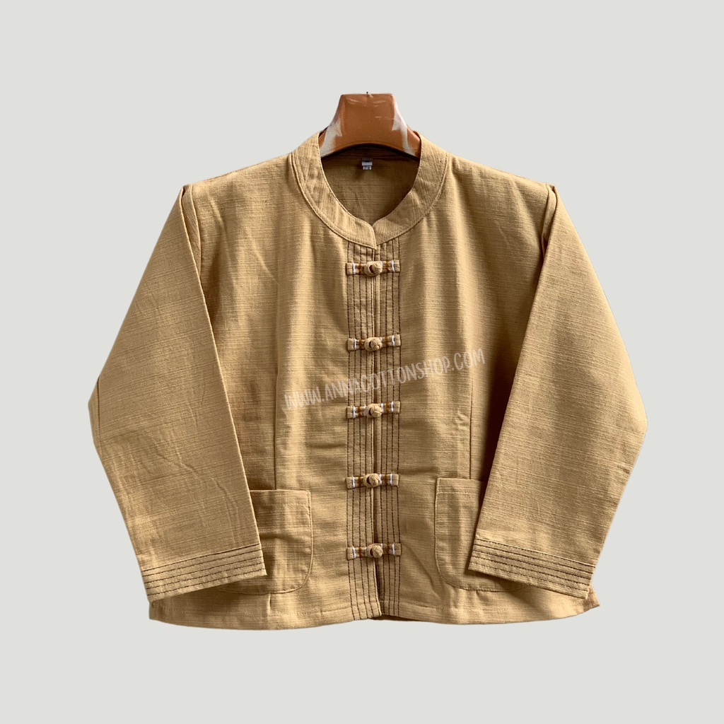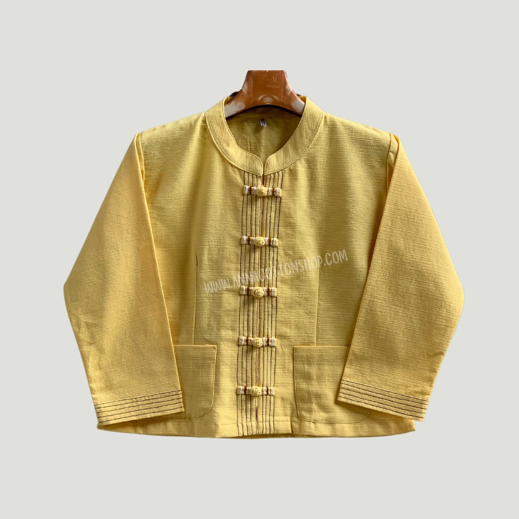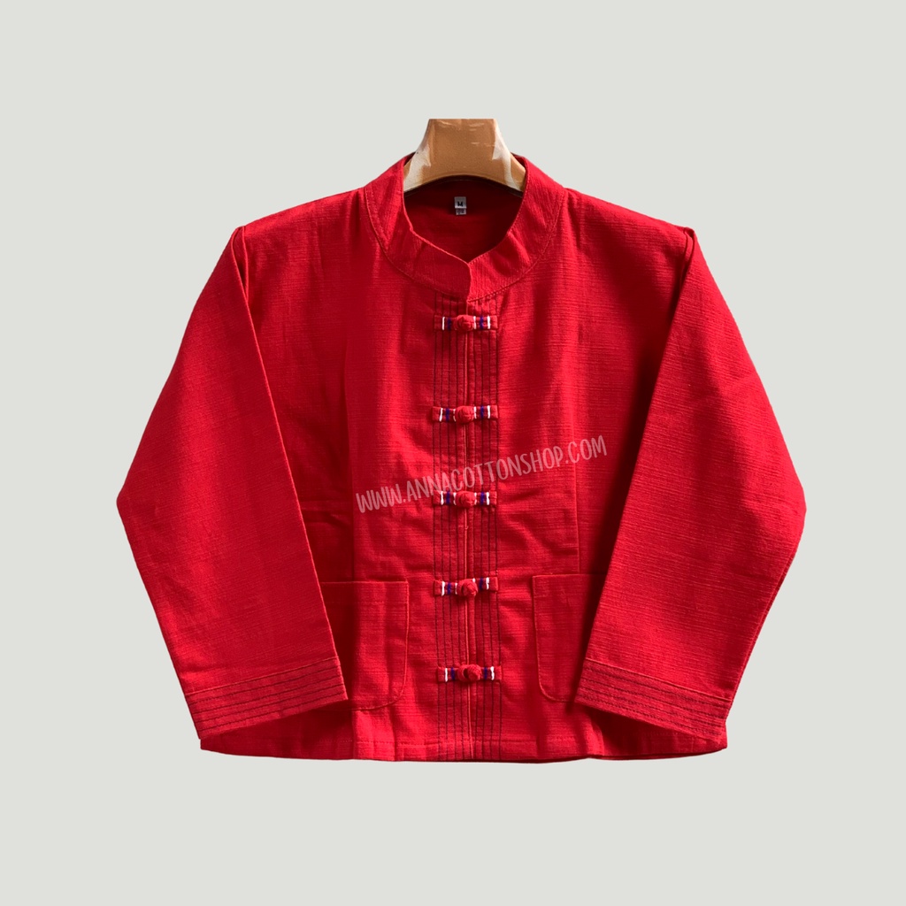 เสื้อผ้าฝ้ายคอจีนป้ายหน้าแต่งลายมัดหมี่
