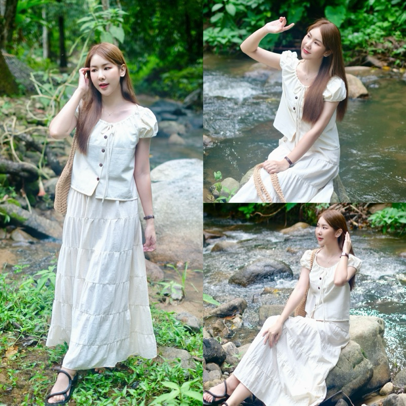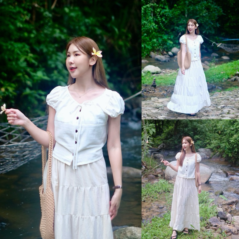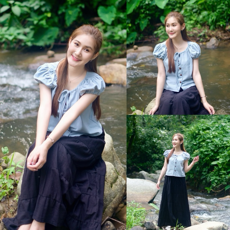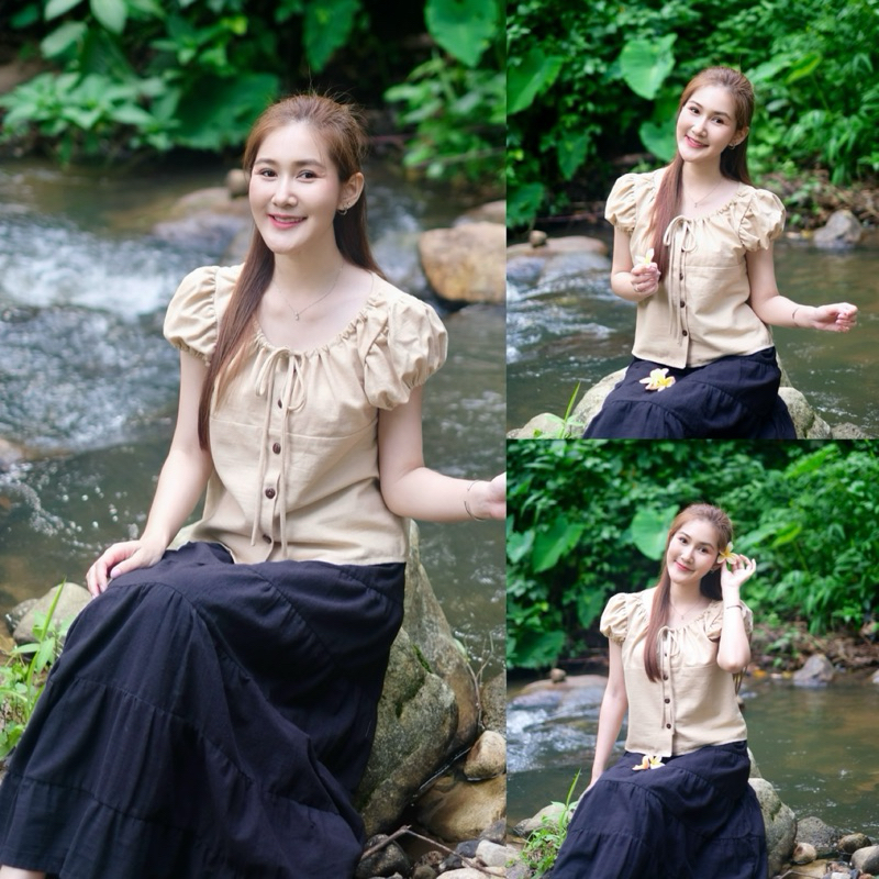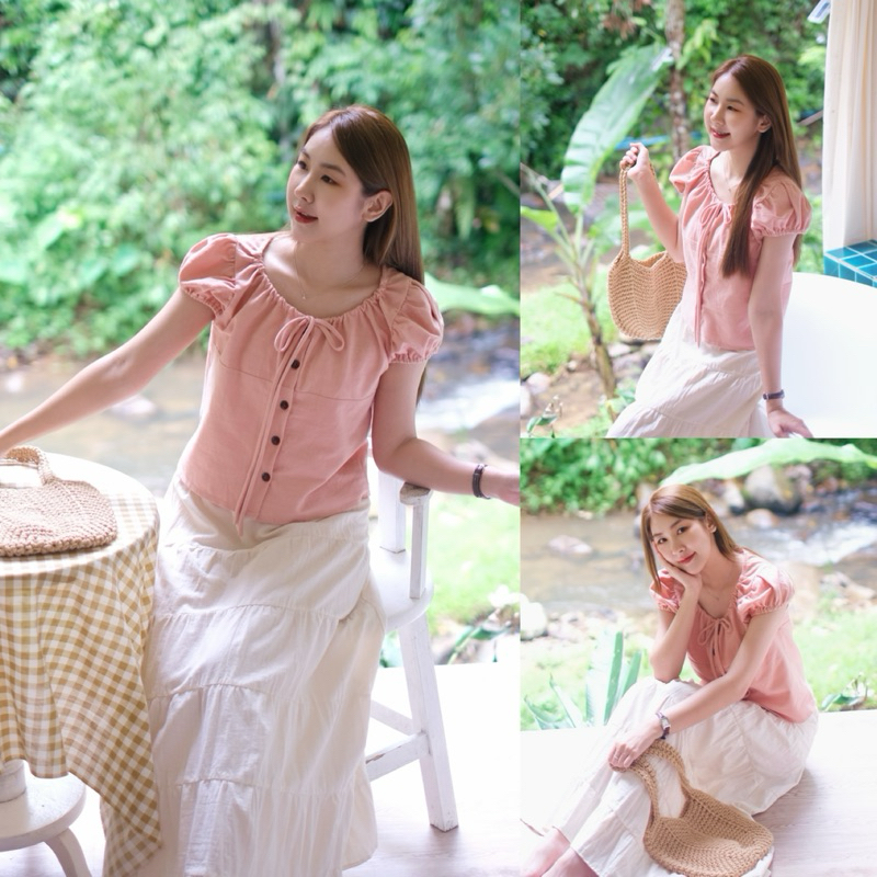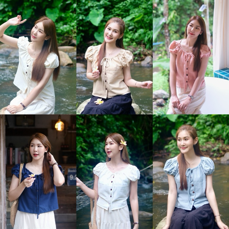 เสื้อผ้าฝ้าย รุ่นเพียงออ แขนตุ๊กตาผูกโบว์