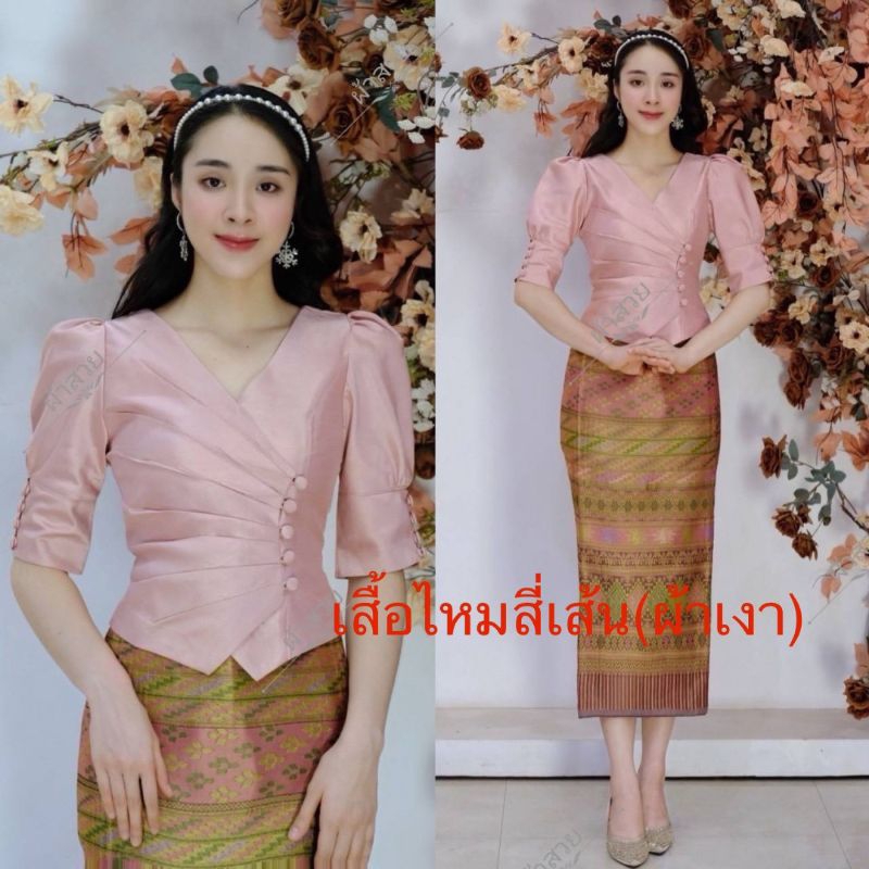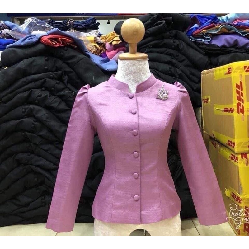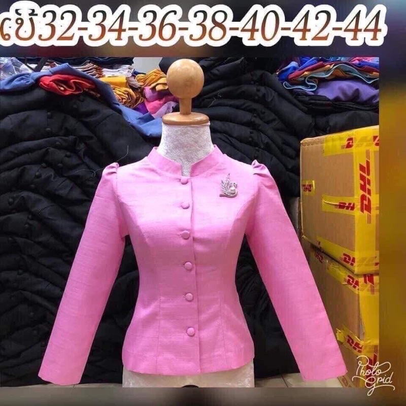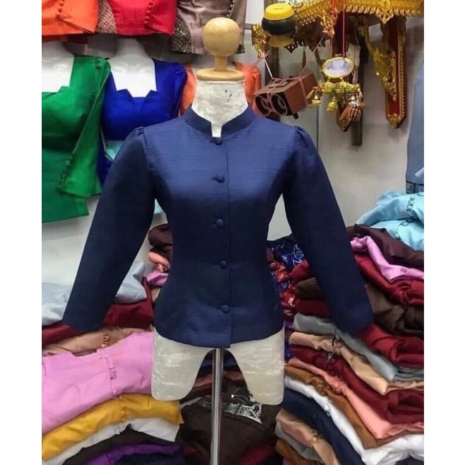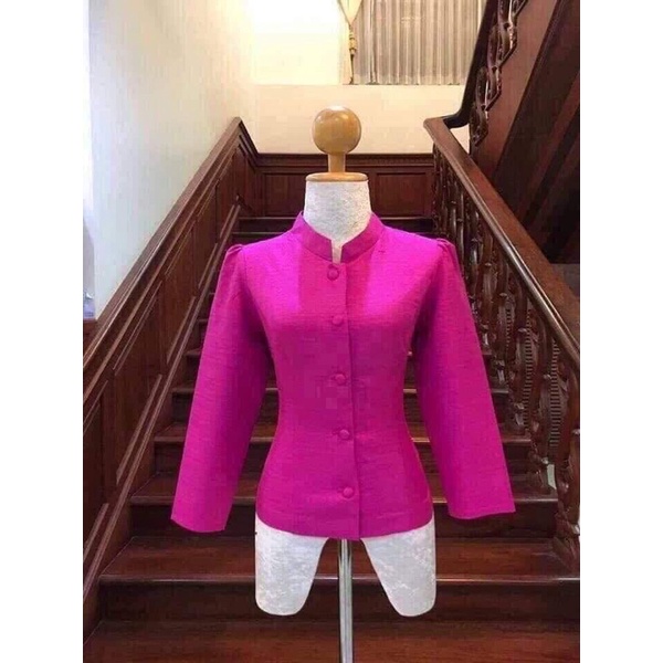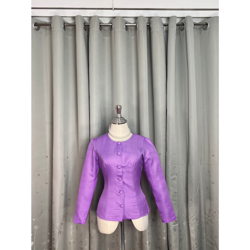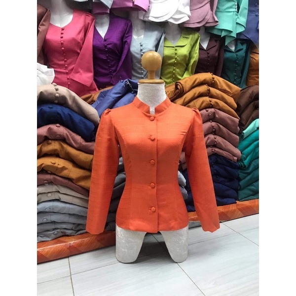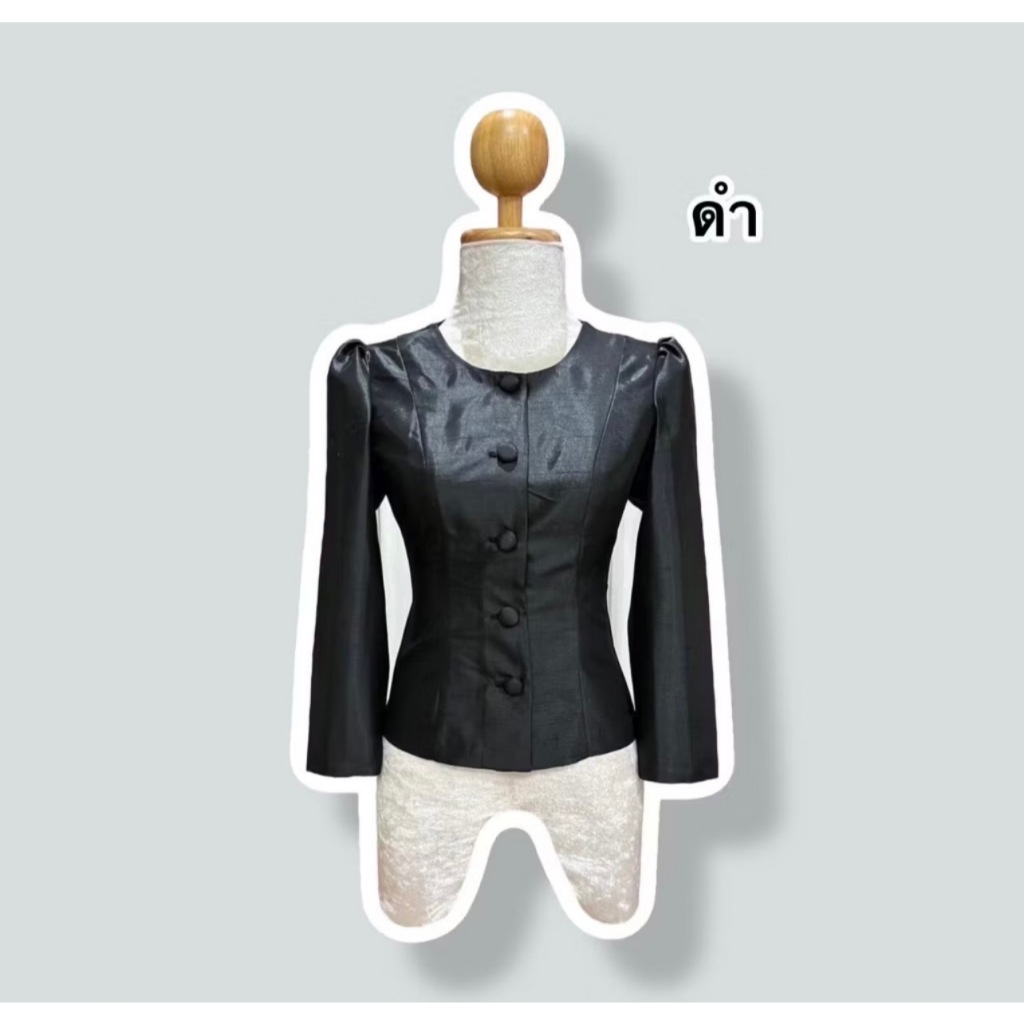 เสื้อไหมลาว ทรงไทยเรือนต้น คอกลม แขนยาว อัดผ้ากาวดันทรงทั้งตัว อก 34-44 มีสีให้เลือกเยอะ