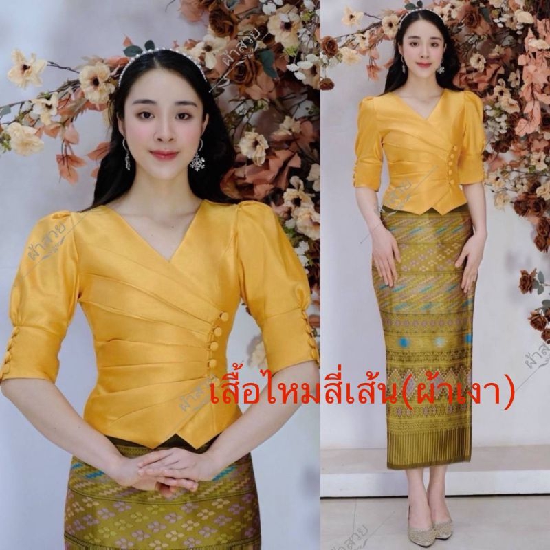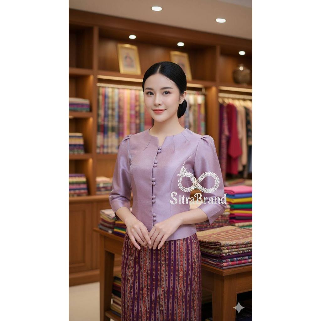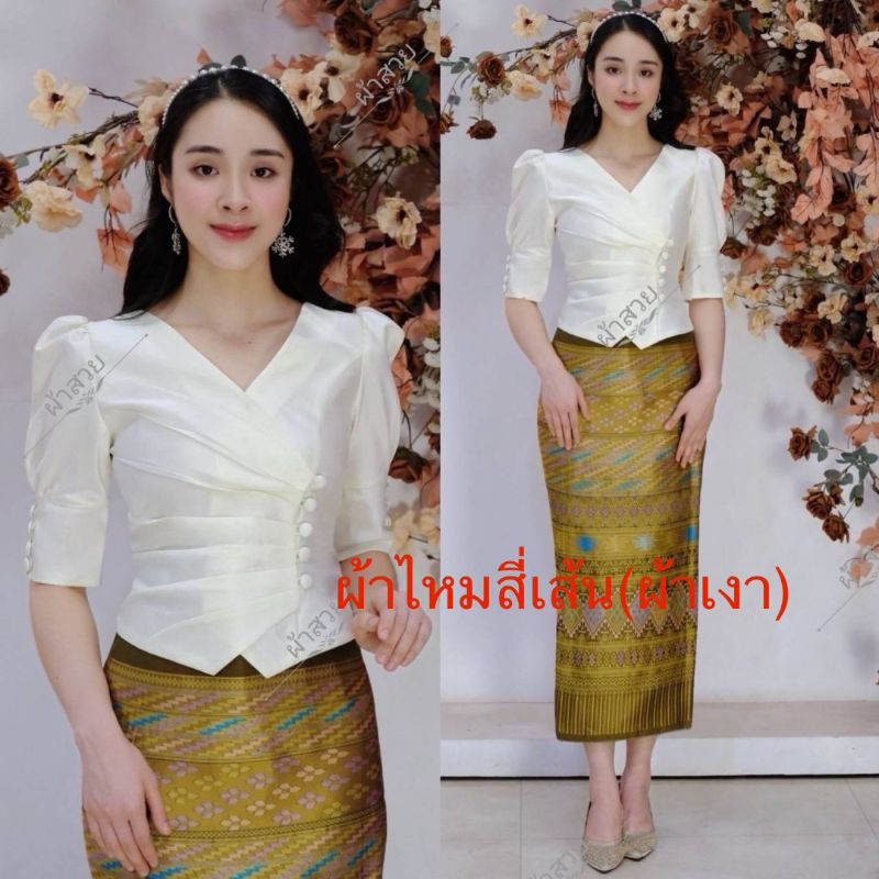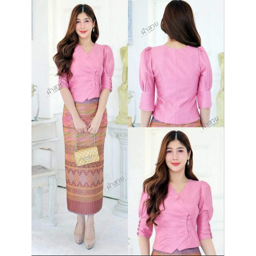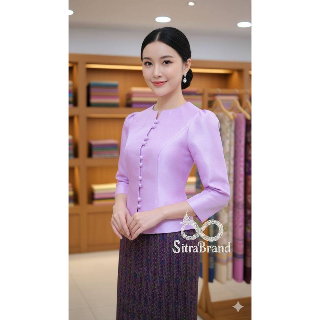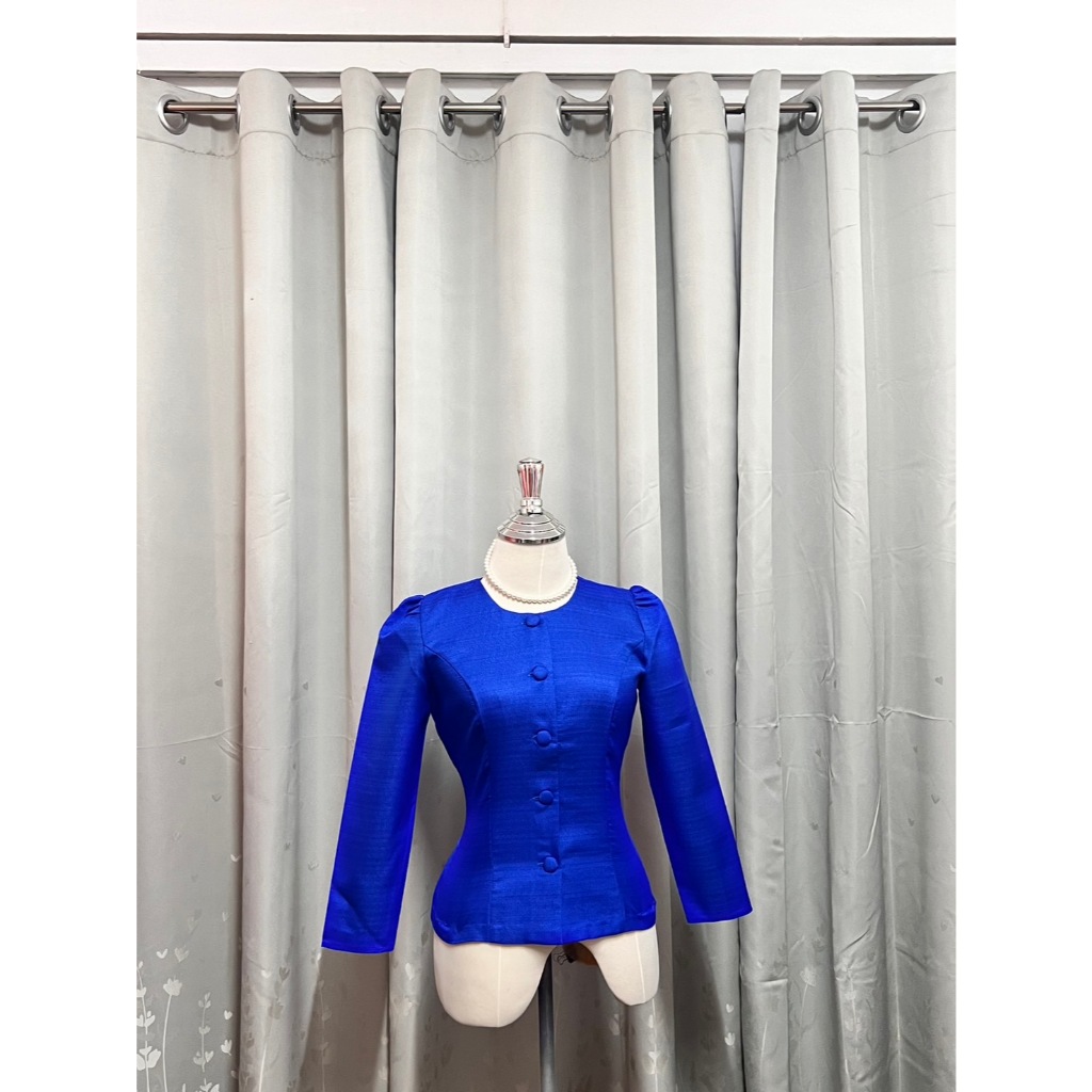 เสื้อไหมลาว ทรงไทยเรือนต้น คอกลม แขนยาว อัดผ้ากาวดันทรงทั้งตัว อก 34-44 มีสีให้เลือกเยอะ