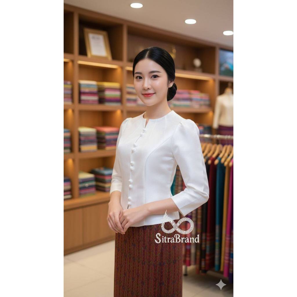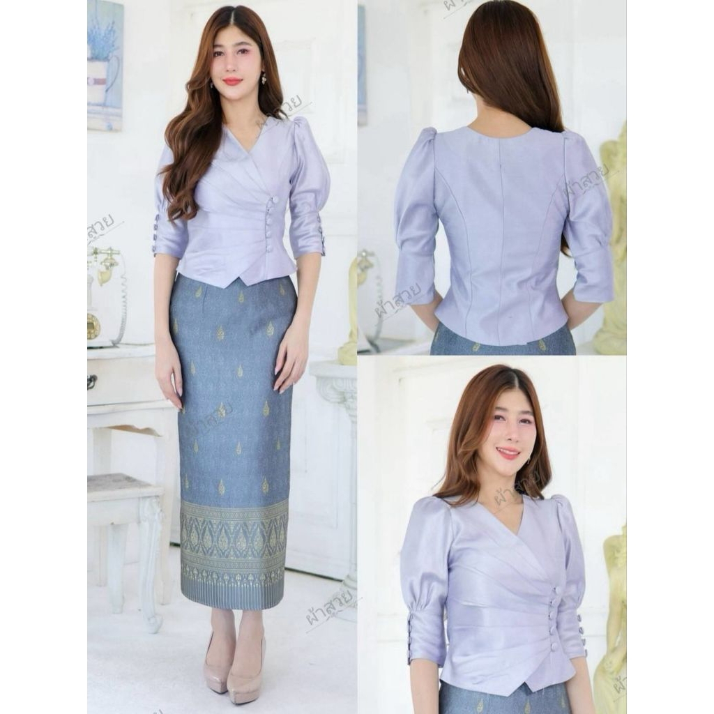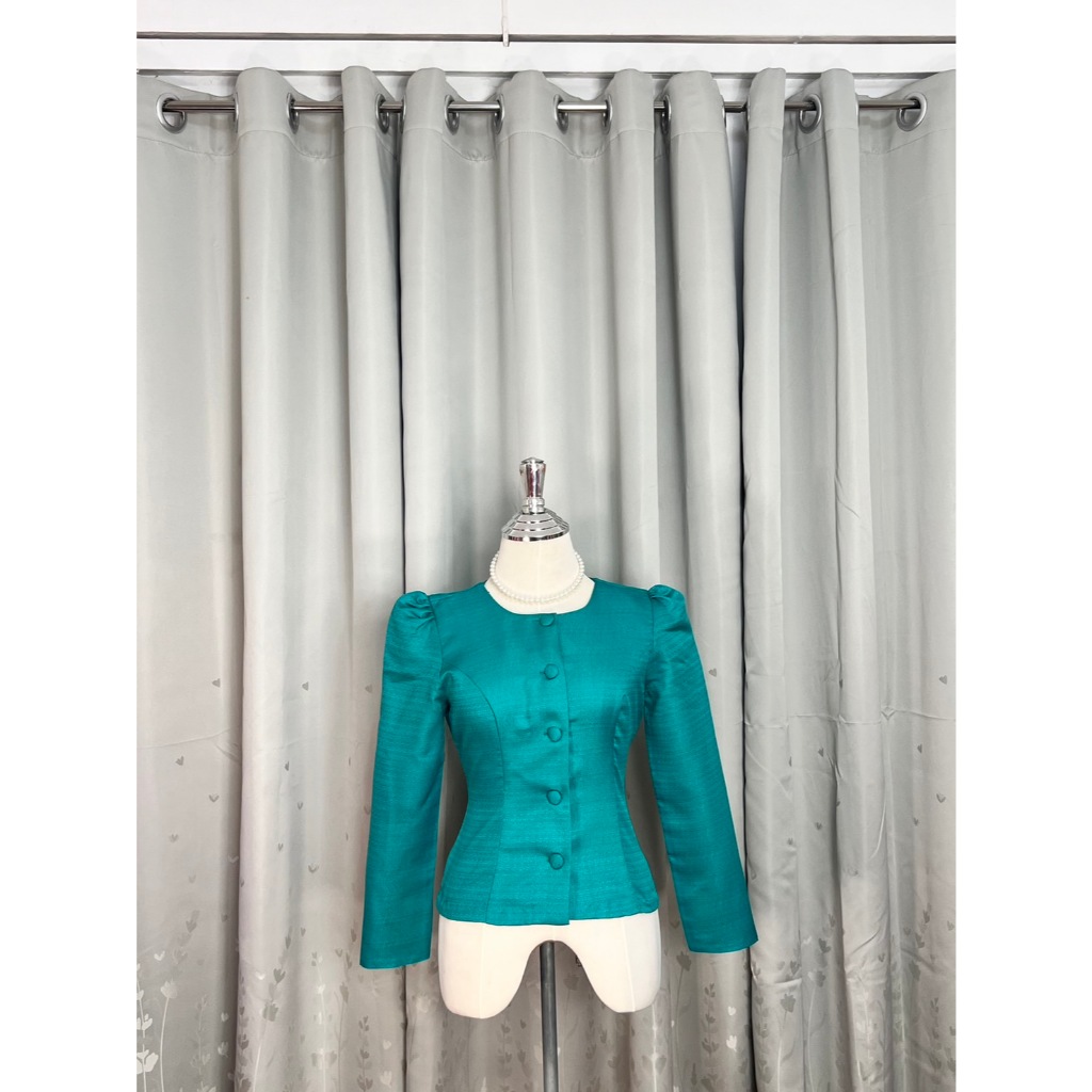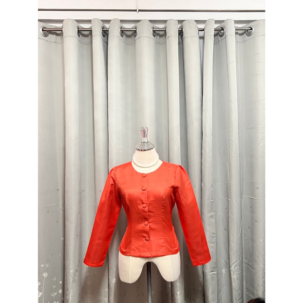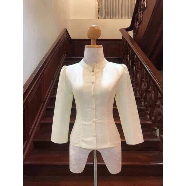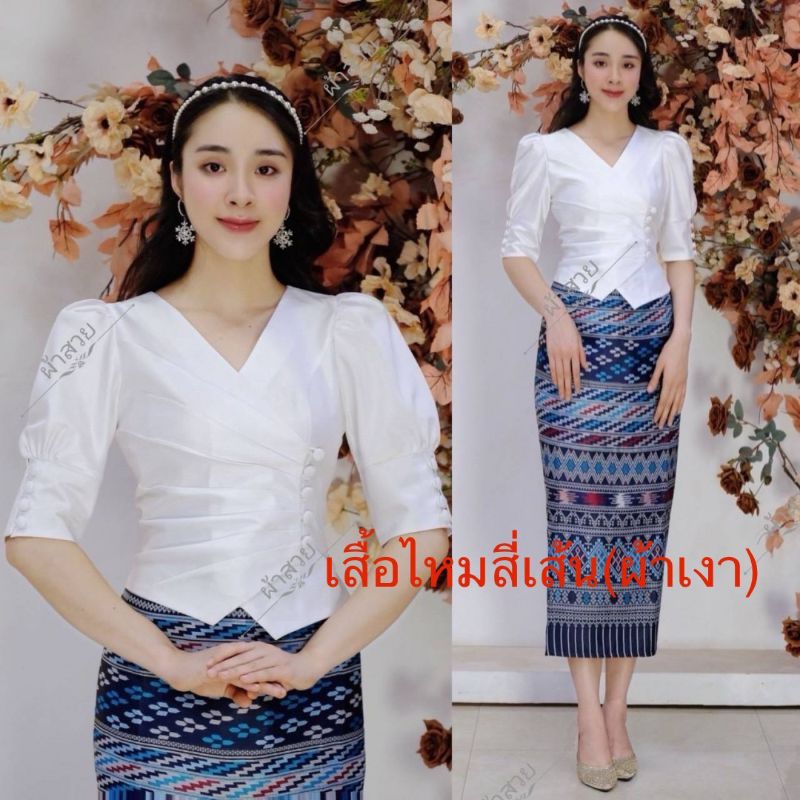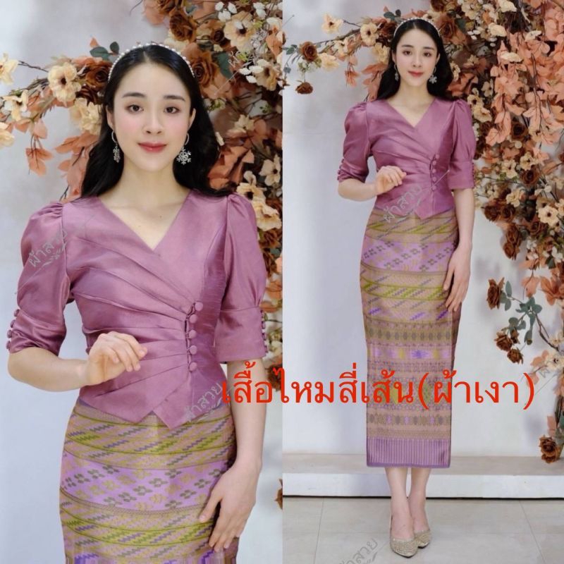 เสื้อไหมลาว ทรงไทยเรือนต้น คอกลม แขนยาว อัดผ้ากาวดันทรงทั้งตัว อก 34-44 มีสีให้เลือกเยอะ