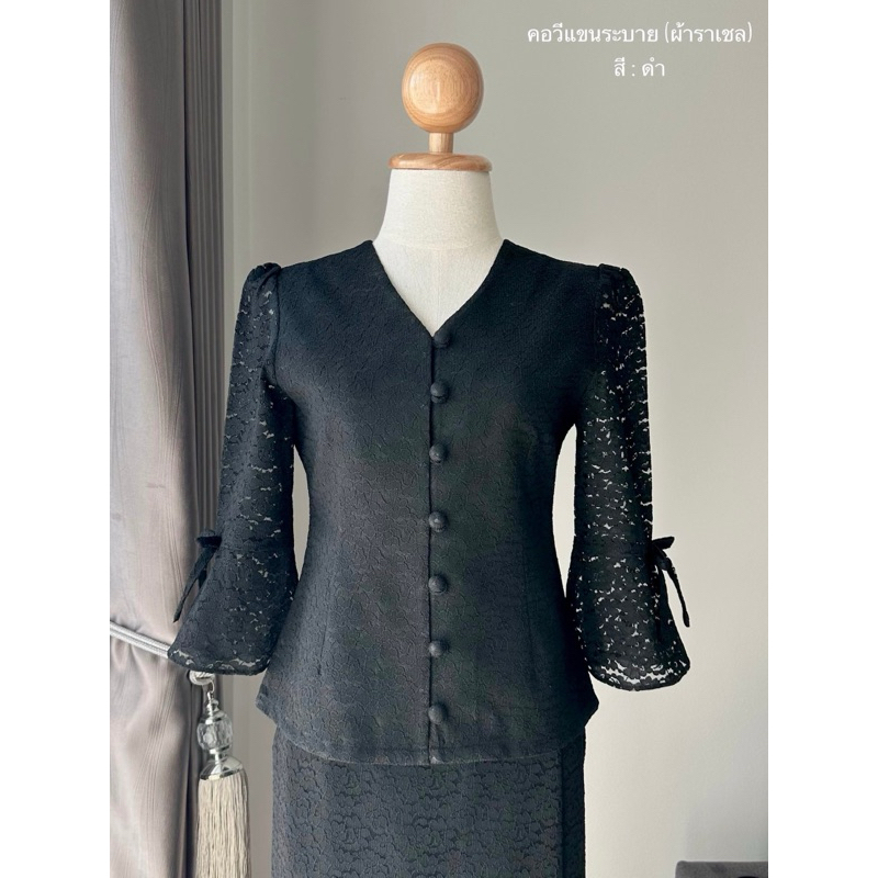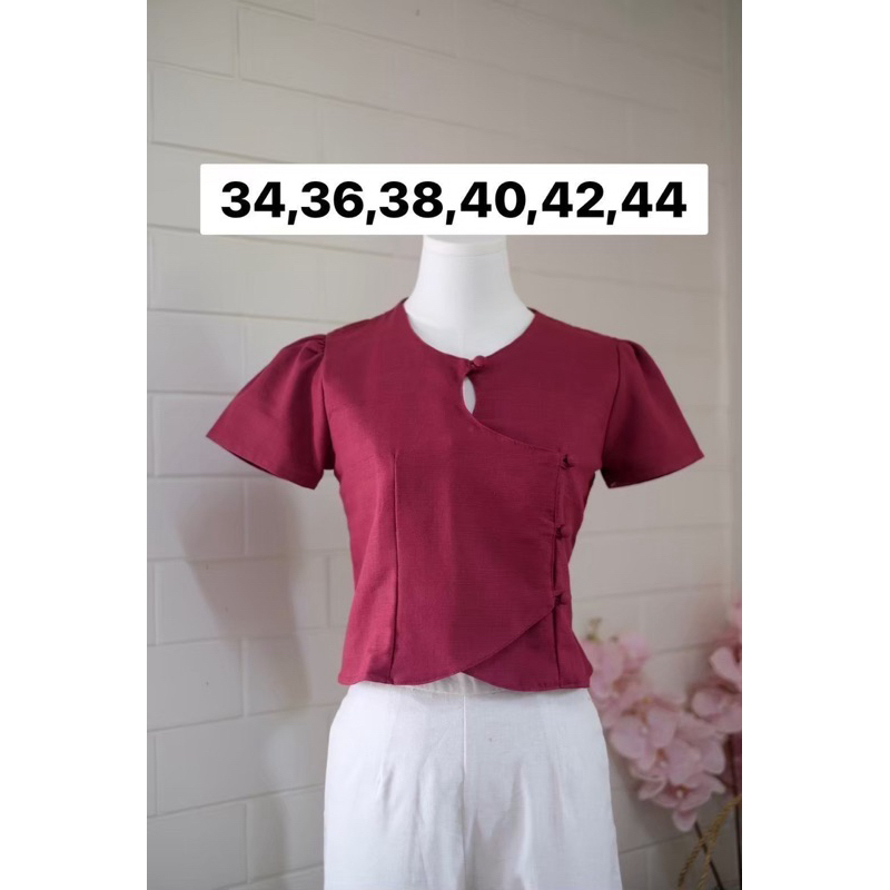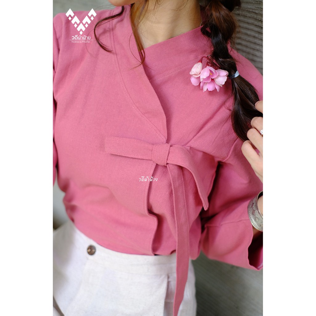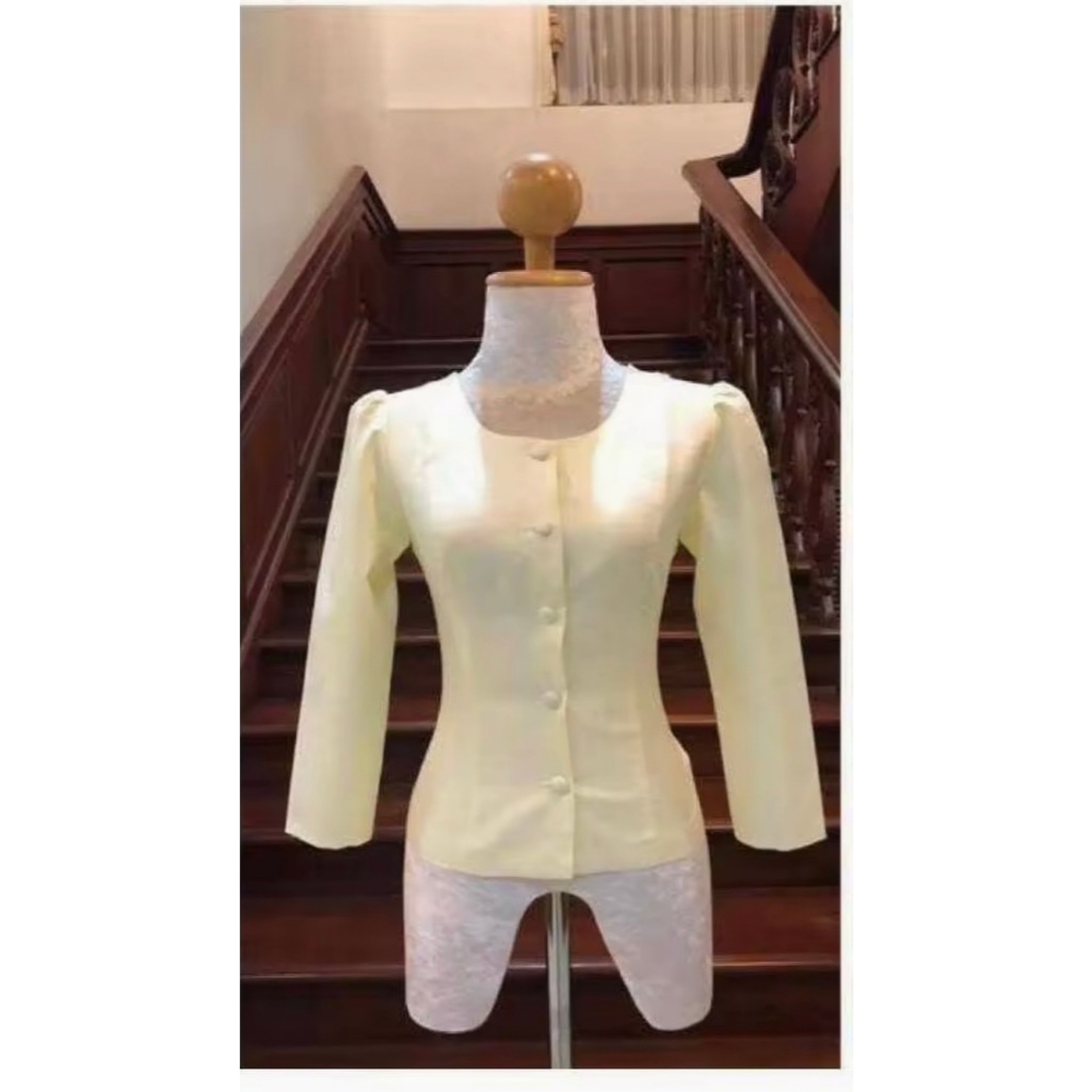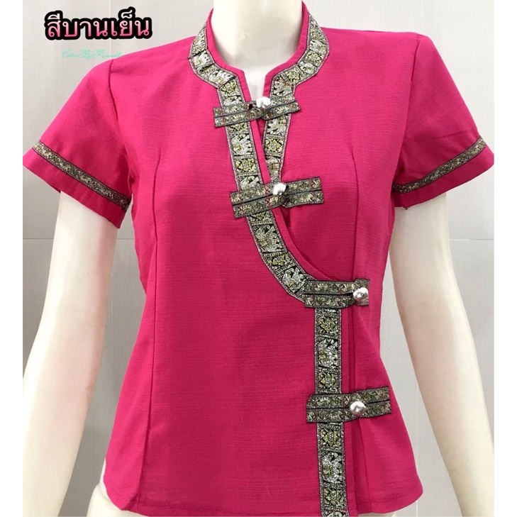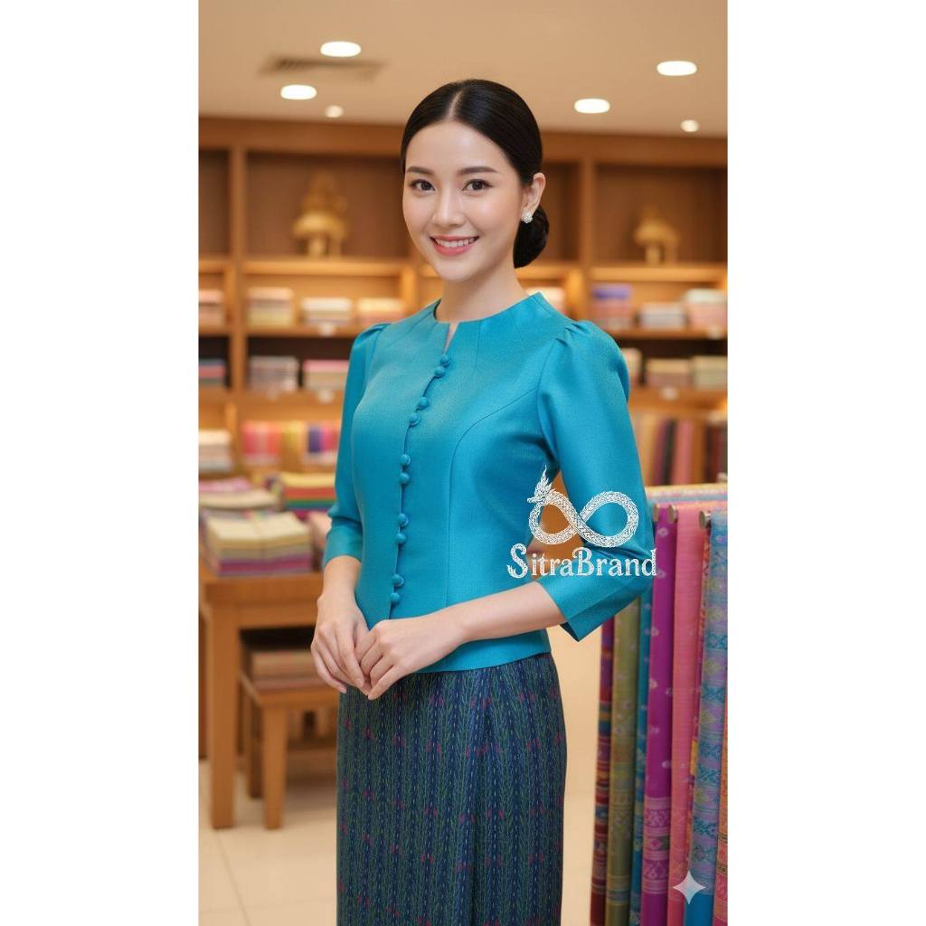 เสื้อไหมลาว ทรงไทยเรือนต้น คอกลม แขนยาว อัดผ้ากาวดันทรงทั้งตัว อก 34-44 มีสีให้เลือกเยอะ