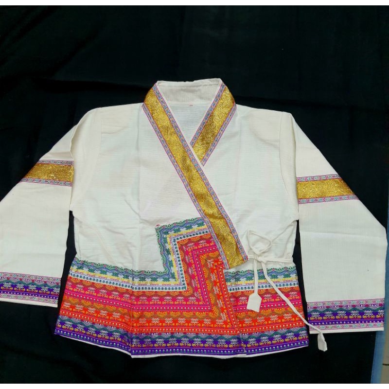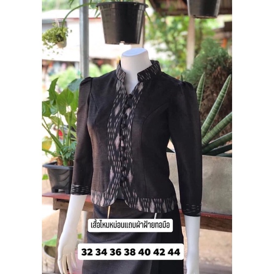 เสื้อไหมหม่อนแต่แถบผ้าฝ้ายทอมืองานสวยเย็บละเอียดมากค่ะอัดผ้ากาวทั้งตัว