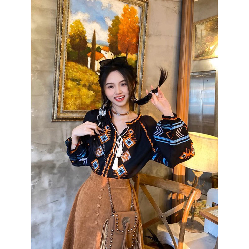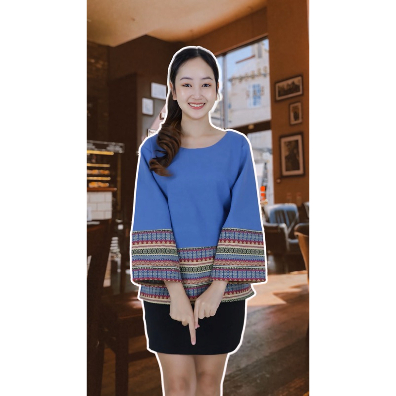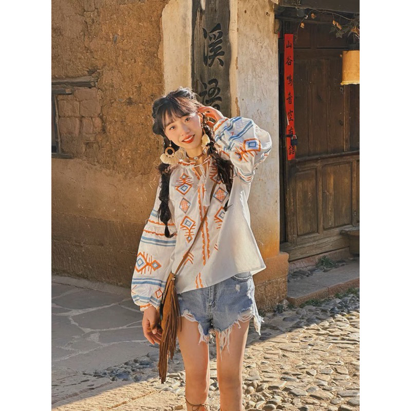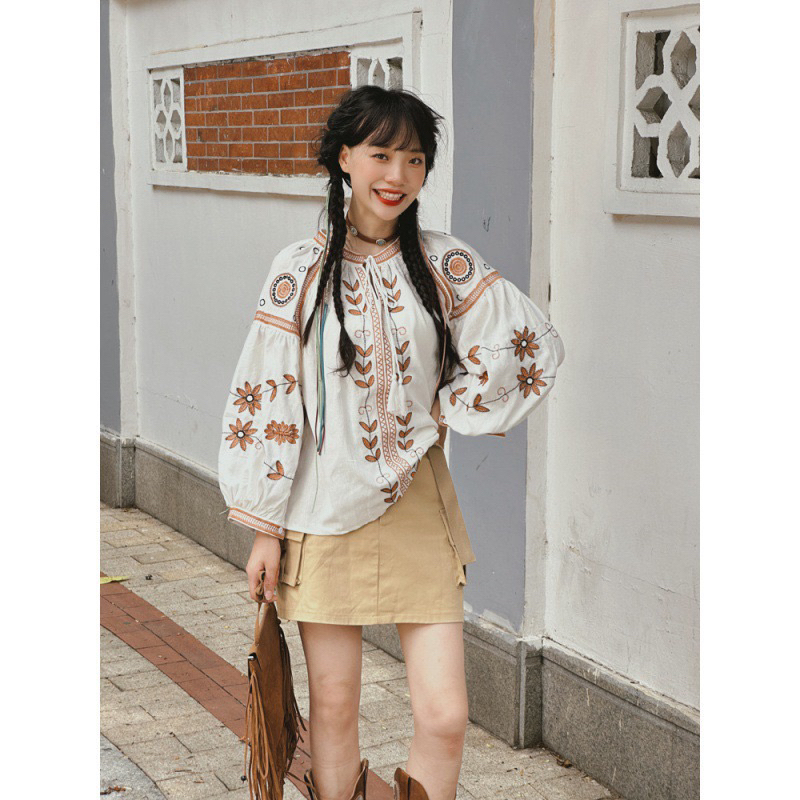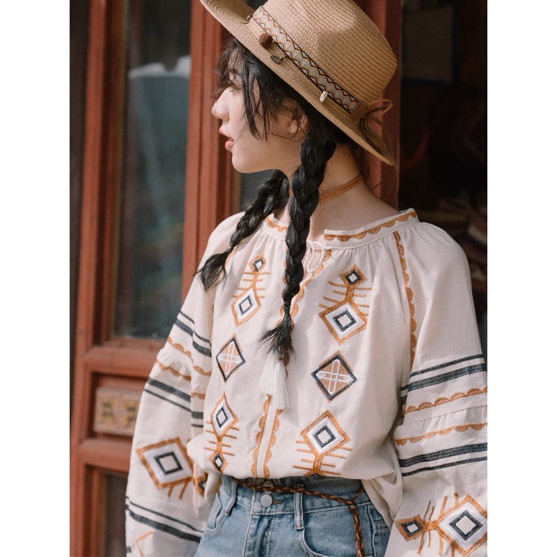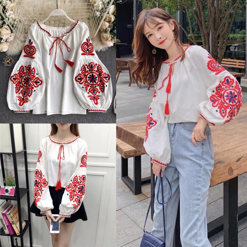 เสื้อโบฮีเมียนผู้หญิง เสื้อปักลายแขนทรงบอลลูน