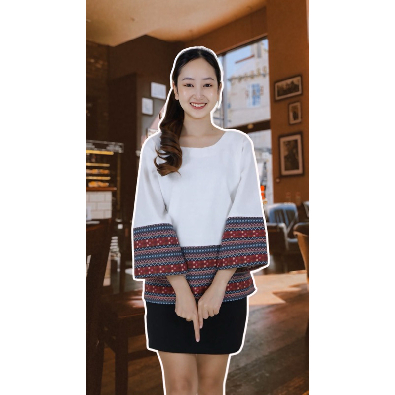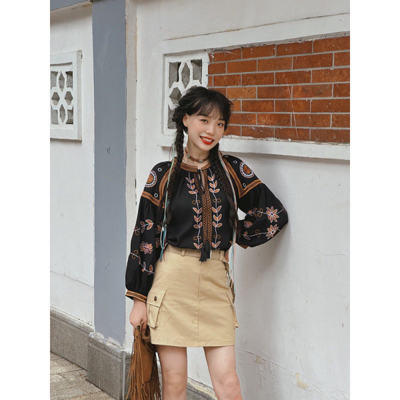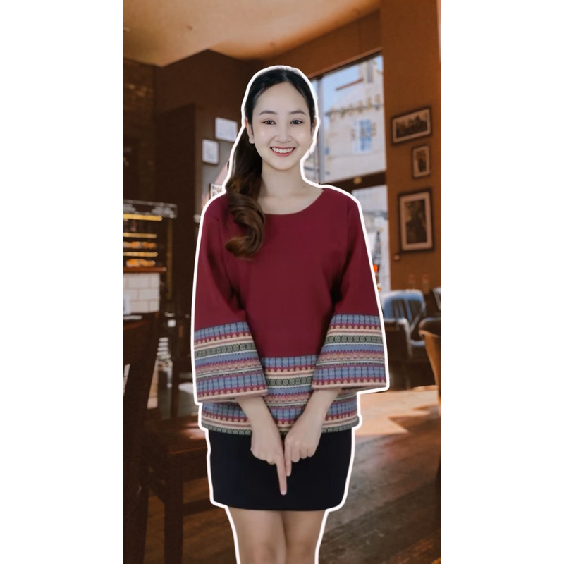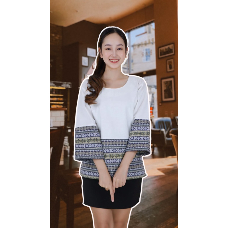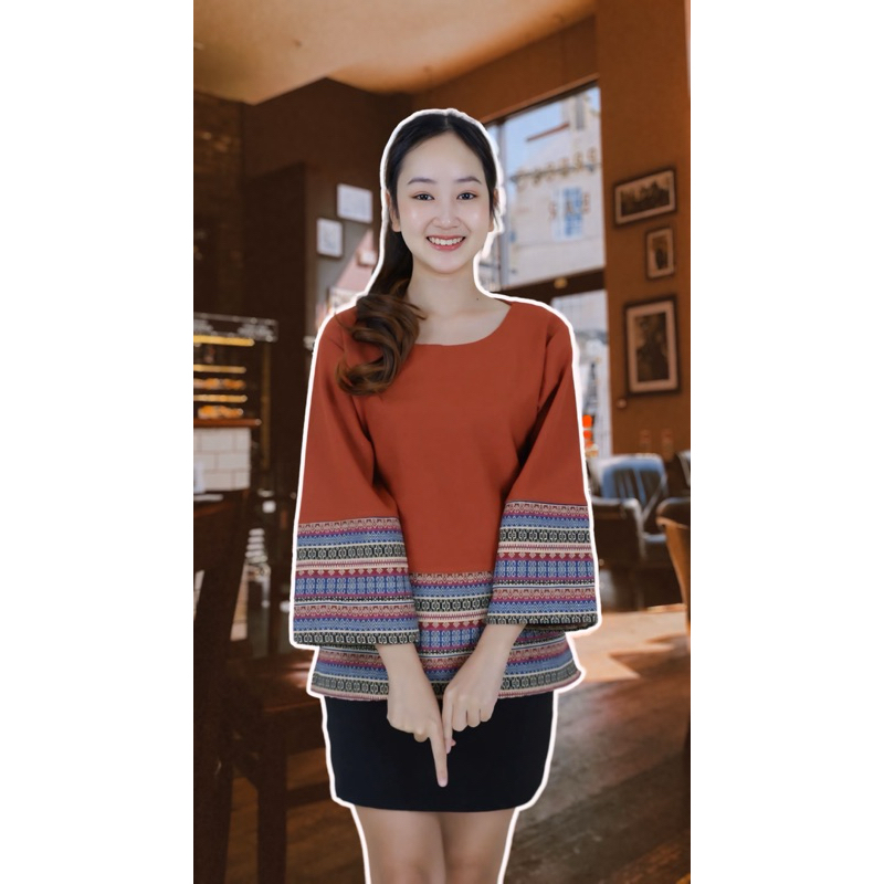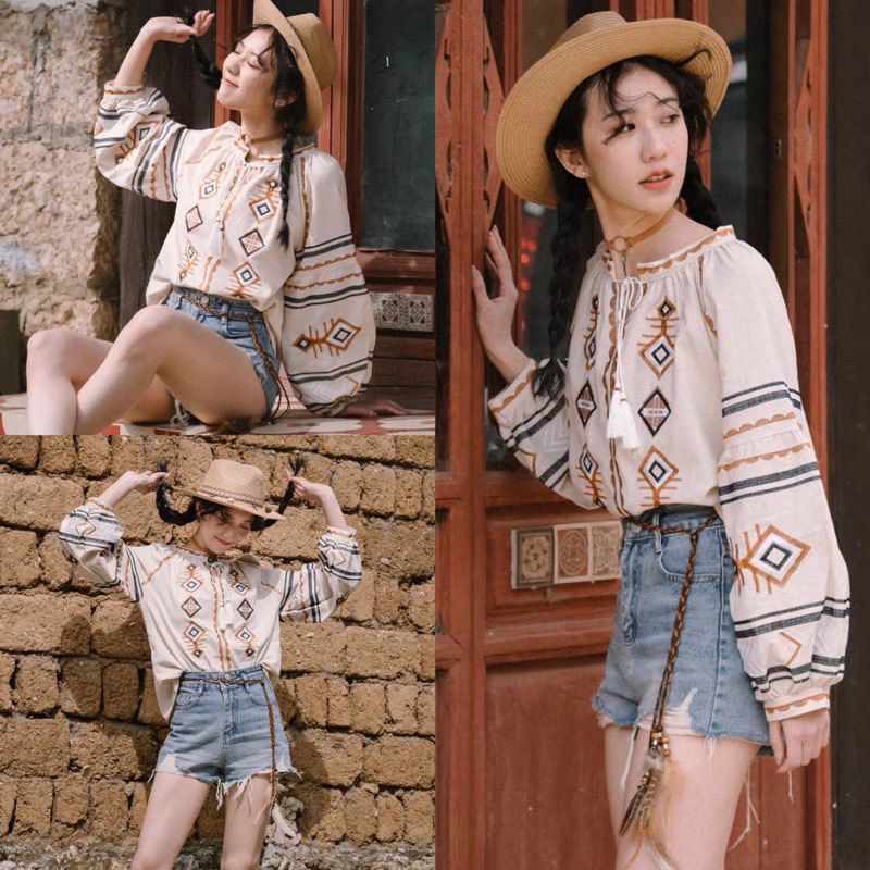 เสื้อโบฮีเมียนผู้หญิง เสื้อปักลายแขนทรงบอลลูน