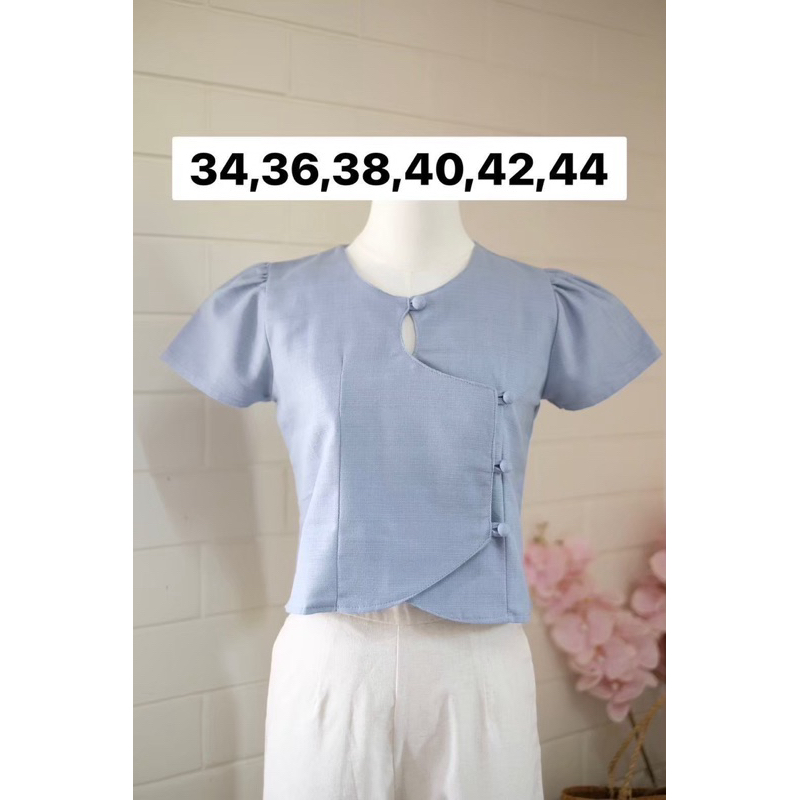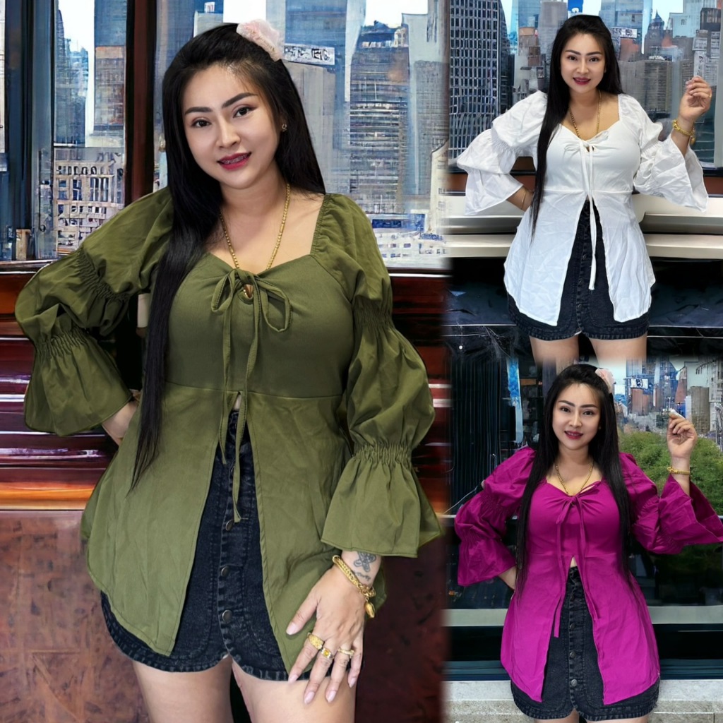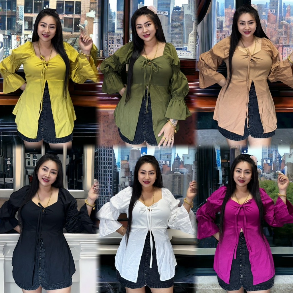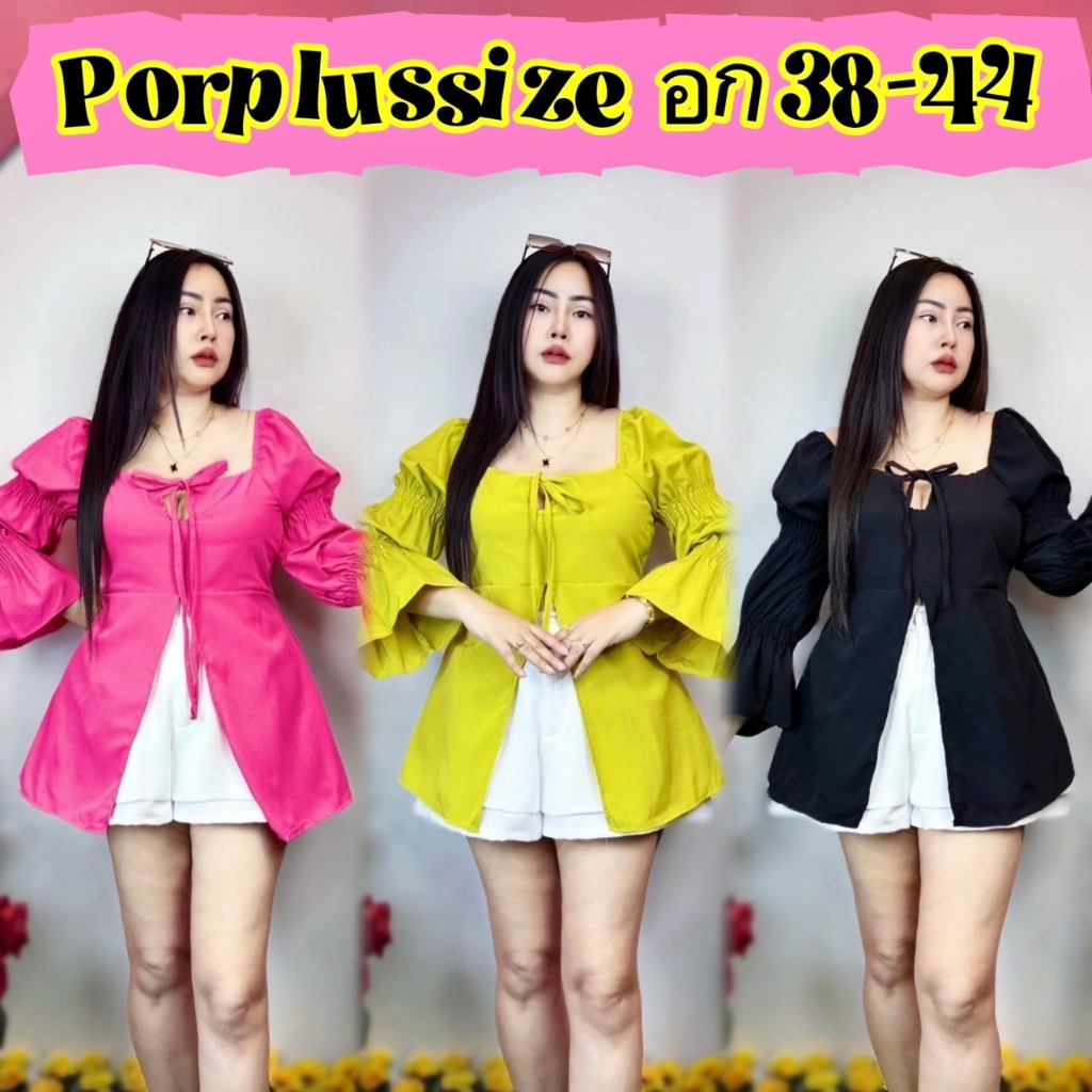 เสื้อสาวอวบ**ร้านปอปังแฟชั่นอก38-44ยาว24 ผ้าคลัชเลิศหรู **รุ่น กามิน ผูกโบว์**