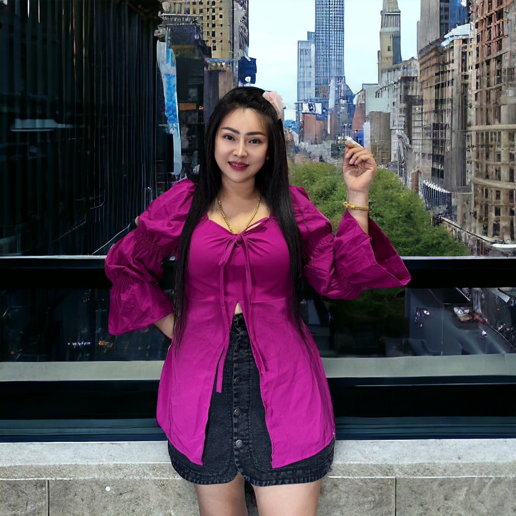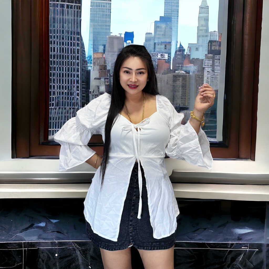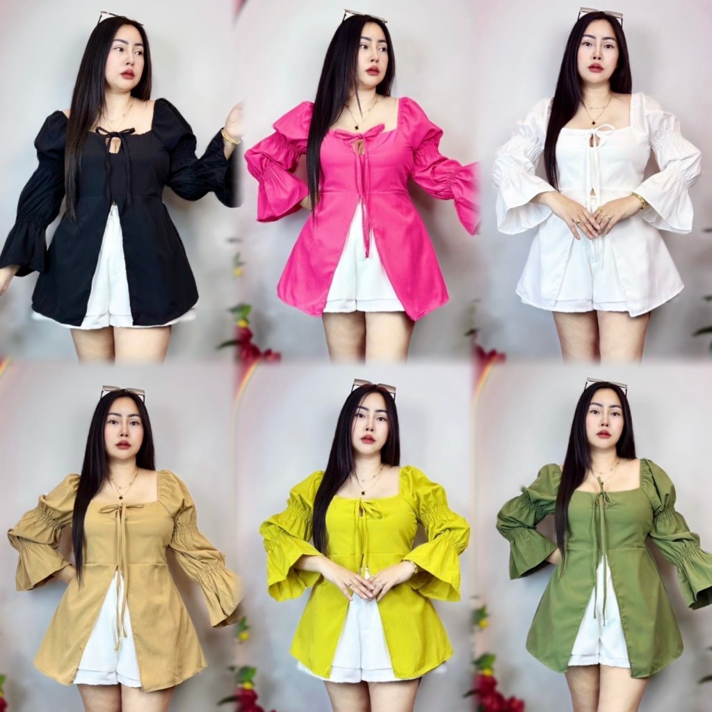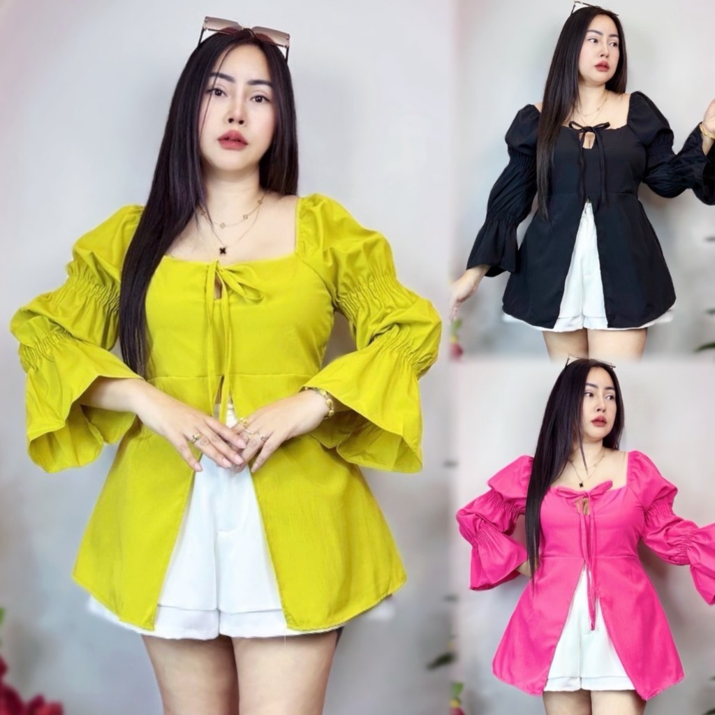 เสื้อสาวอวบ**ร้านปอปังแฟชั่นอก38-44ยาว24 ผ้าคลัชเลิศหรู **รุ่น กามิน ผูกโบว์**