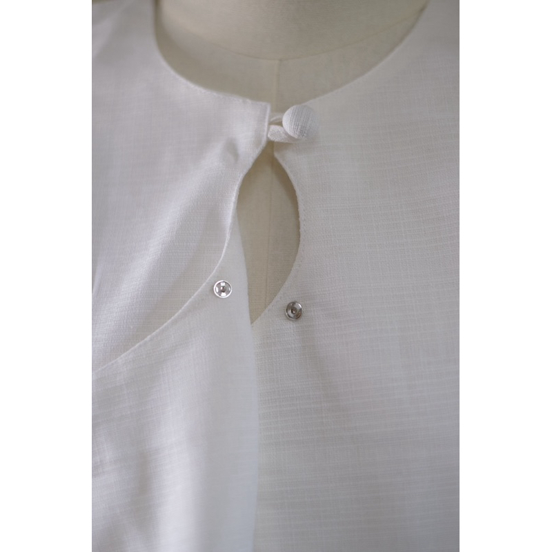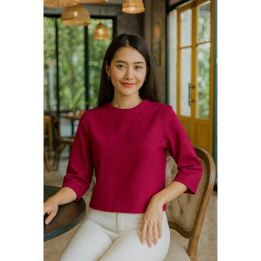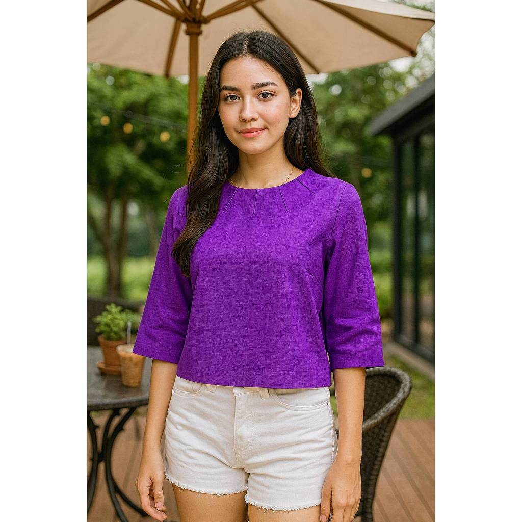 เสื้อใยกัญชงคอกลมตีเกล็ดหน้า แขนสามส่วน