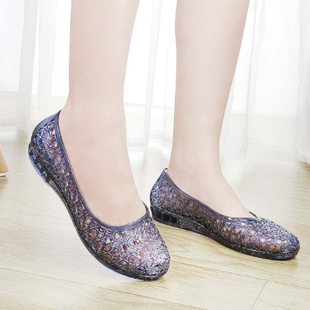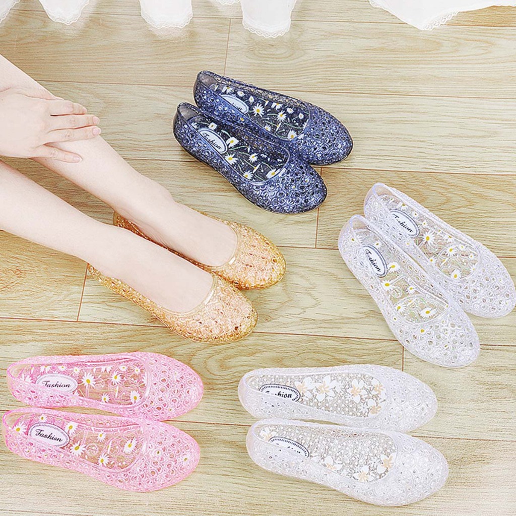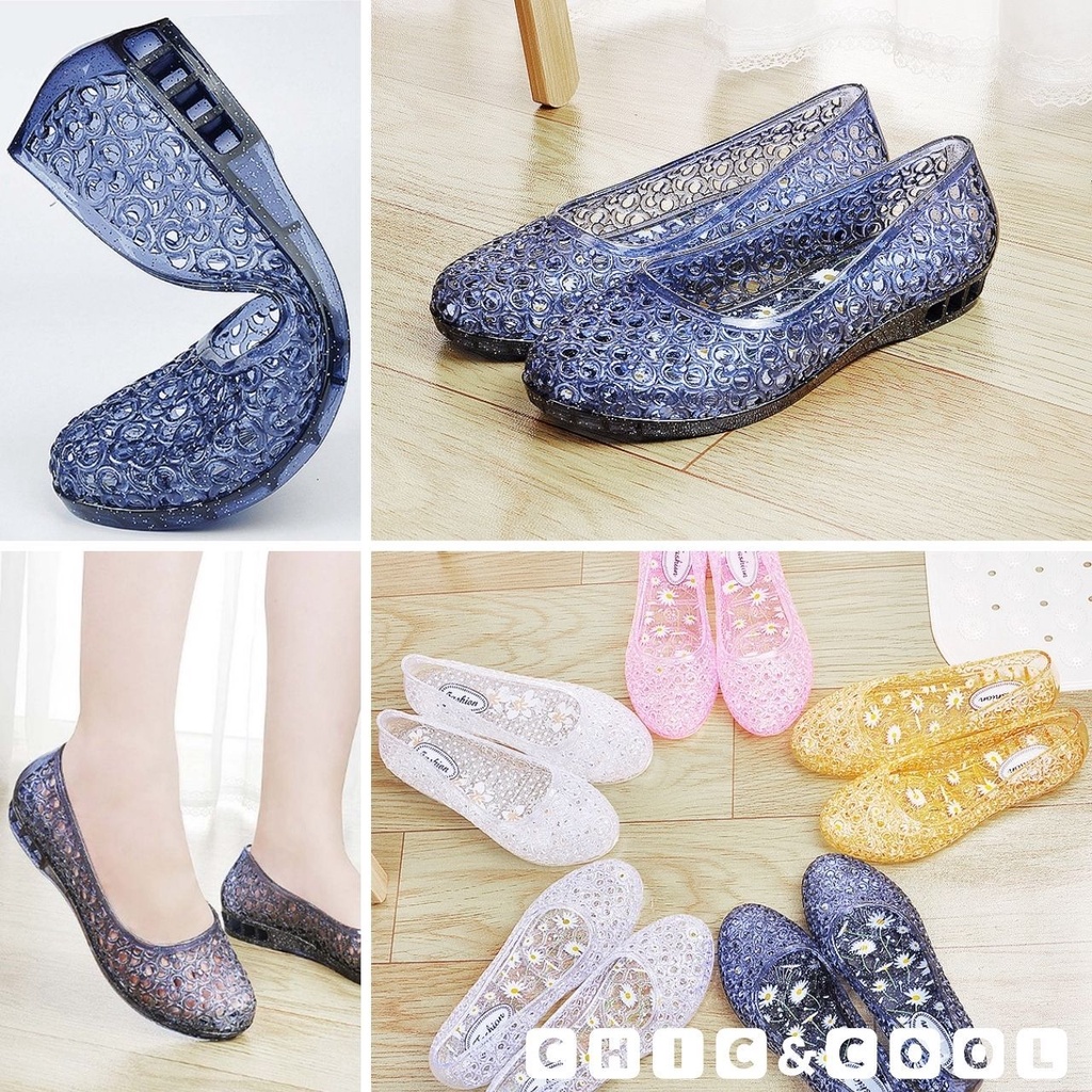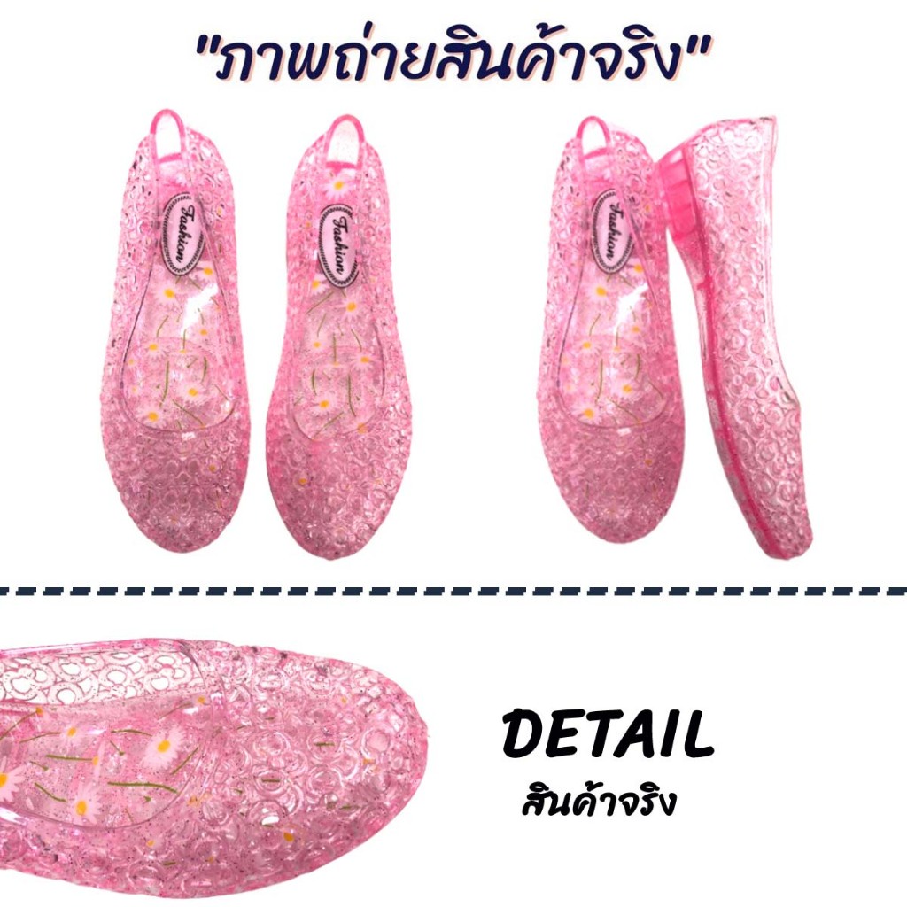 ????&???? รองเท้าคัชชูส้นเตี้ย ยางเจลลี่สีใส 3 สี แต่งฉลุ พื้นลายดอก เบอร์ 36-40 (173)