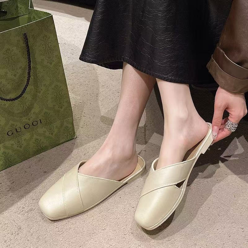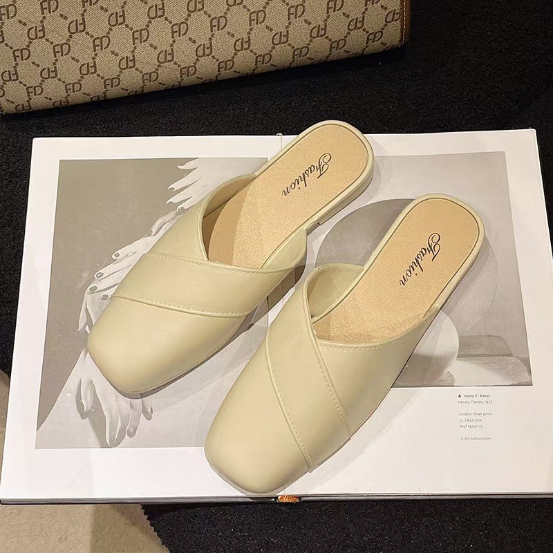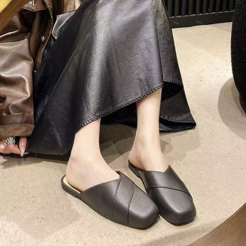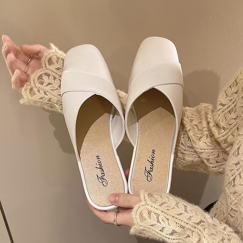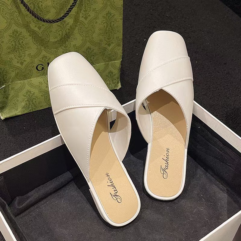 ?สปอตสินค้า?รองเท้าแตะสตรีสไตล์เกาหลีรองเท้าส้นแบนสีทึบลำลอง (ขนาด: 35-40)
