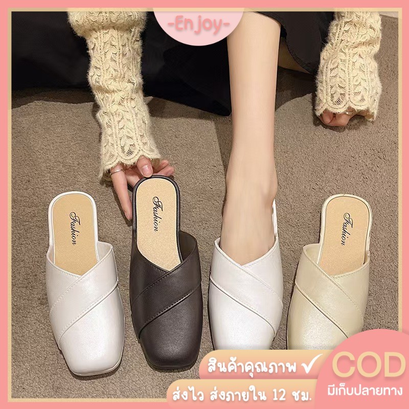 ?EnJoy? พร้อมส่ง (TO-5104) รองเท้าคัทชูเปิดส้น แฟชั่นเกาหลี หัวเหลี่ยม ทรงสวย พื้นนิ่ม ใส่สบาย